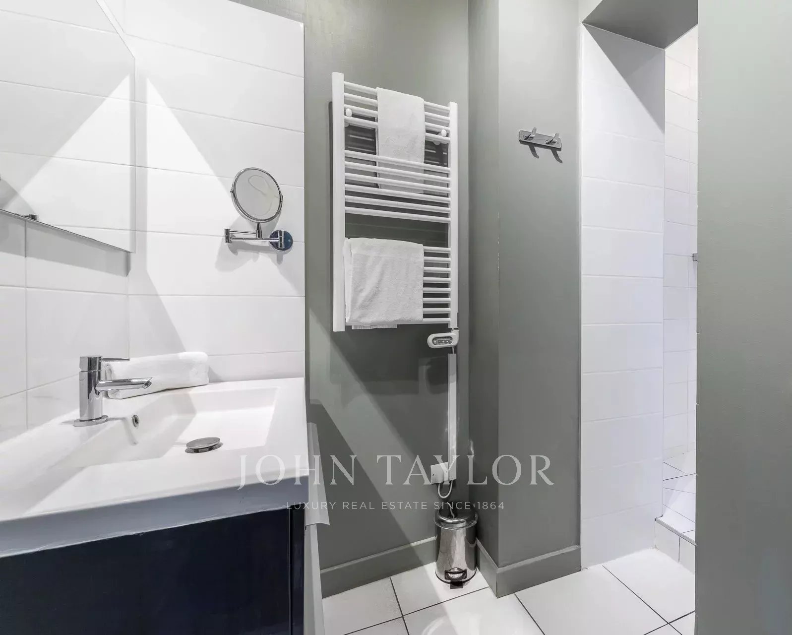 The top two floors, spread over 100 m², are currently for private use, with living room, kitchen, three bedrooms, bathroom, dressing room and small terrace offering unobstructed views over the rooftops. Ideal for owners or staff.