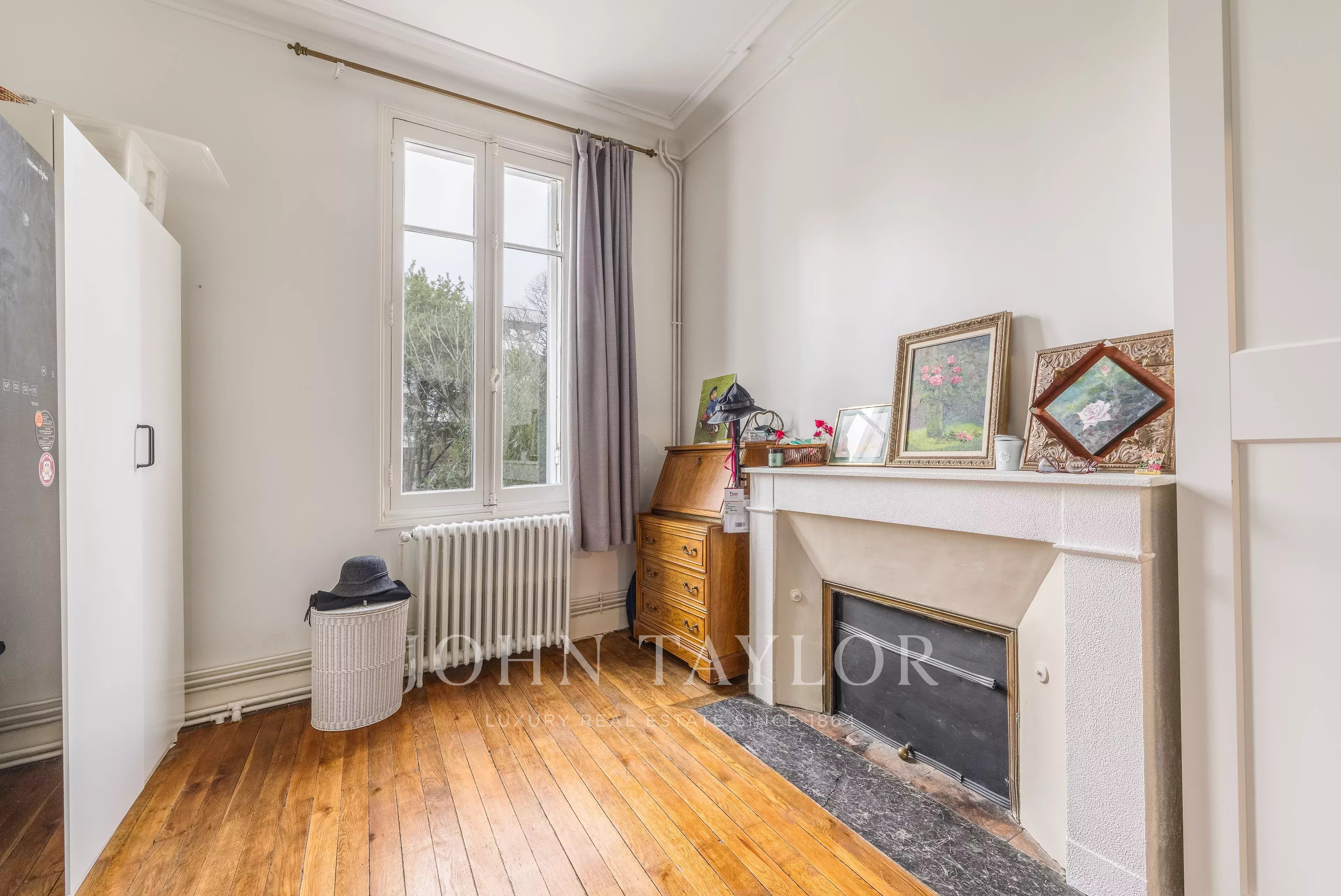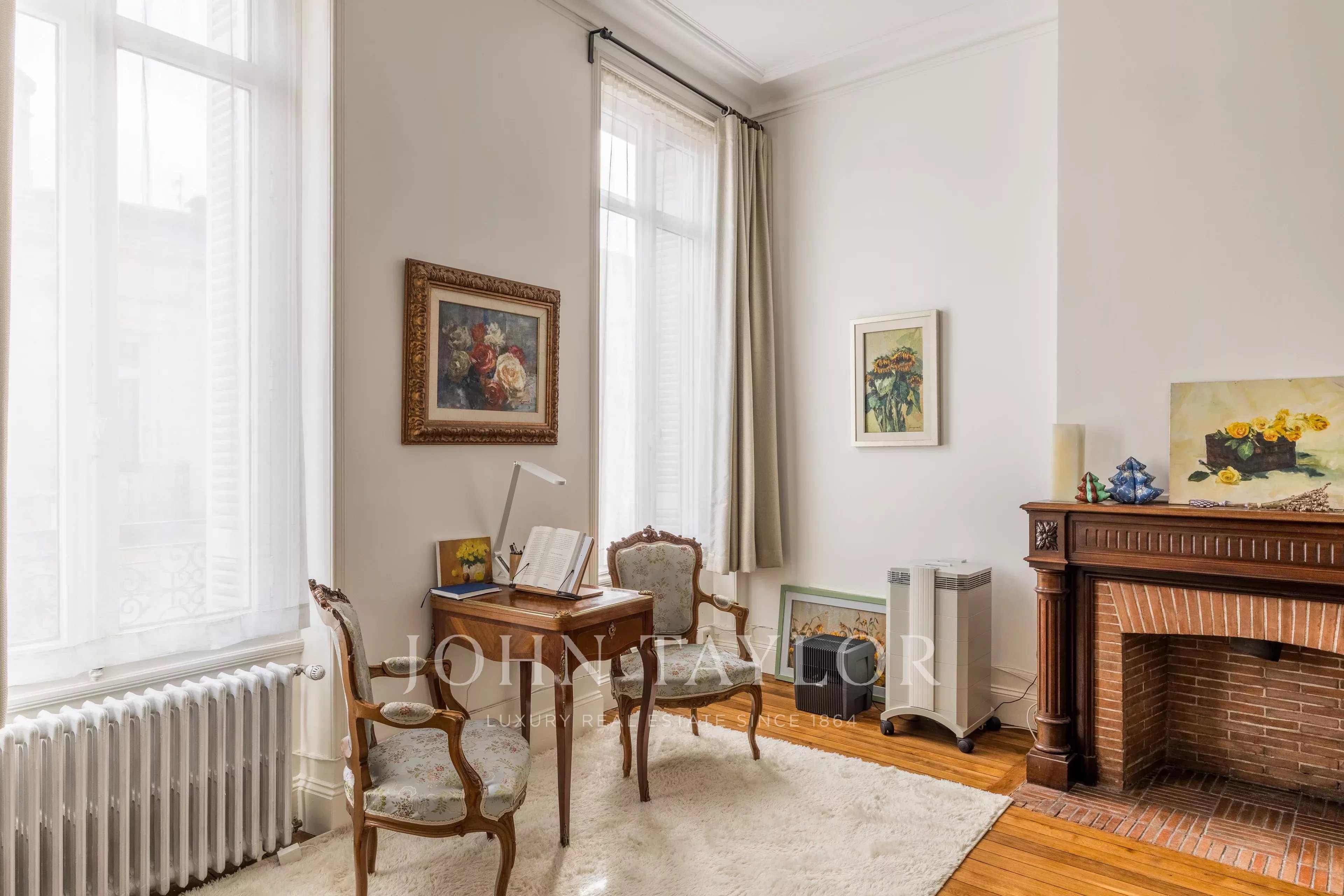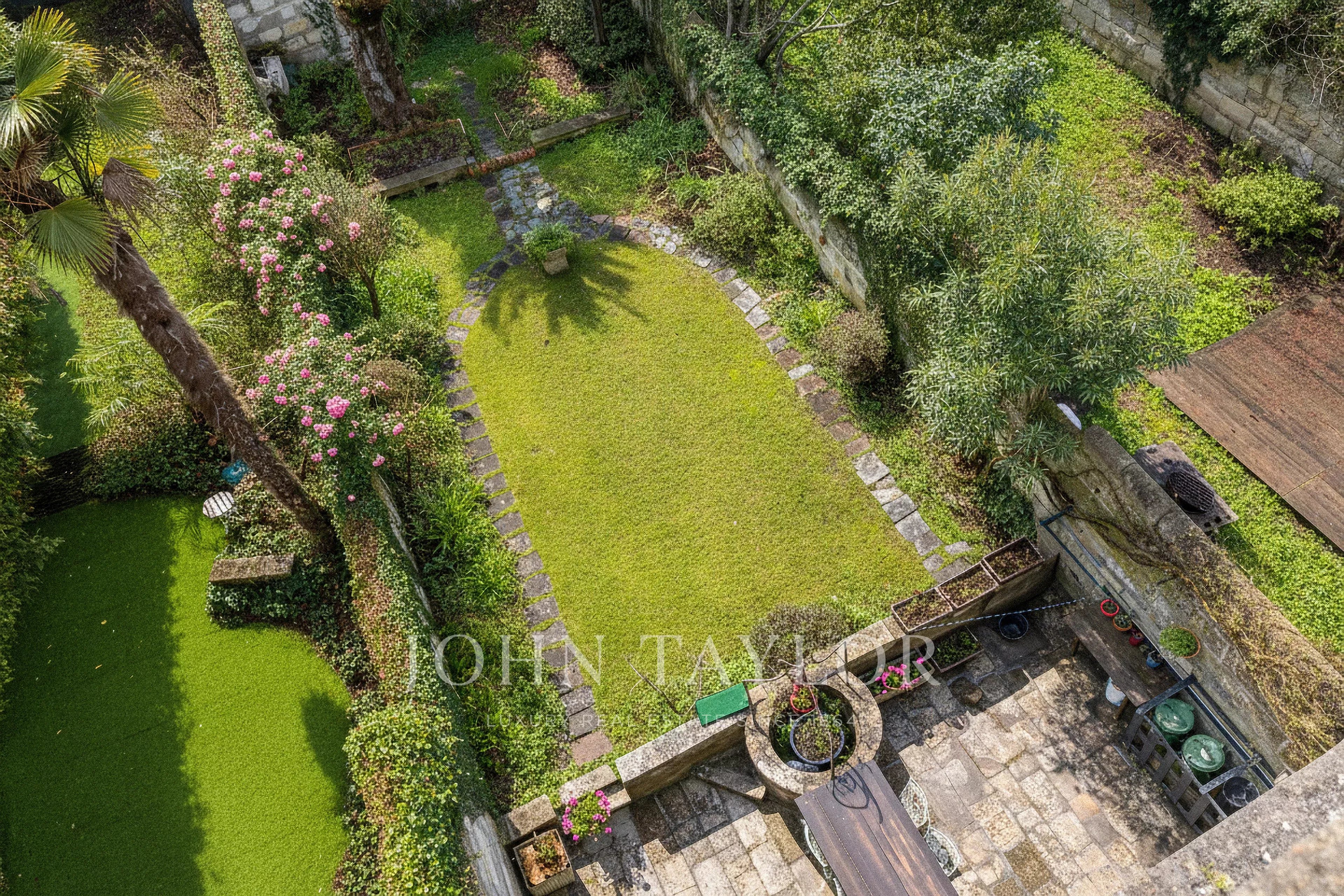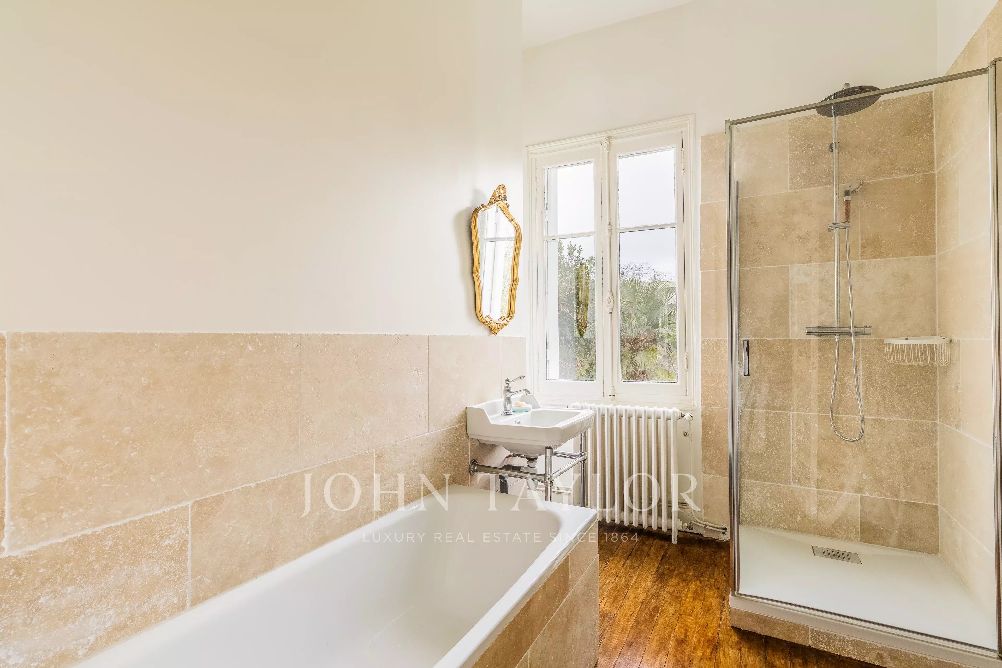 A wide, sumptuous period staircase, illuminated by a beautiful skylight under a glass roof, leads to the two upper floors: luminous master suite with private bathroom, four bedrooms, two additional bathrooms and an independent apartment with open kitchen, ideal for a student or teenager. A spacious laundry room and an attractive 30 m² cellar complete the ensemble.