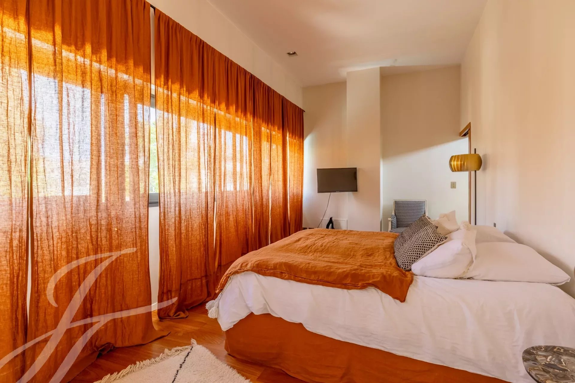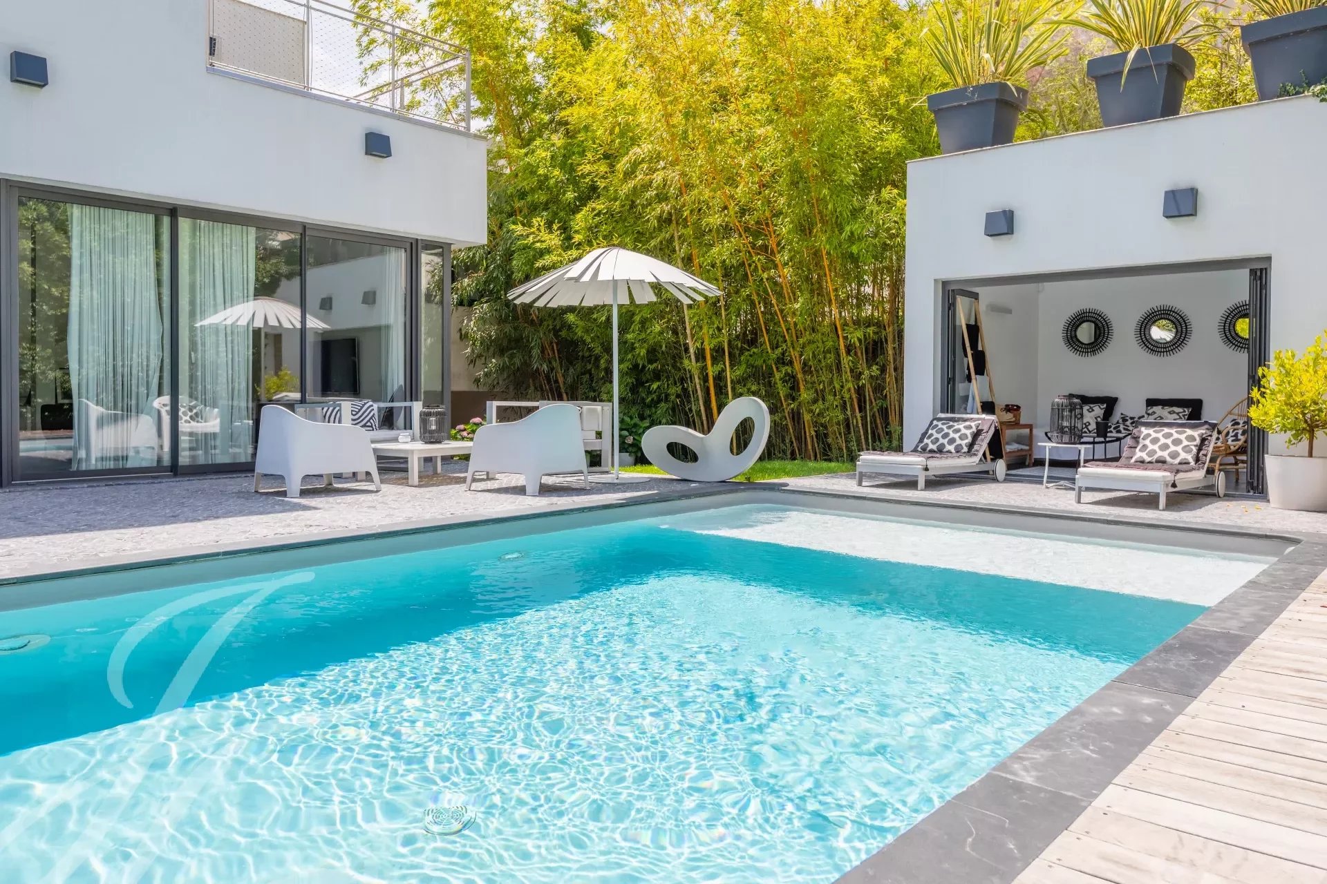 Nestled on a 700 m2 plot, it features a large garden with lush vegetation, where the boules court will bring friends or family together, as well as a terrace with swimming pool.