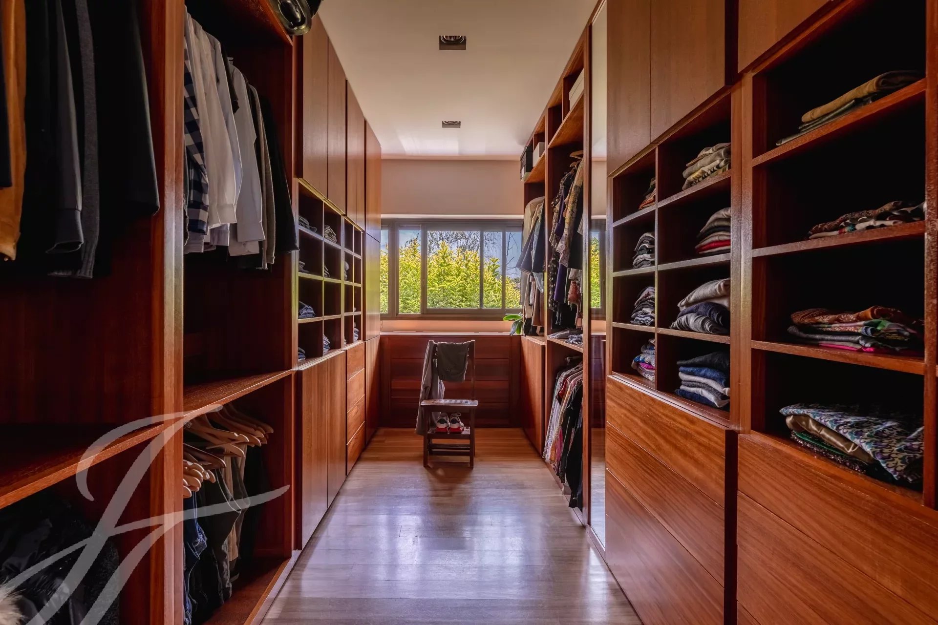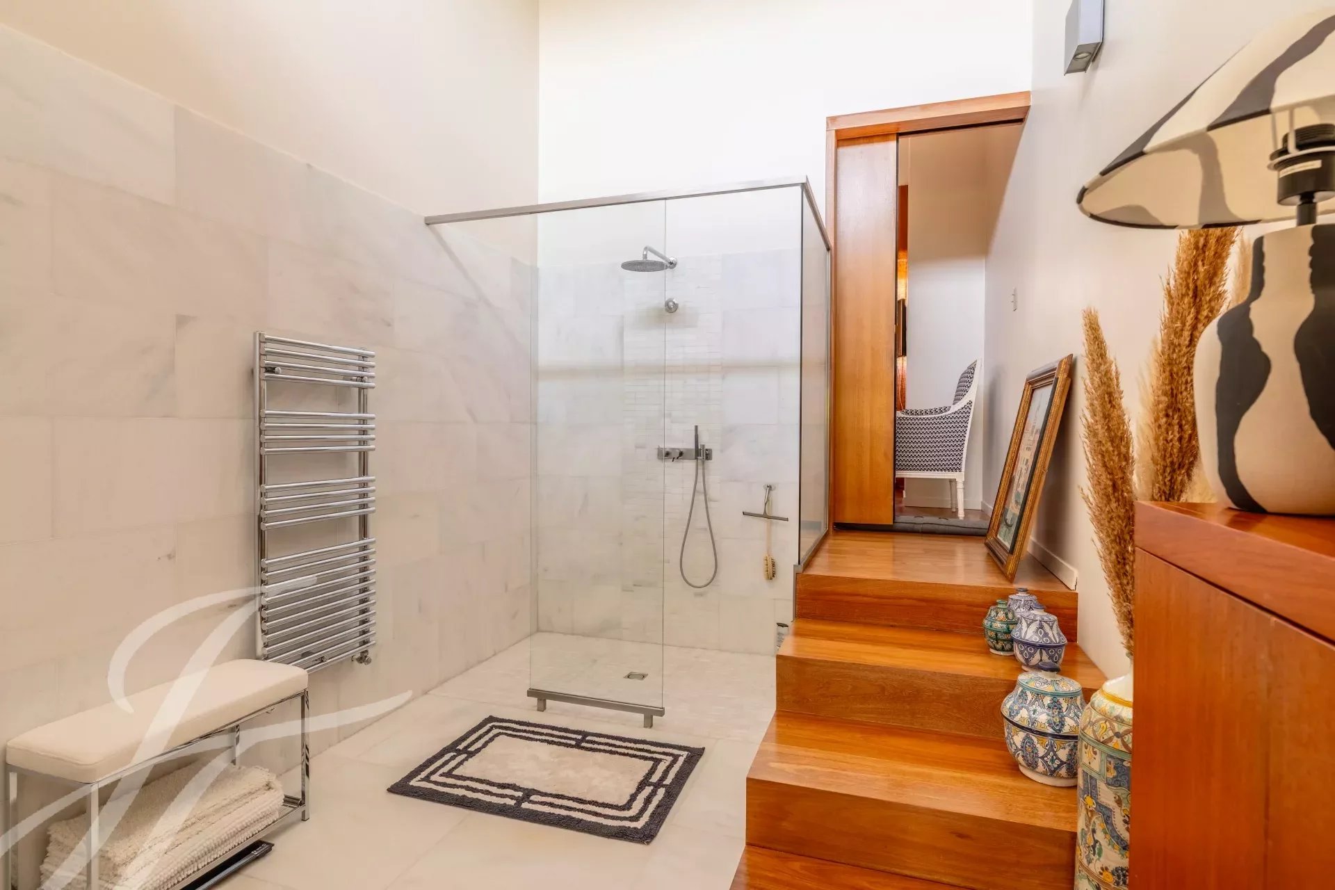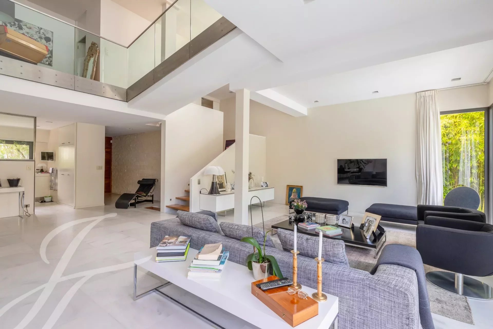 The interior, the result of a subtle marriage of elegance and sobriety, blends noble materials such as marble and wood, and seduces us with its striking volumes, such as the vast 90 m2 living room. A large fitted kitchen completes the first level. The cathedral living room offers an incredible view of the upper floor, where the sleeping quarters feature 4 bedrooms and a generous master suite. The latter boasts a beautiful dressing area, where quality joinery has been custom-designed. An office, a bathroom, 2 shower rooms and a play or reading area add to everyday comfort. Last but not least, the parcel of land provides comfortable, sheltered parking for vehicles. A rare property, as much for its features as for its address.
