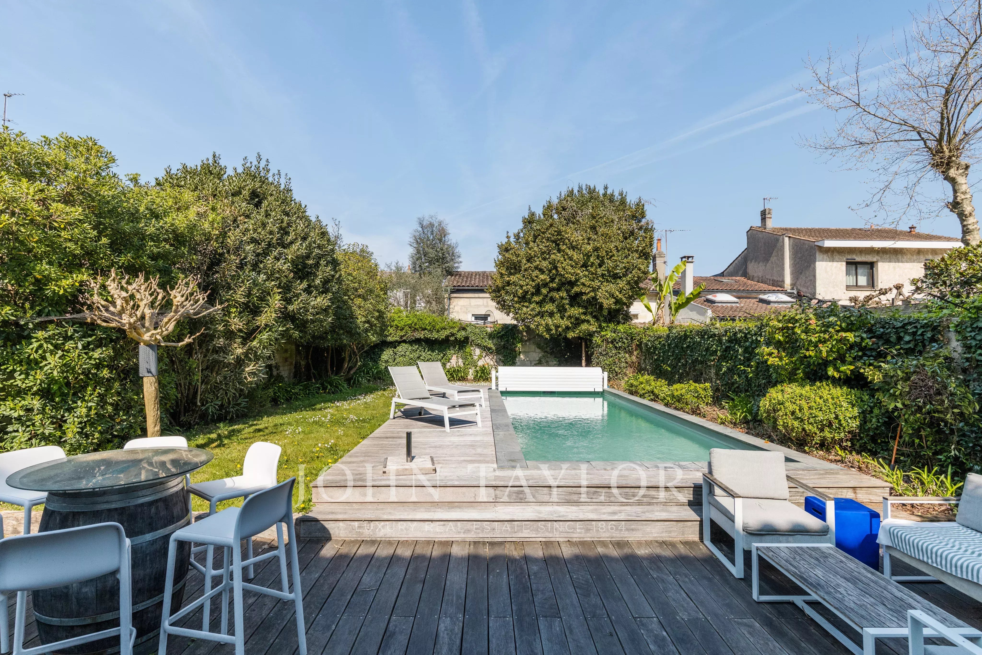 Step outside to your own relaxing oasis with a landscaped garden, an inviting wooden deck, and a sparkling swimming pool – ideal for enjoying Bordeaux's sunny days. The property also offers practical amenities including secure private parking and easy access to local shops, schools, and the vibrant life of Bordeaux. This home is the perfect blend of luxury, privacy, and convenience.