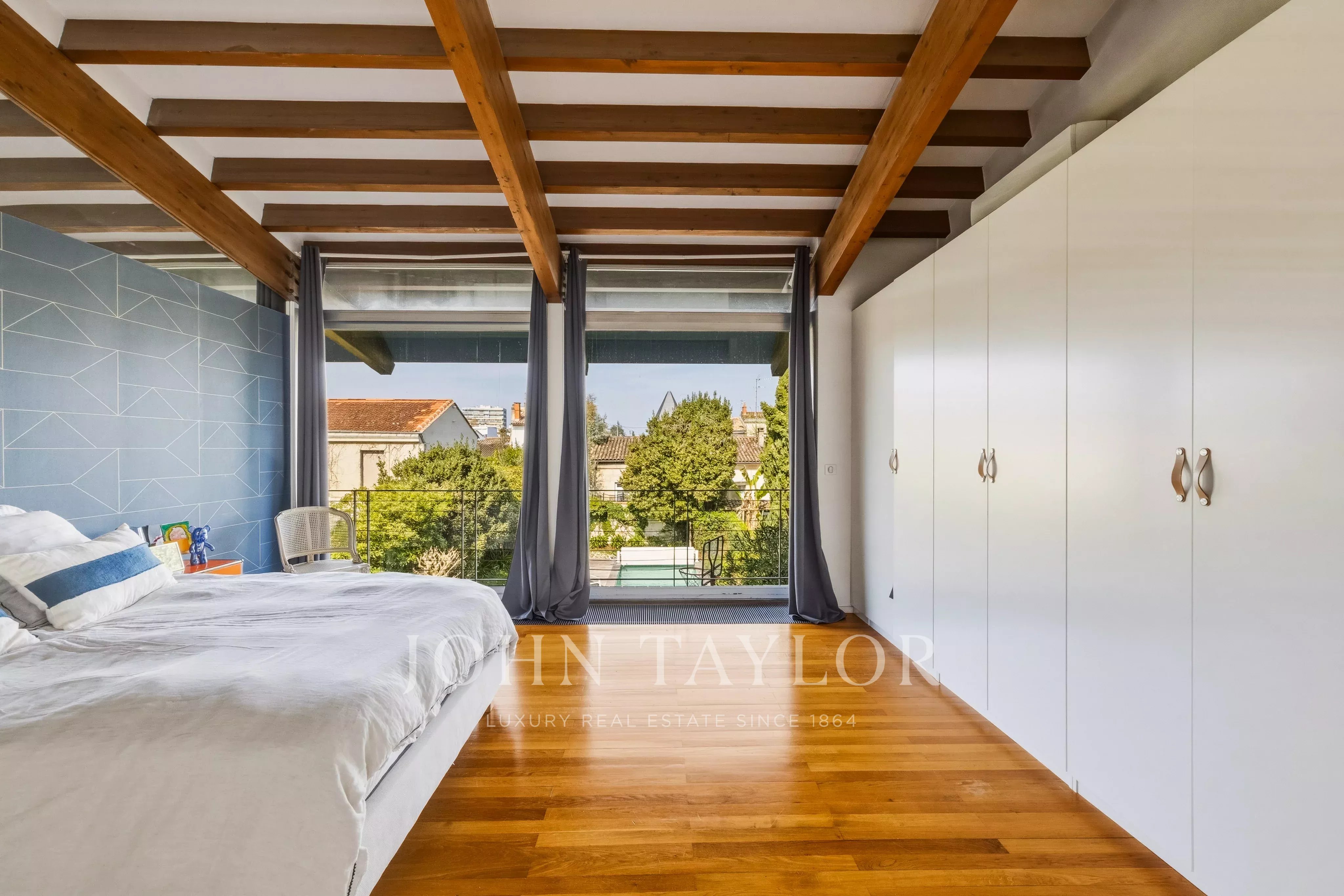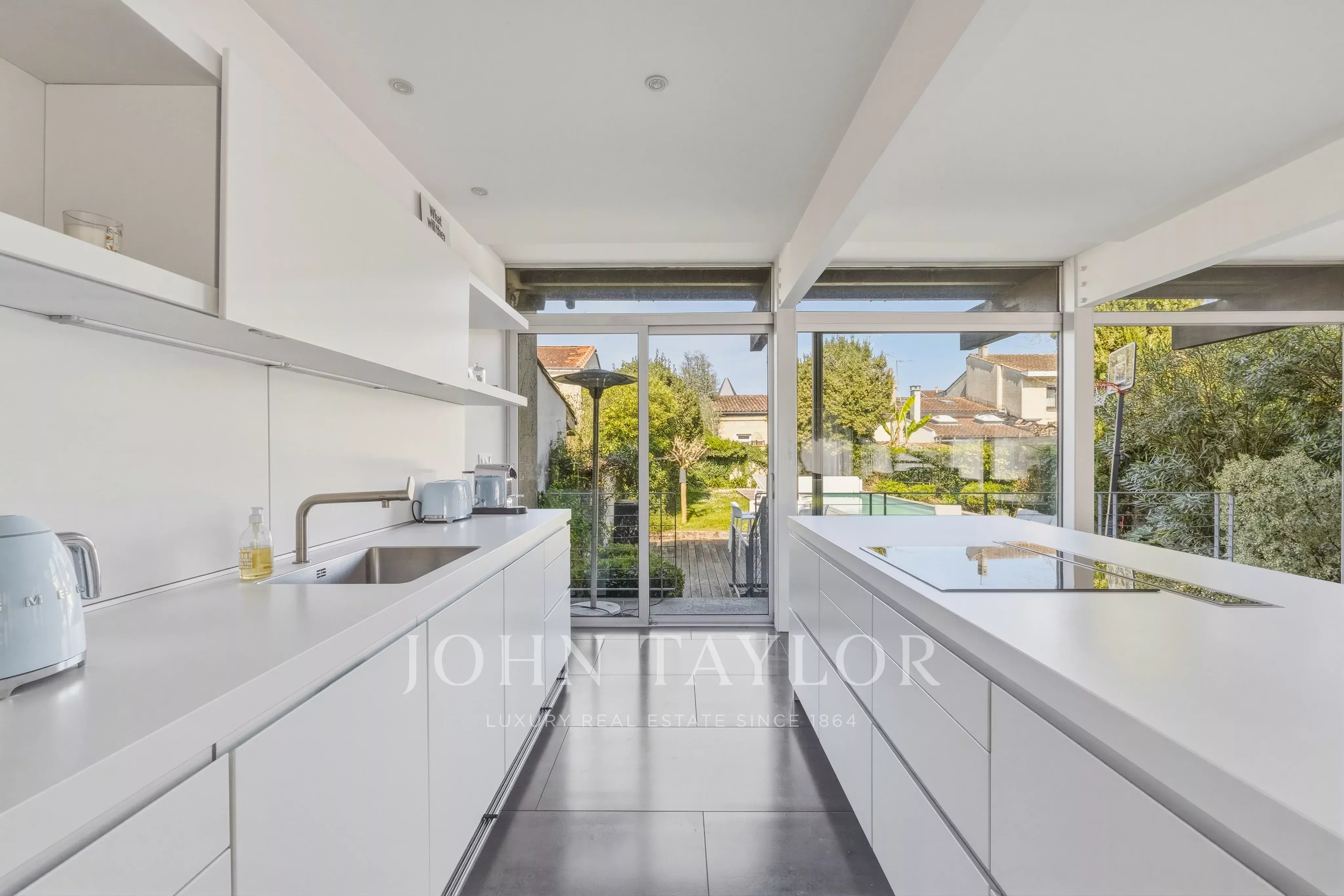 Discover this stunning 255 m² contemporary house located in the heart of Caudéran, Bordeaux. Boasting a spacious layout with 8 beautifully designed rooms, including 4 generous bedrooms, this property provides ample space for family living and entertaining guests. The bright interiors feature large sliding windows, allowing natural light to fill the living spaces and offering picturesque views of the private garden and swimming pool.