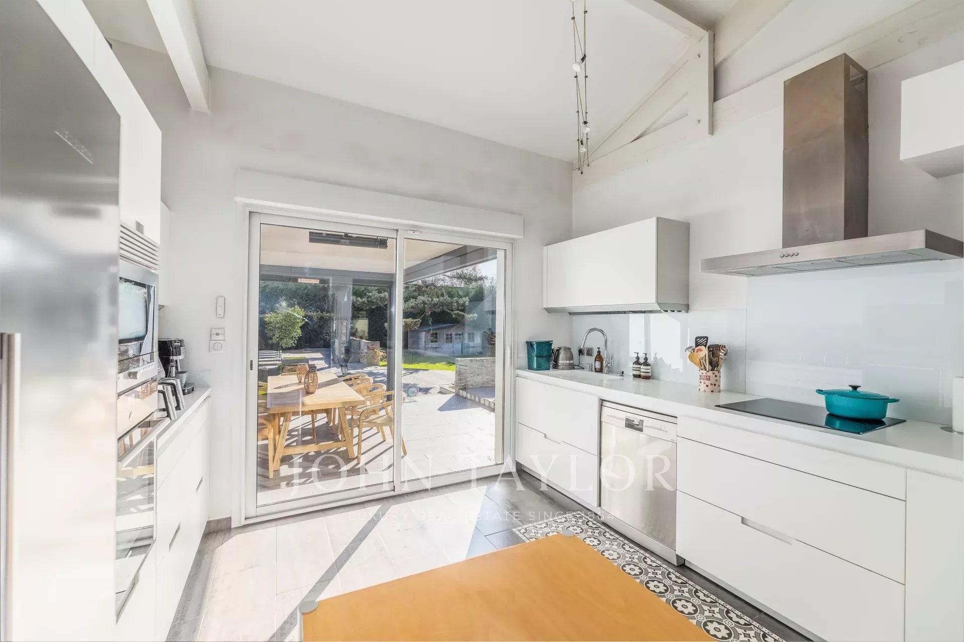 Additional amenities such as an alarm system, videophone, and an electric car terminal cater to modern lifestyle needs. Families will appreciate the dedicated playground, while evenings can be spent around the cozy fireplace. This remarkable home offers a perfect blend of style, comfort, and functionality, ideal for creating lasting memories.