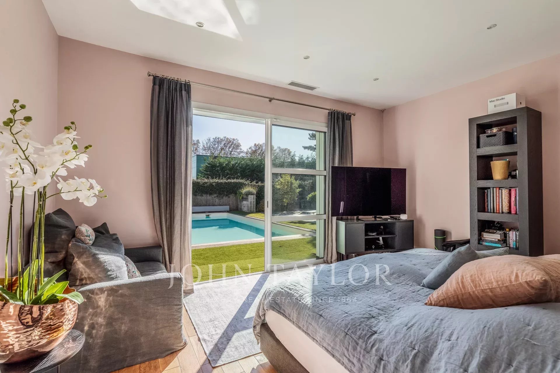 Step outside to enjoy the beautifully landscaped garden, featuring a pristine swimming pool perfect for warm summer days. The outdoor lighting, intercom, and electric gate provide both convenience and security. For those who love entertaining, the sliding windows open up to the stunning outdoor areas, creating seamless indoor-outdoor living spaces.