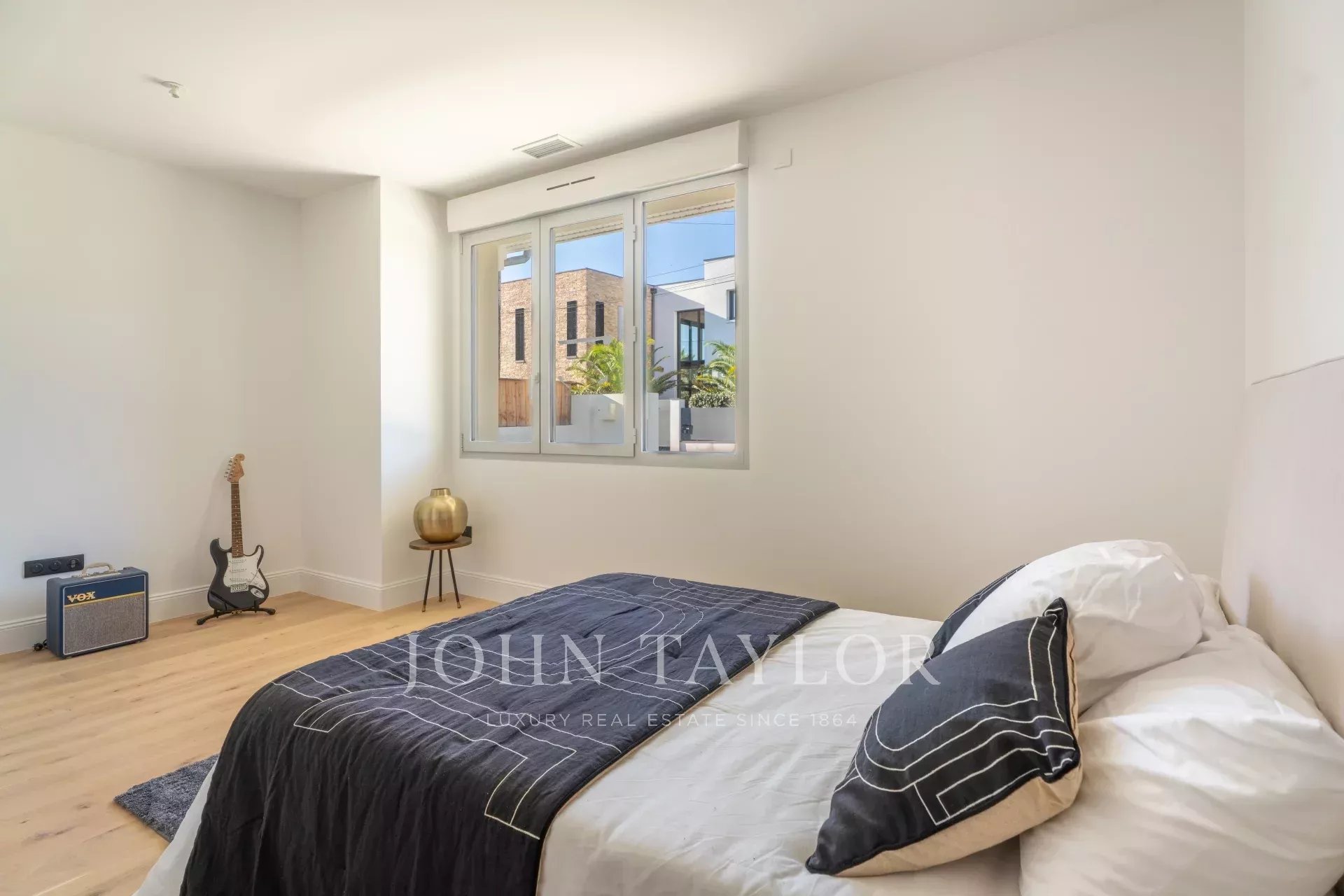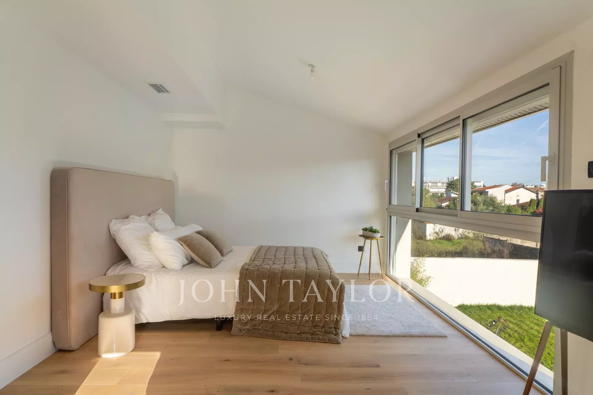Inside, the home boasts sleek sliding windows that allow natural light to flood the rooms, creating a bright and airy atmosphere. The property is offered fully furnished, providing an effortless move-in experience. Whether you’re enjoying time with family or hosting guests, this exquisite home in Le Bouscat caters to all your needs with style and sophistication.