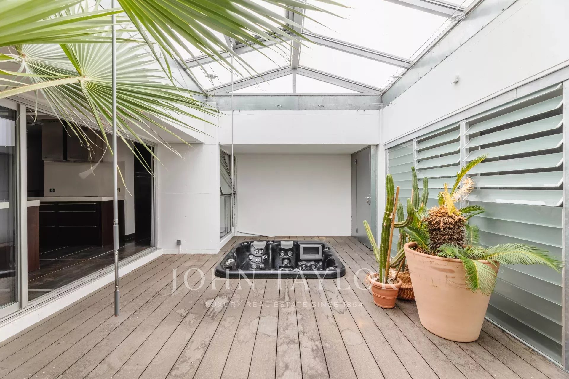 The large picture windows framing every room on the ground floor seamlessly merge the indoors with the outdoors, while a private patio with Jacuzzi adds a touch of luxury and privacy to your daily routine. A dedicated gym provides a space to cultivate well-being and vitality.