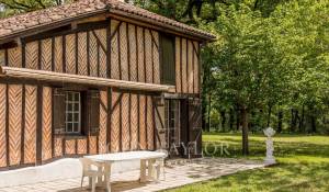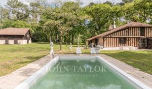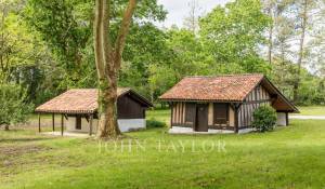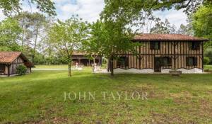 Set in over 3.5 hectares of wooded grounds with a stream running through it, it comprises a former airial farmhouse typical of the Landes region, with a main house of over 200 m², two vast barns of 140 m² and 180 m², a listed bread oven of 22 m² and a 16 m² outbuilding.