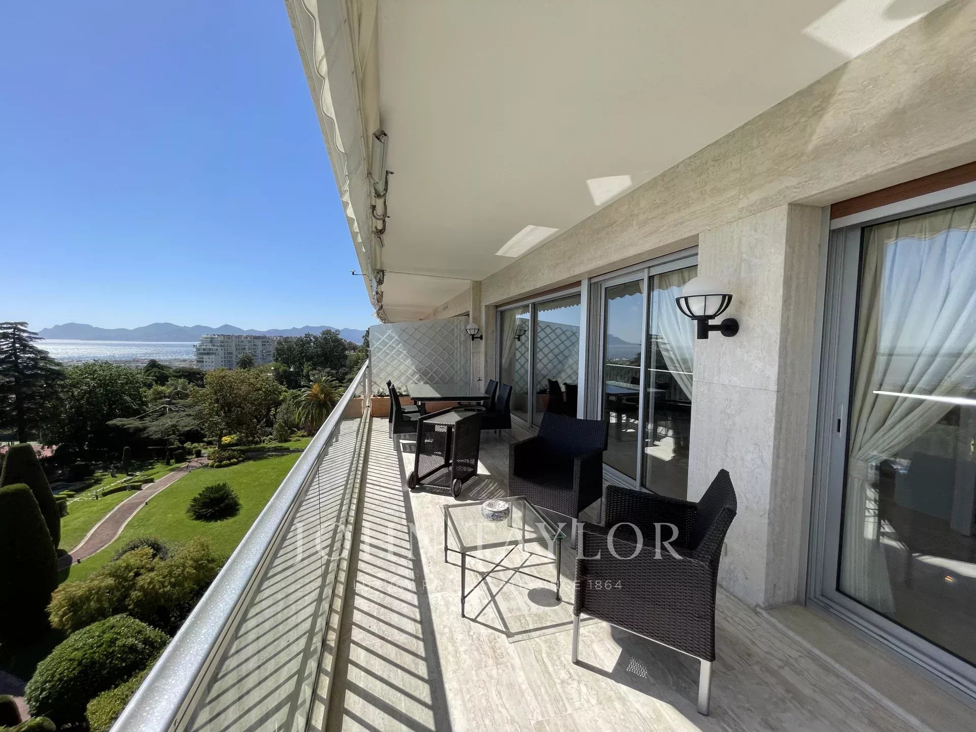 In the Californie area, in a high standing residence with swimming pool, tennis court and listed park, attractive air-conditioned apartment of approx. 151 sq.m, south-facing and enjoying panoramic sea views from its 25 sq.m terrace.