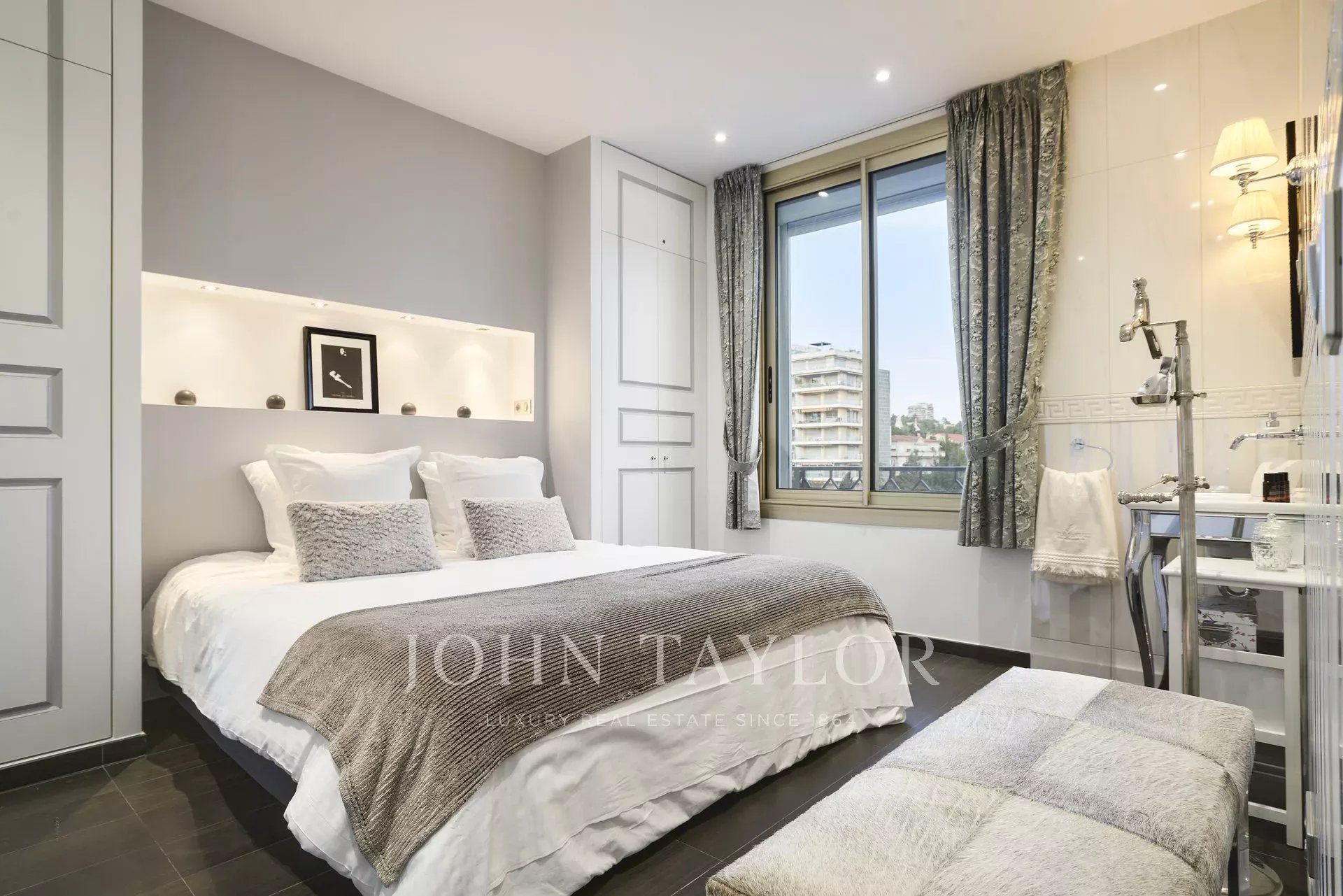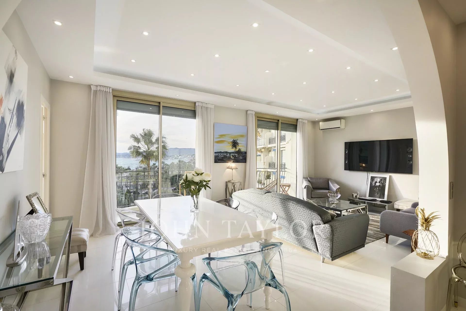 On the 4th floor of a high standard residence facing the Port Canto, an air-conditioned apartment completely renovated, with a living area of 113 sq.m and enjoying a sea view and view over the park.