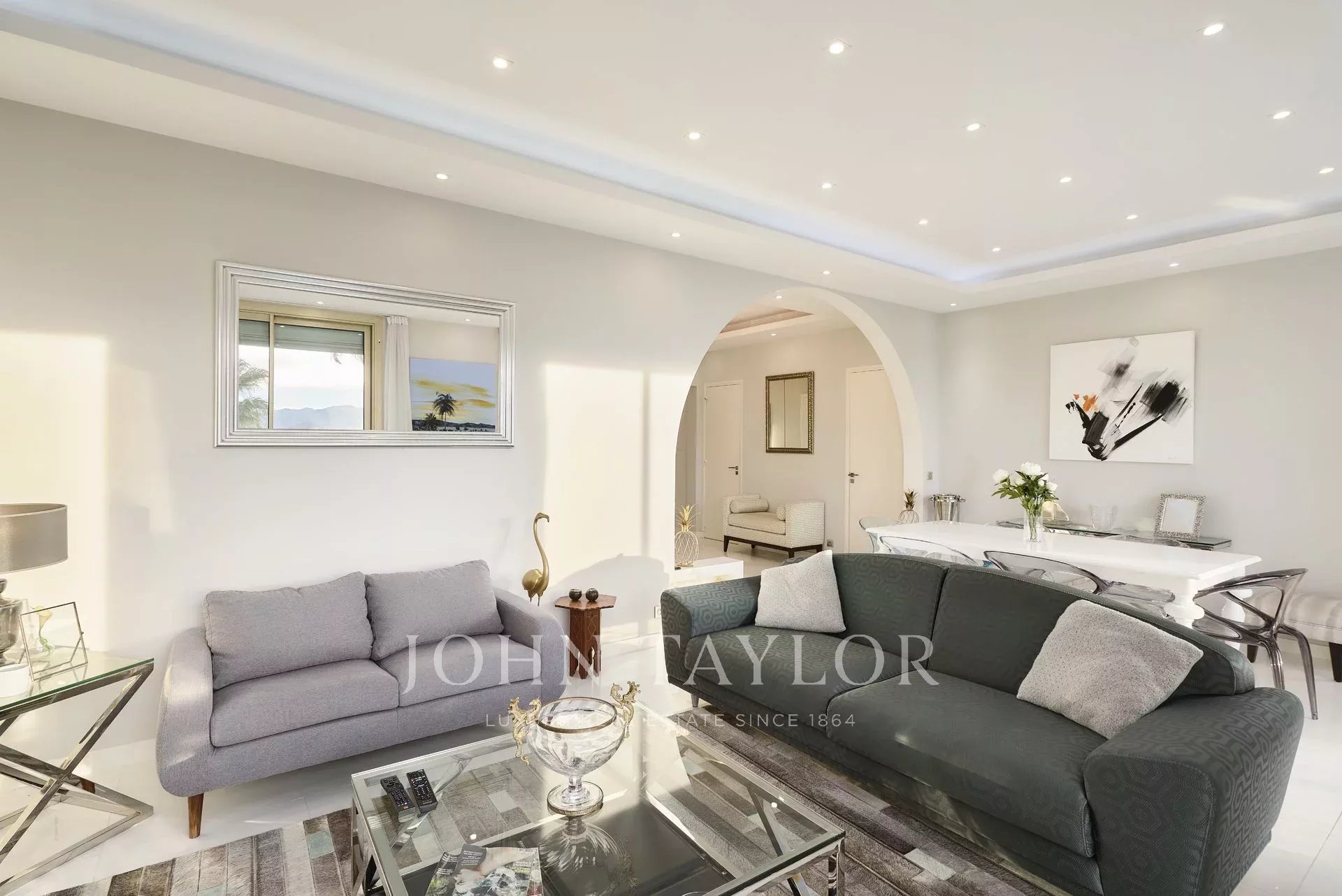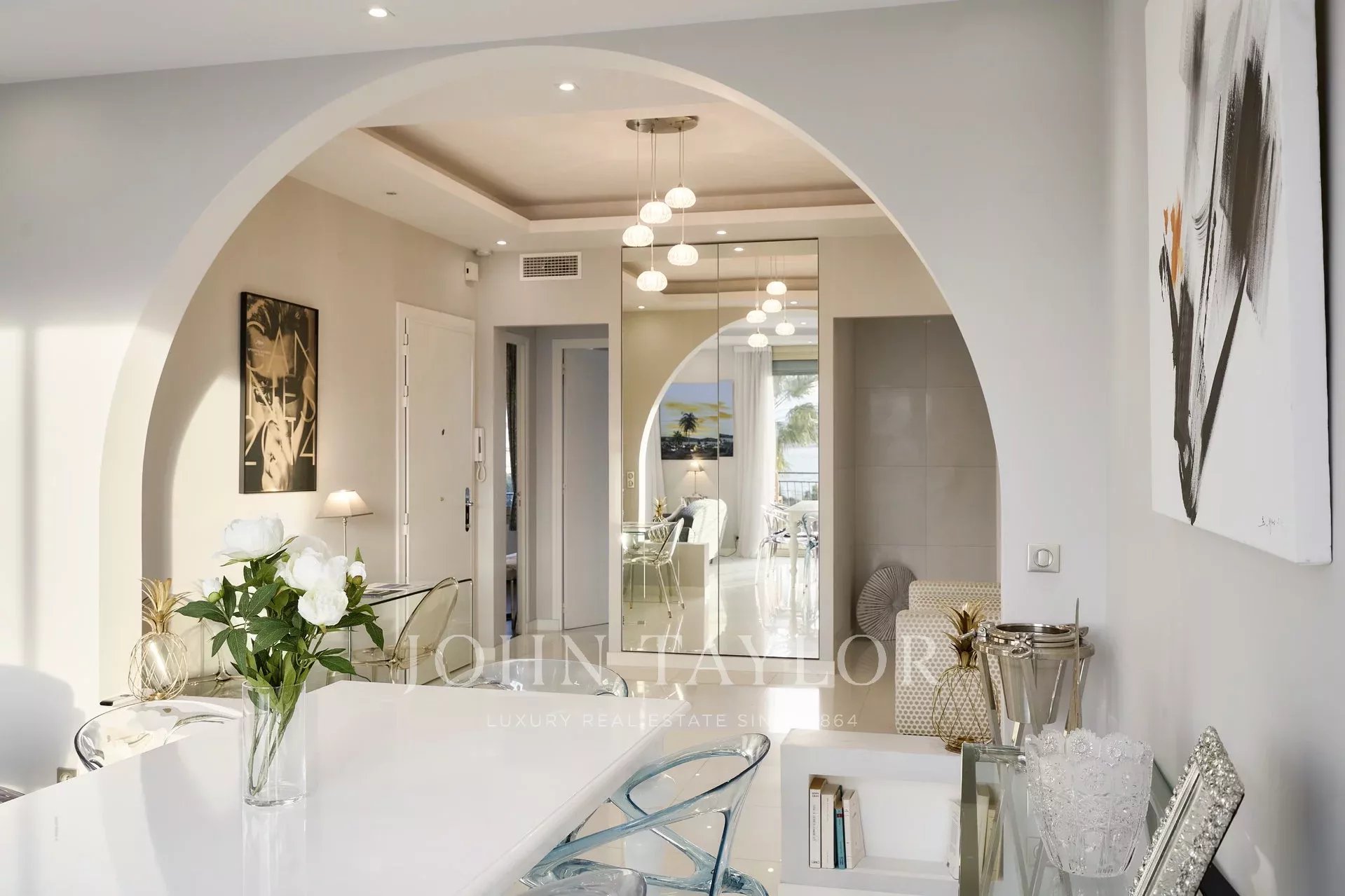 Large entrance hall giving onto the reception room opening onto the terrace and comprising lounge, dining room