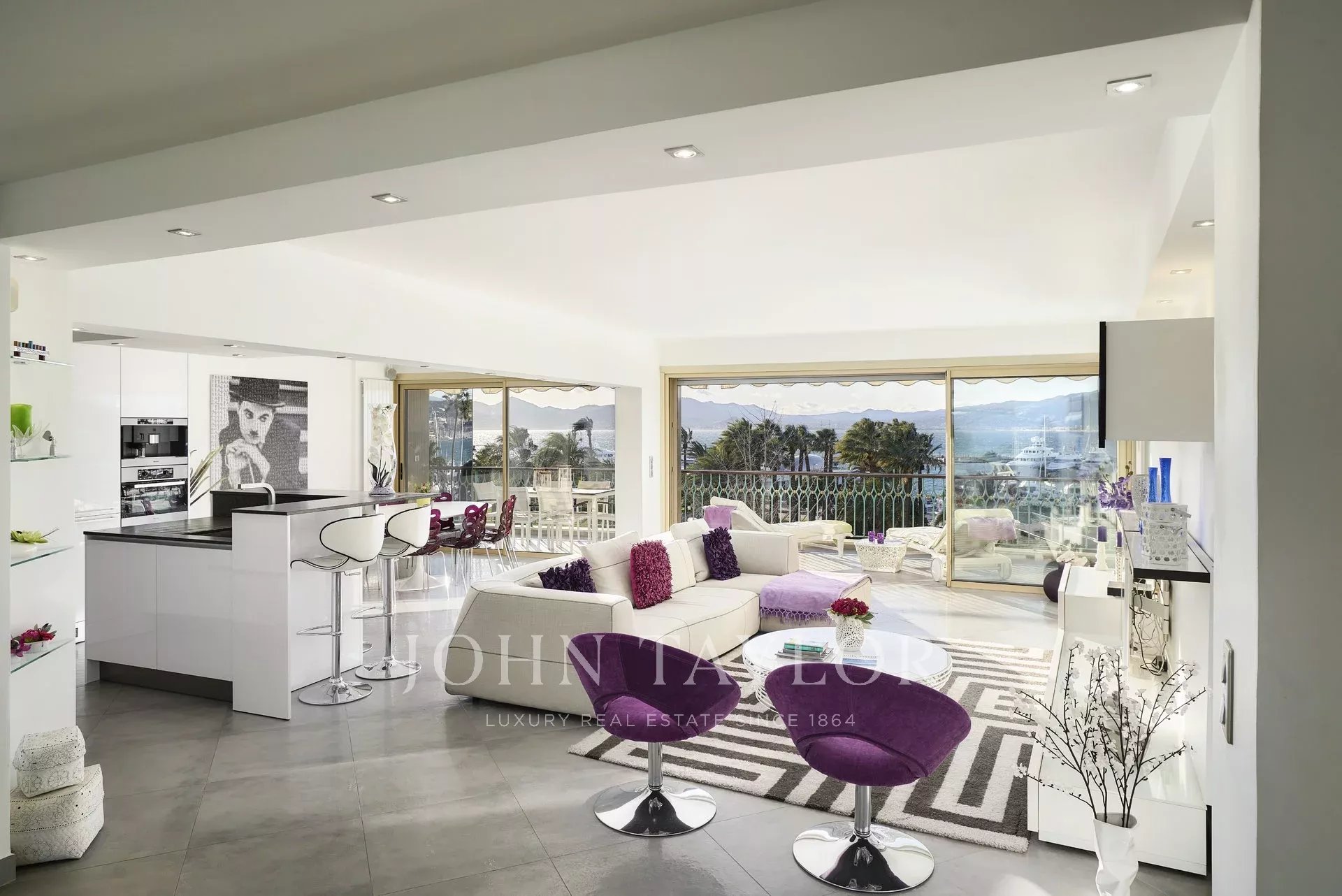 Large reception opening onto the terrace and comprising living room, dining area and kitchen