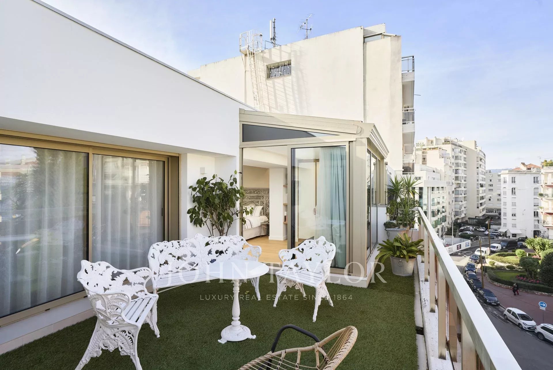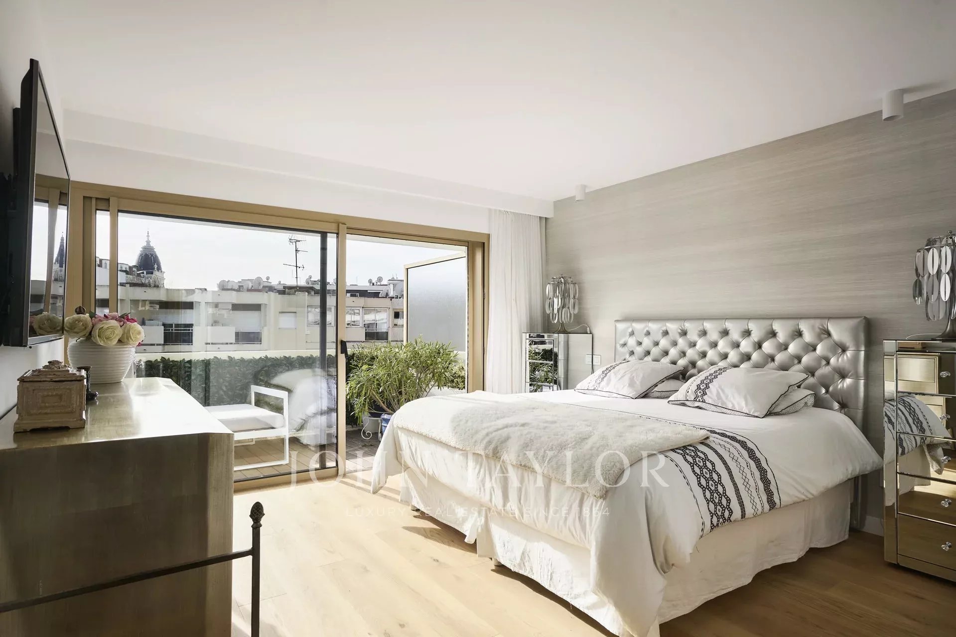 Facing south, contemporary, fully air-conditioned 165 sq.m apartment on the top floor ( 5th) of a city centre residence, a few minutes walking distance from the beaches and the Palais des Festivals.