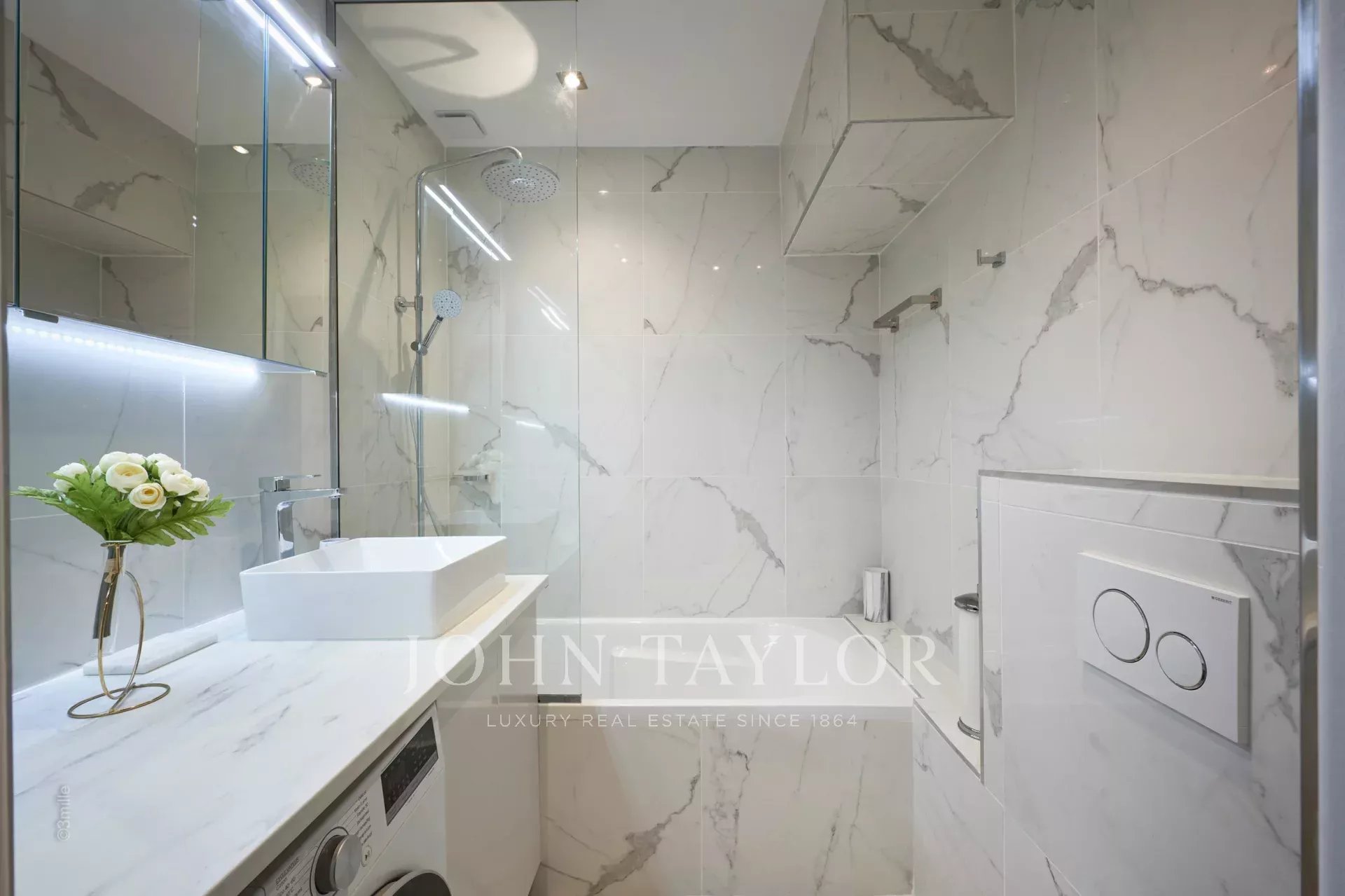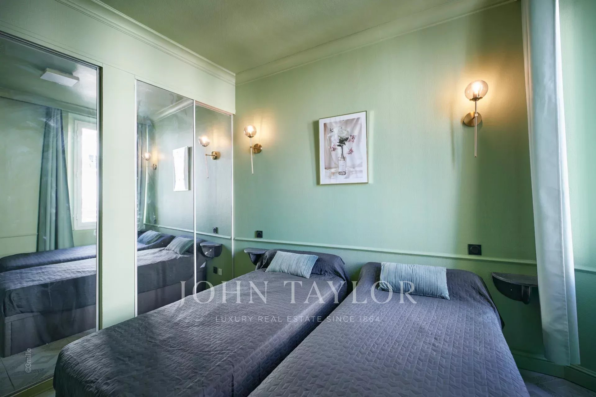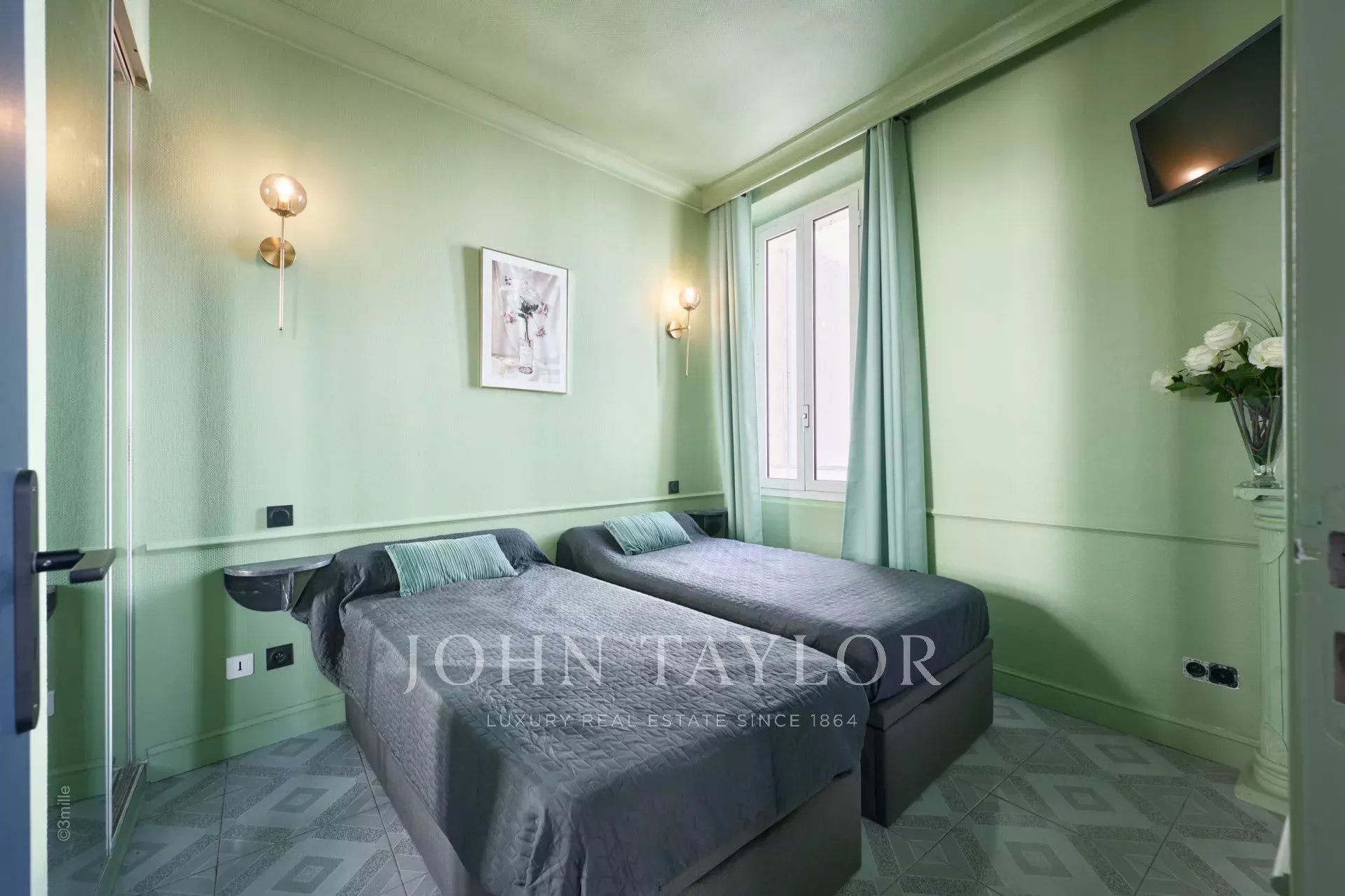 The apartment opens onto an attractive reception room with open plan kitchen and a bedroom (two single beds) ; Bathroom ; independent toilets
