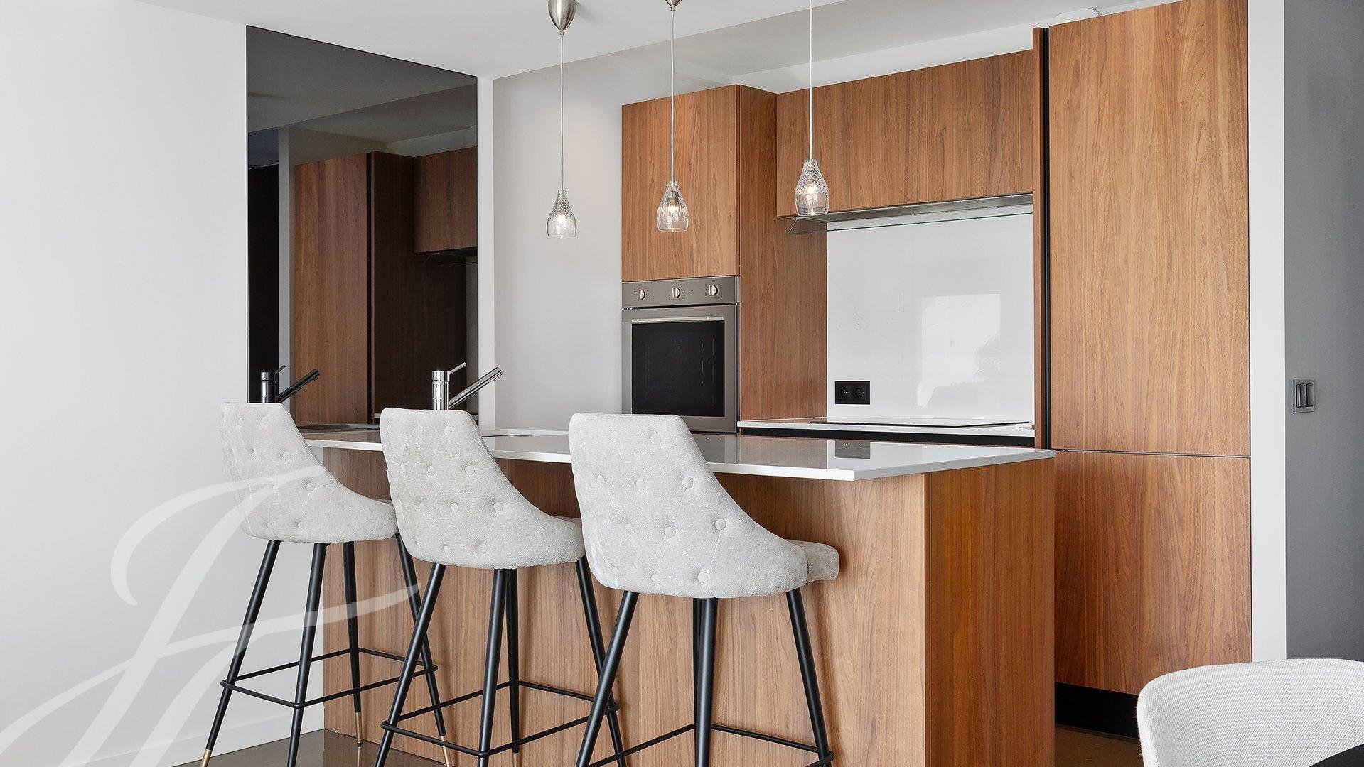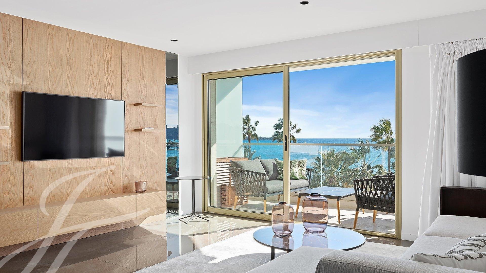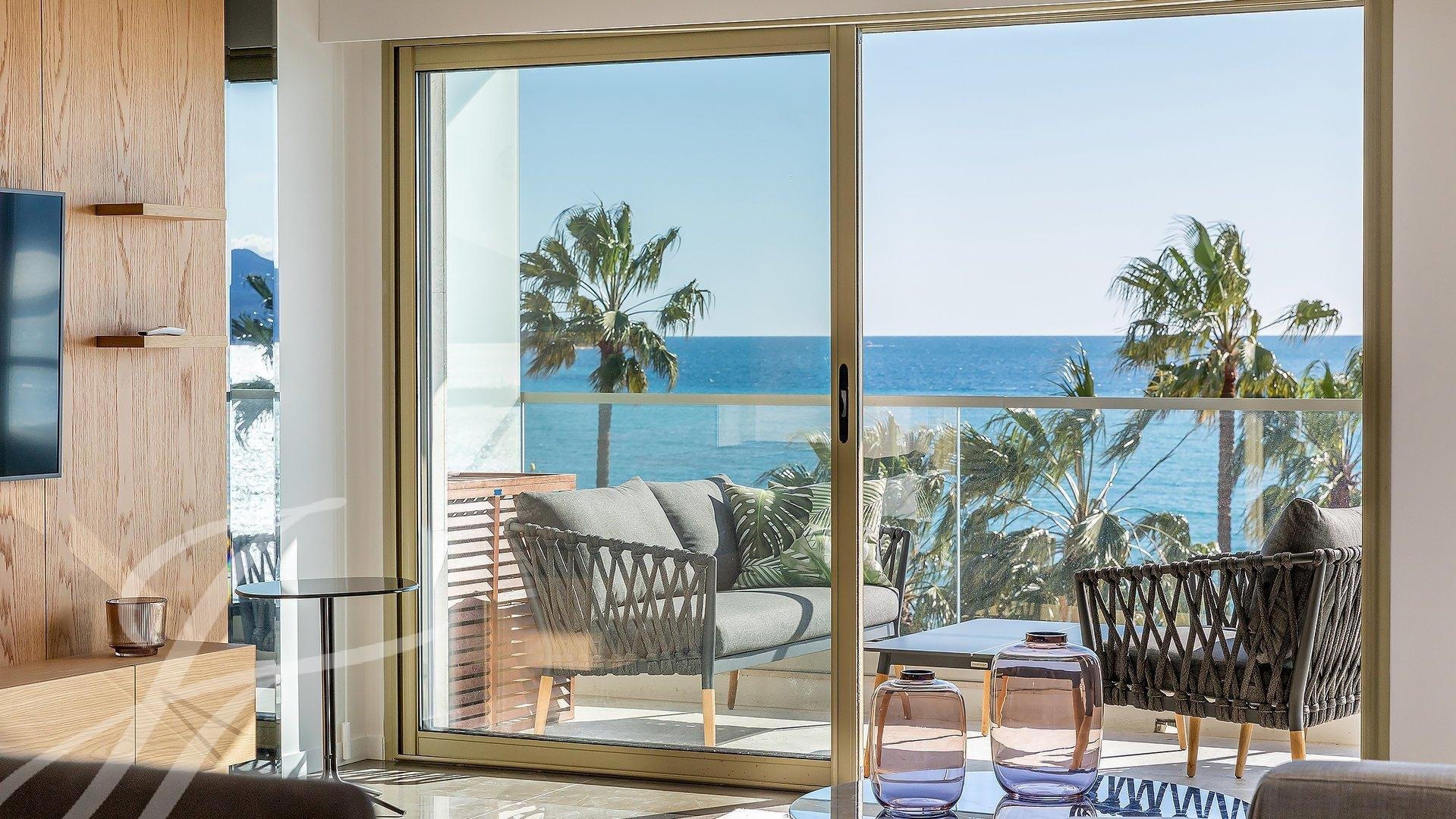 Attractive air-conditioned apartment located in the heart of the Croisette on the 5th floor of a luxury residence, enjoying a magnificent panoramic view of the Bay of Cannes, its beaches, the Palace of Festivals and the Esterel.