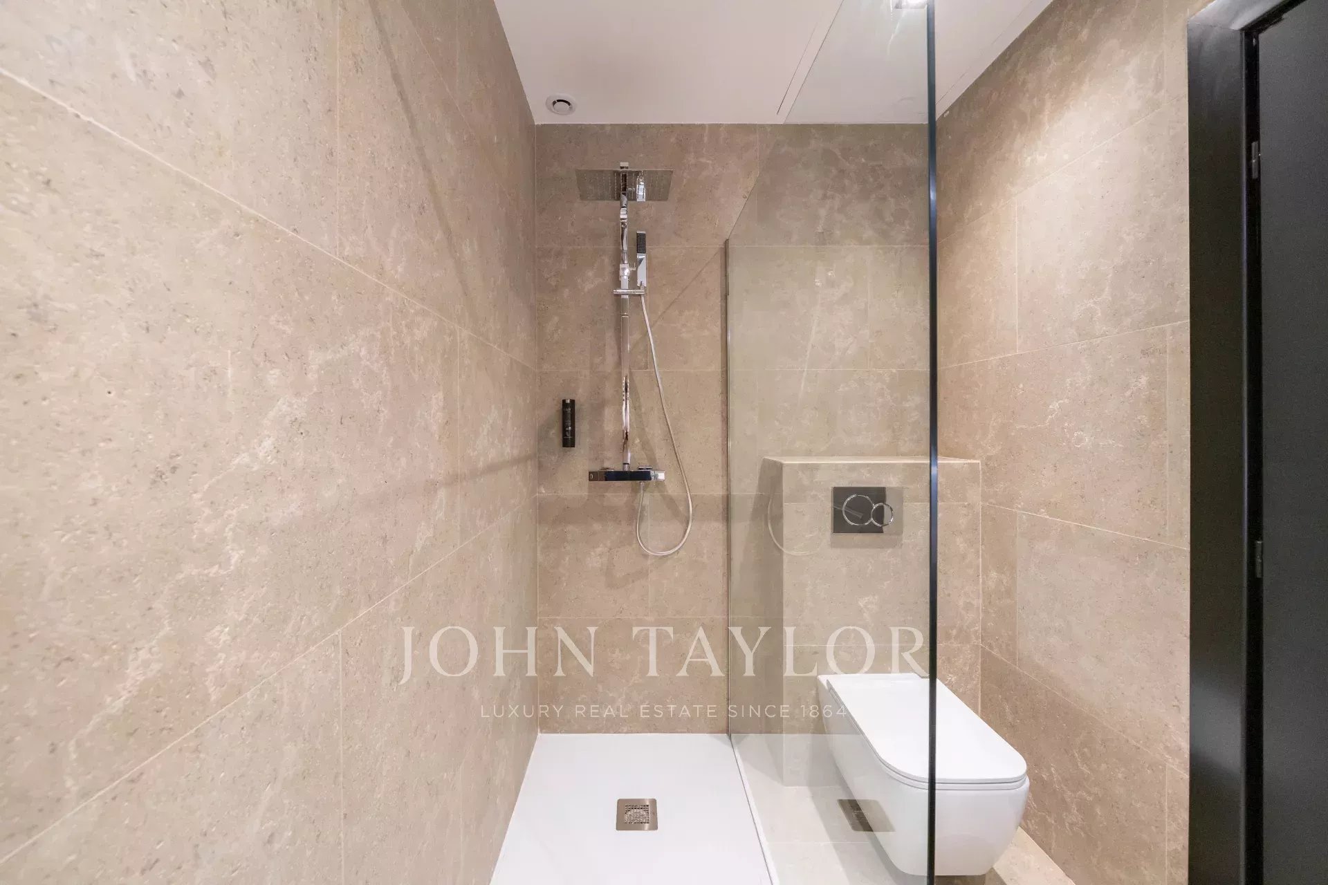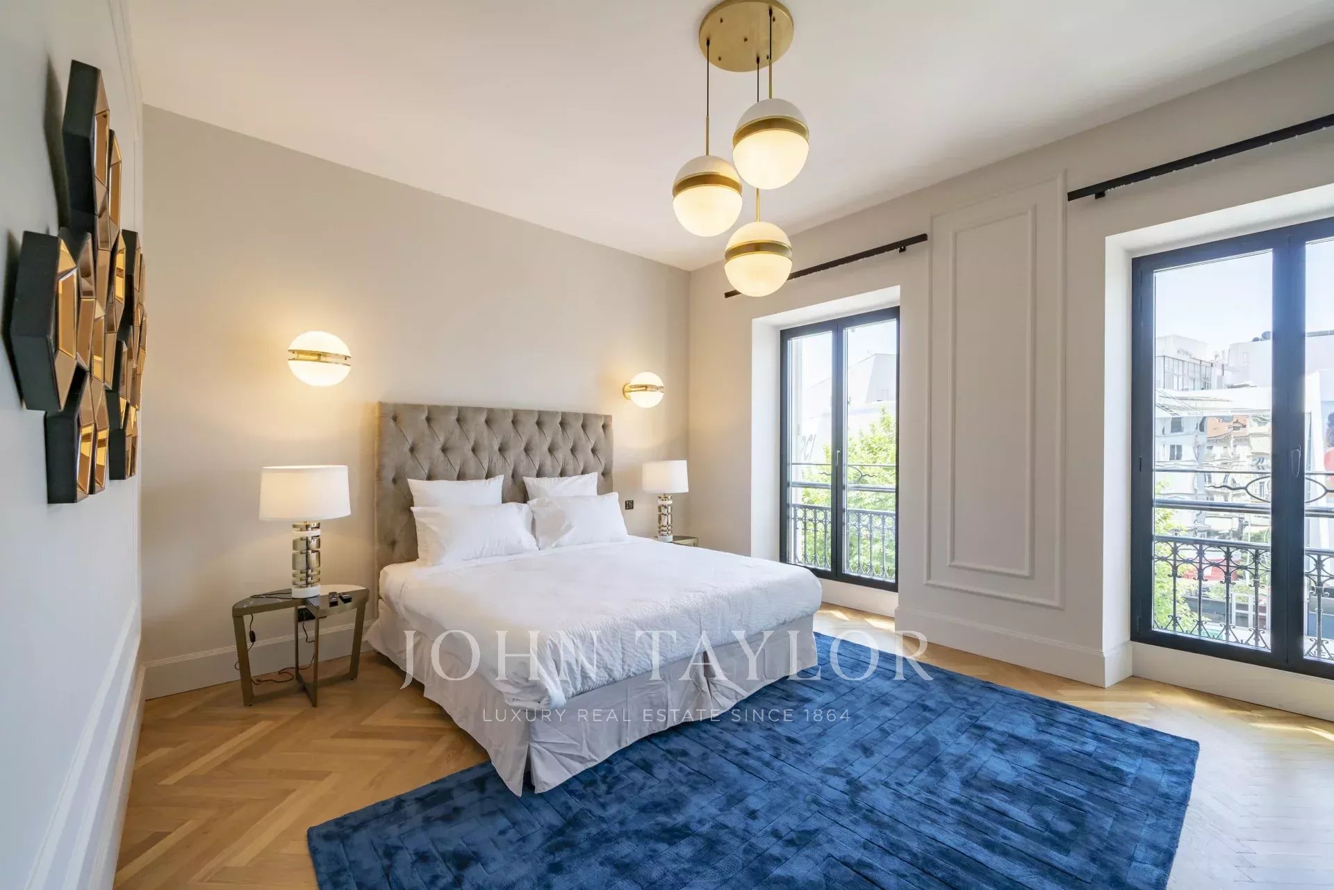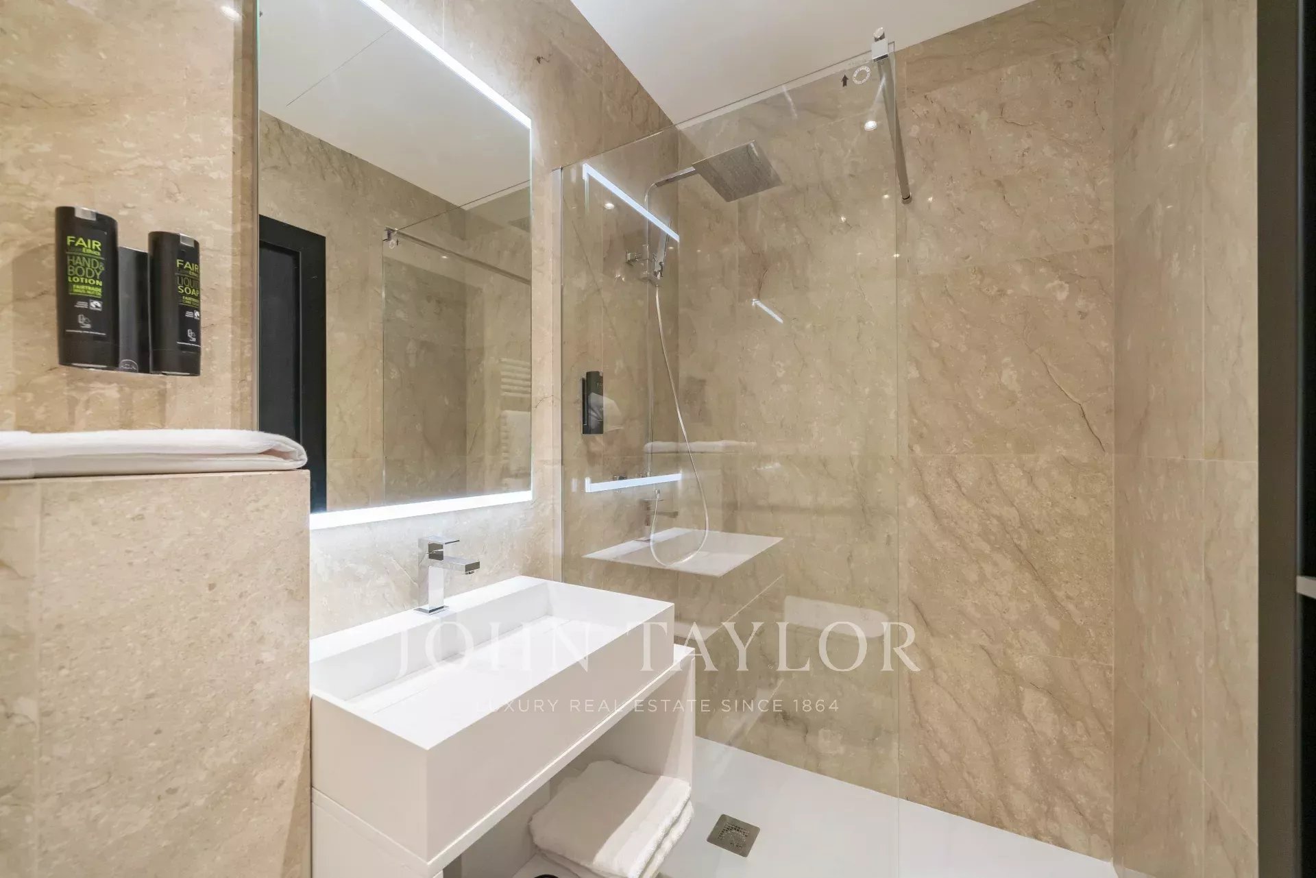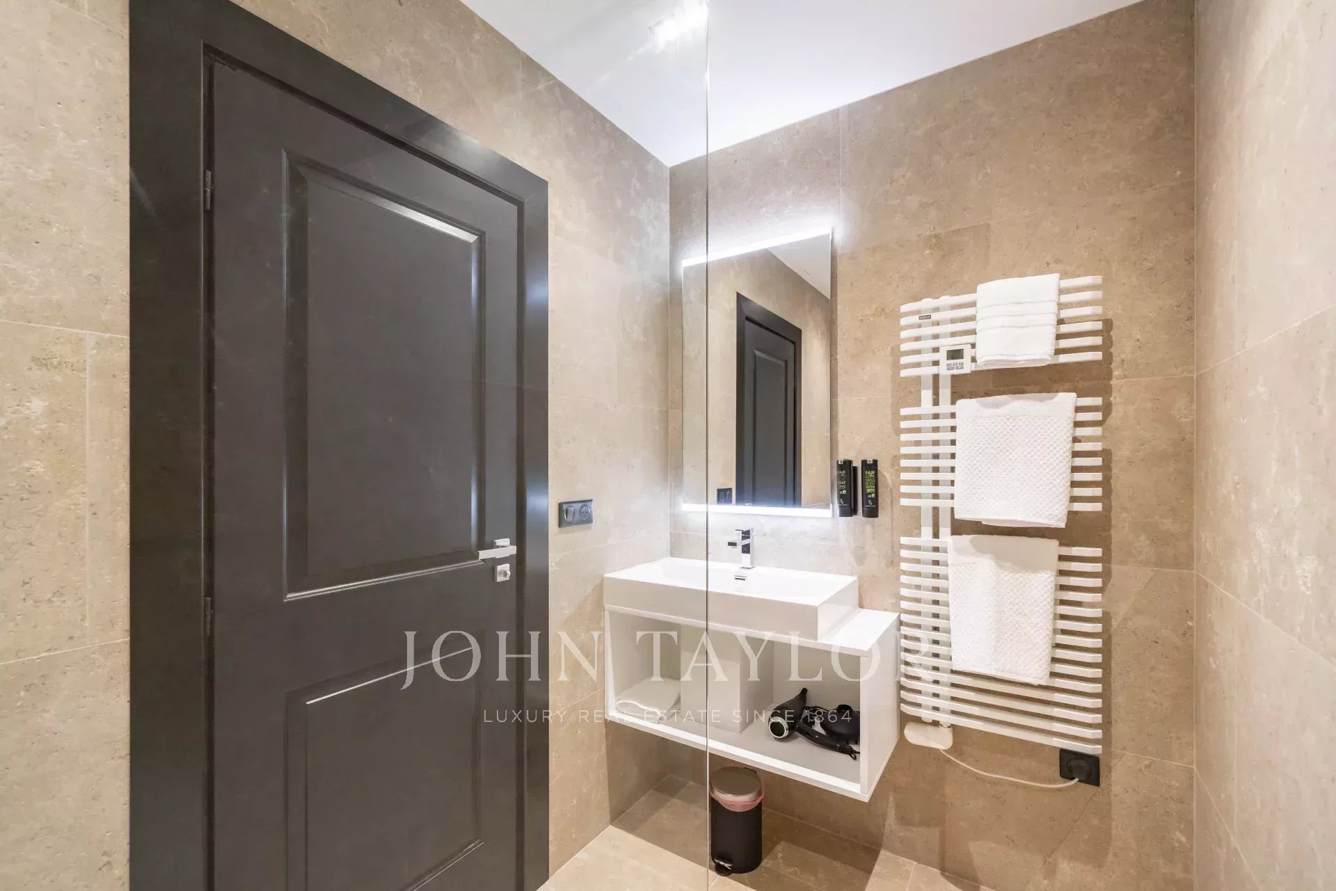 On the 3rd floor of a bourgeois-style building, facing the Palais des Festivals and the Croisette beaches, close to the rue d'Antibes, the "Marché Forville" and the old city of Cannes "Le Suquet", contemporary apartment entirely renovated and air-conditioned offering 195 sq.m living space as follows :