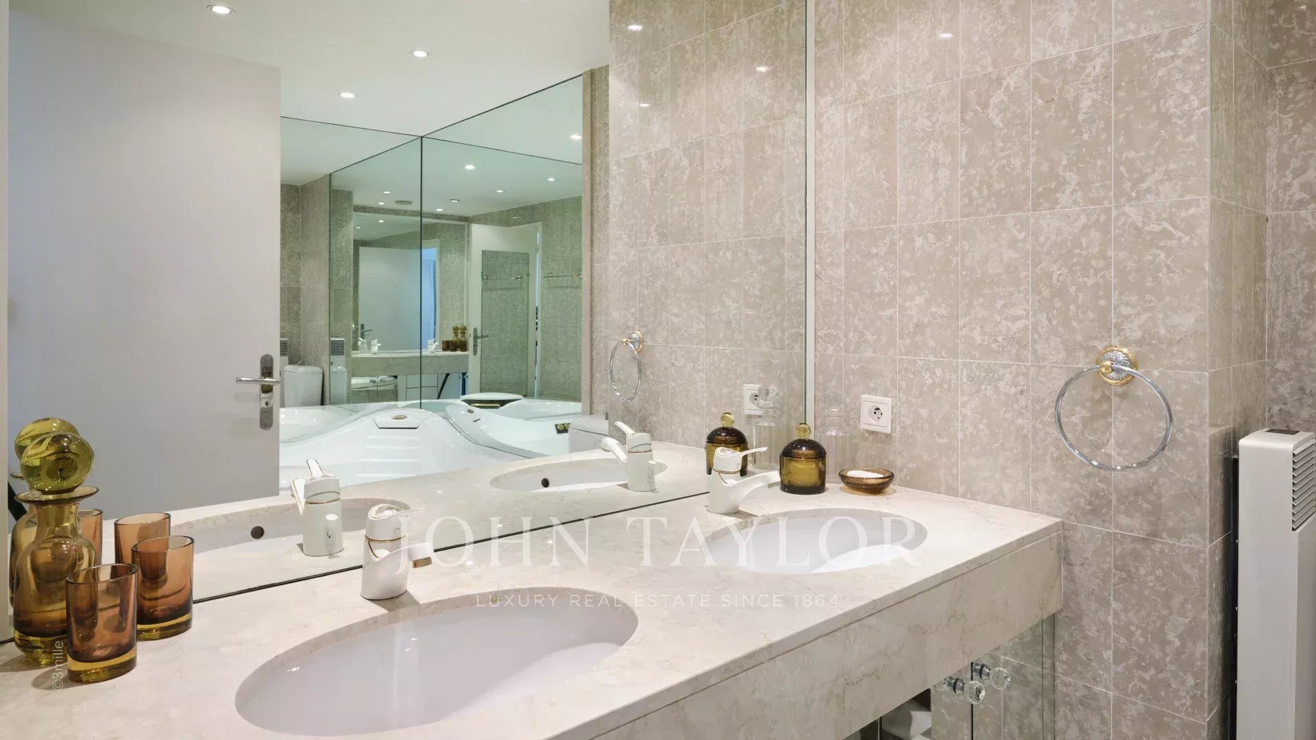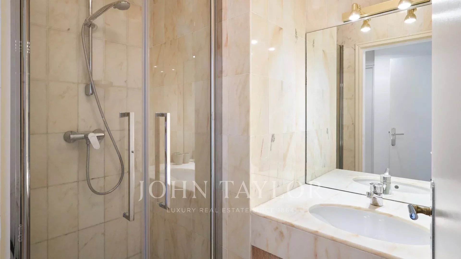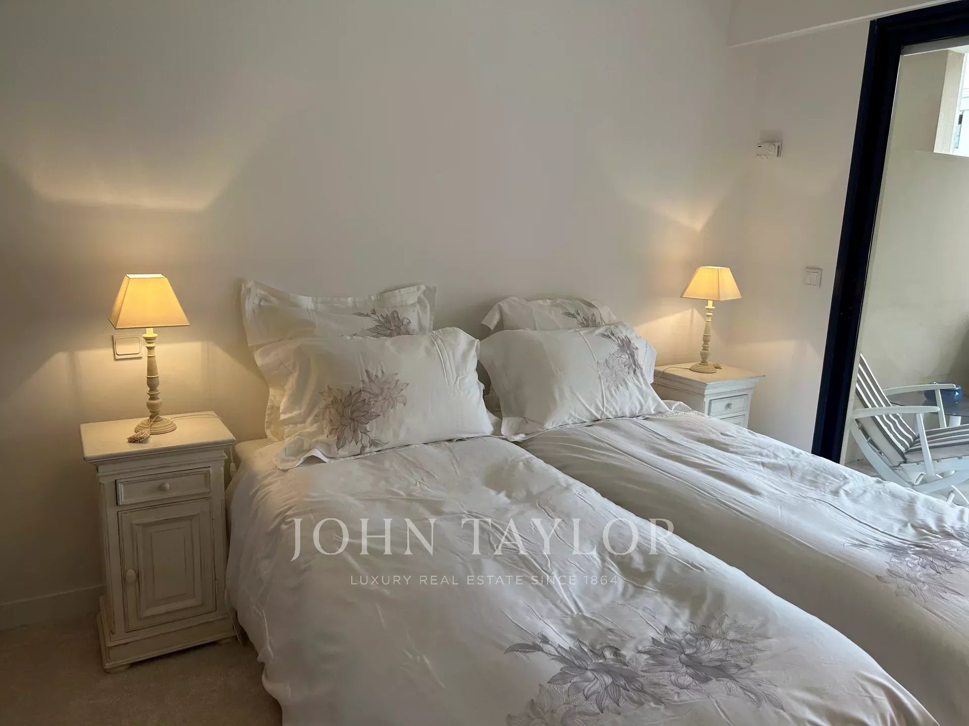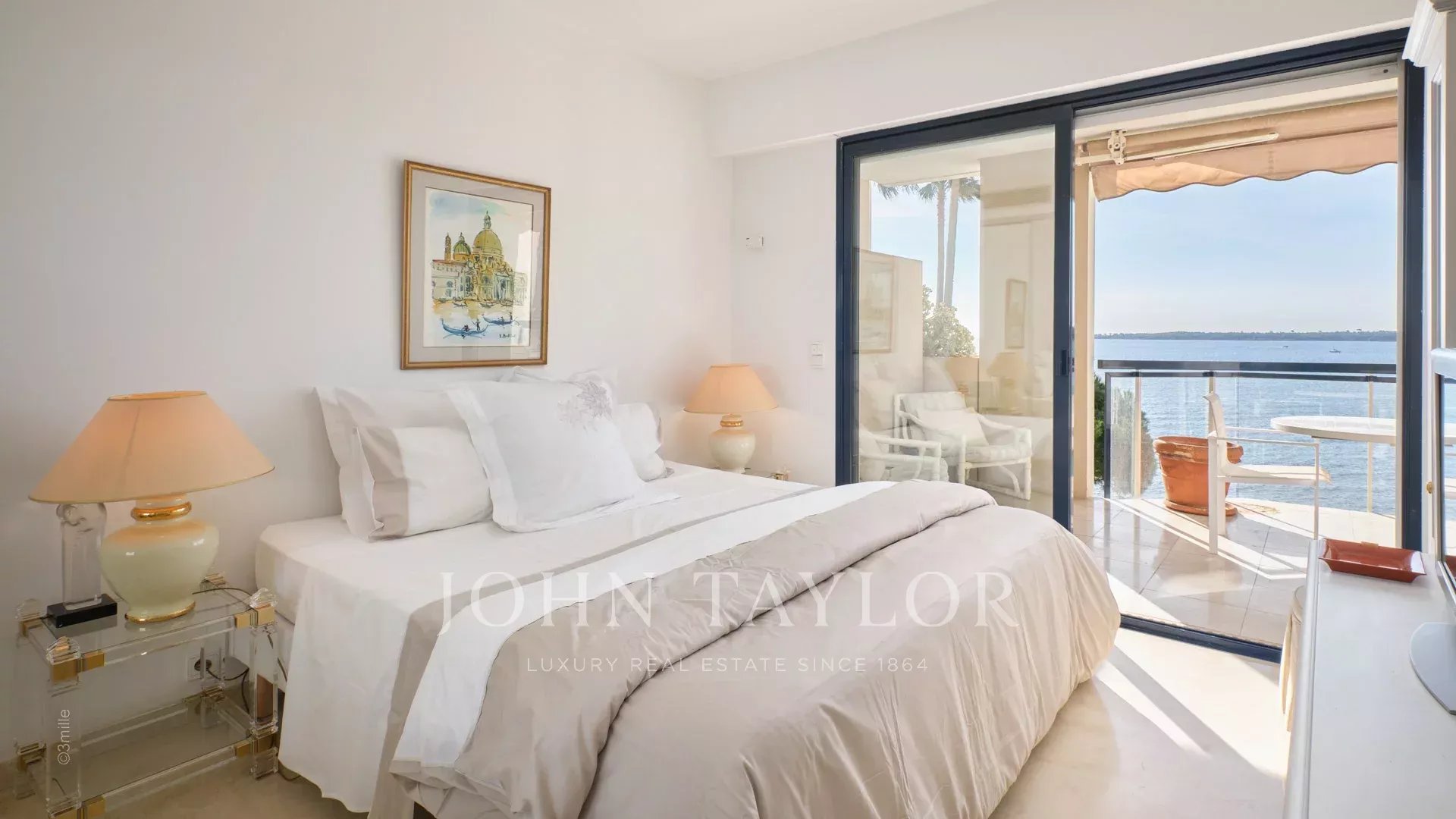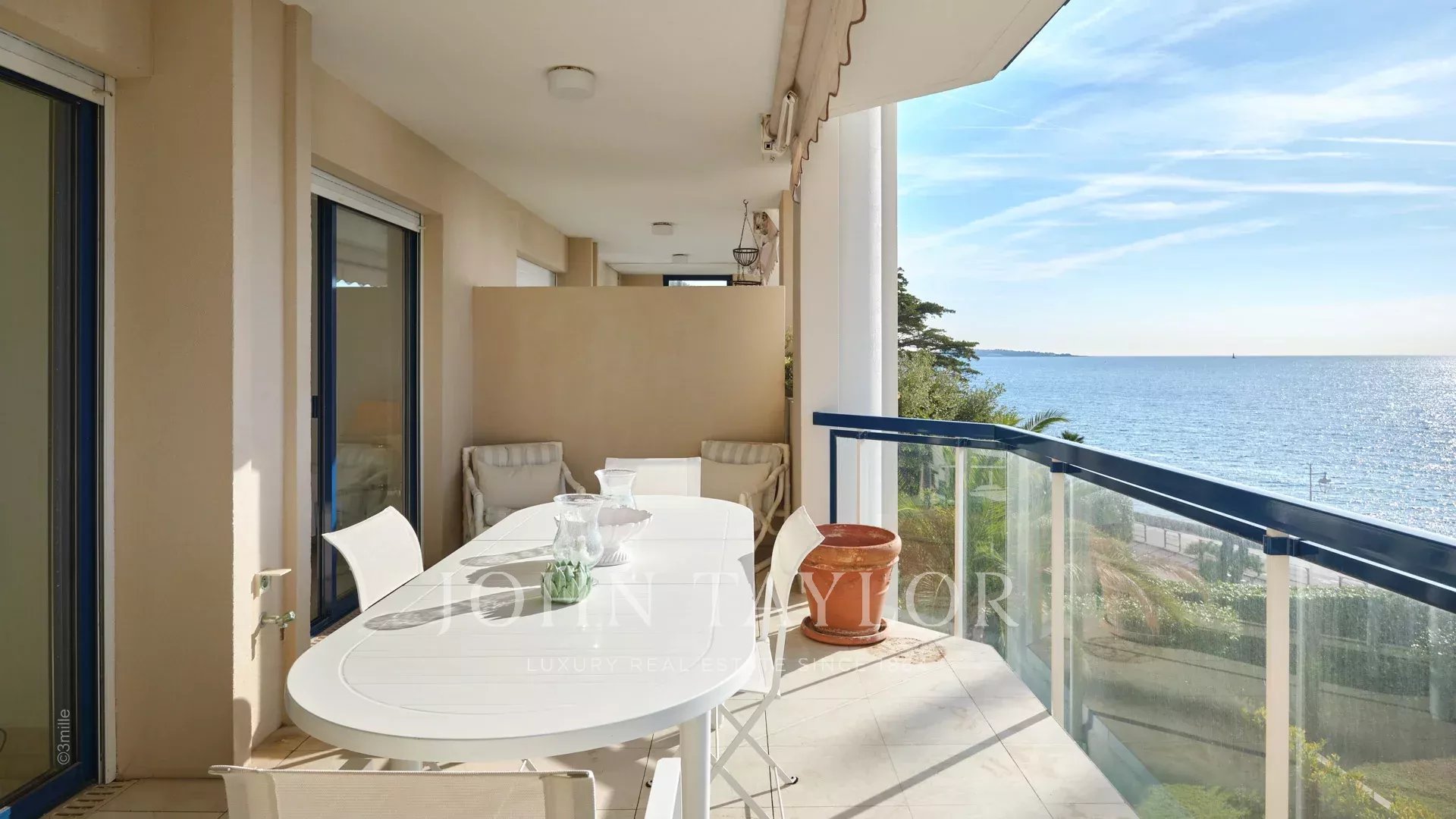 In a standing residence of the Palm Beach, attractive air-conditioned apartment of about 120 sq.m, offering two large terraces and a superb view over the sea and the Lerins islands.