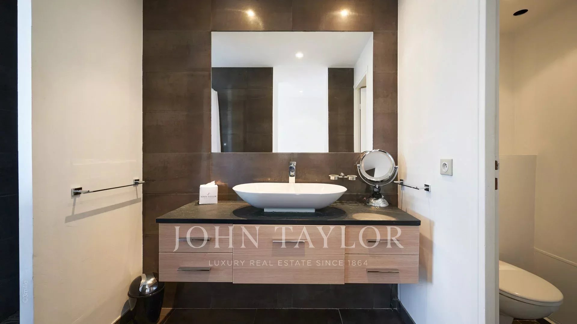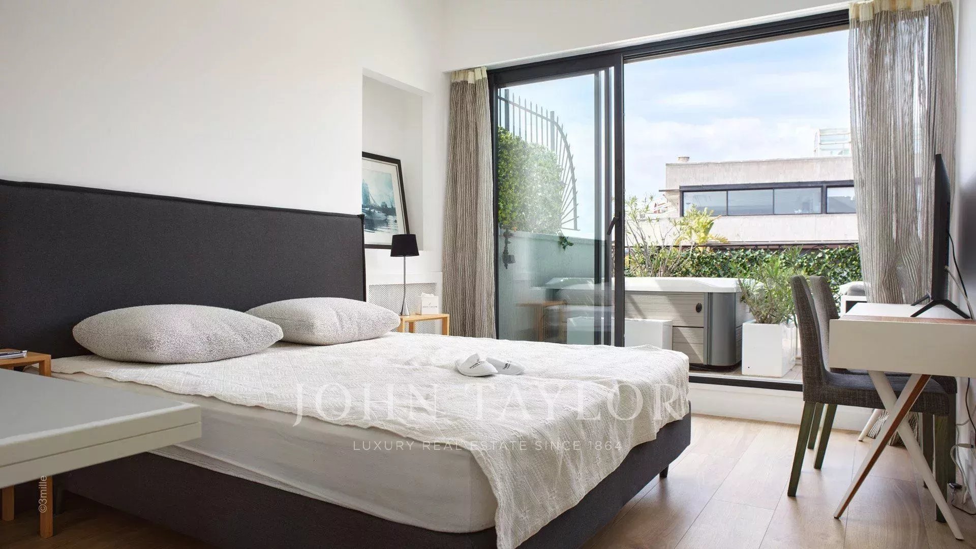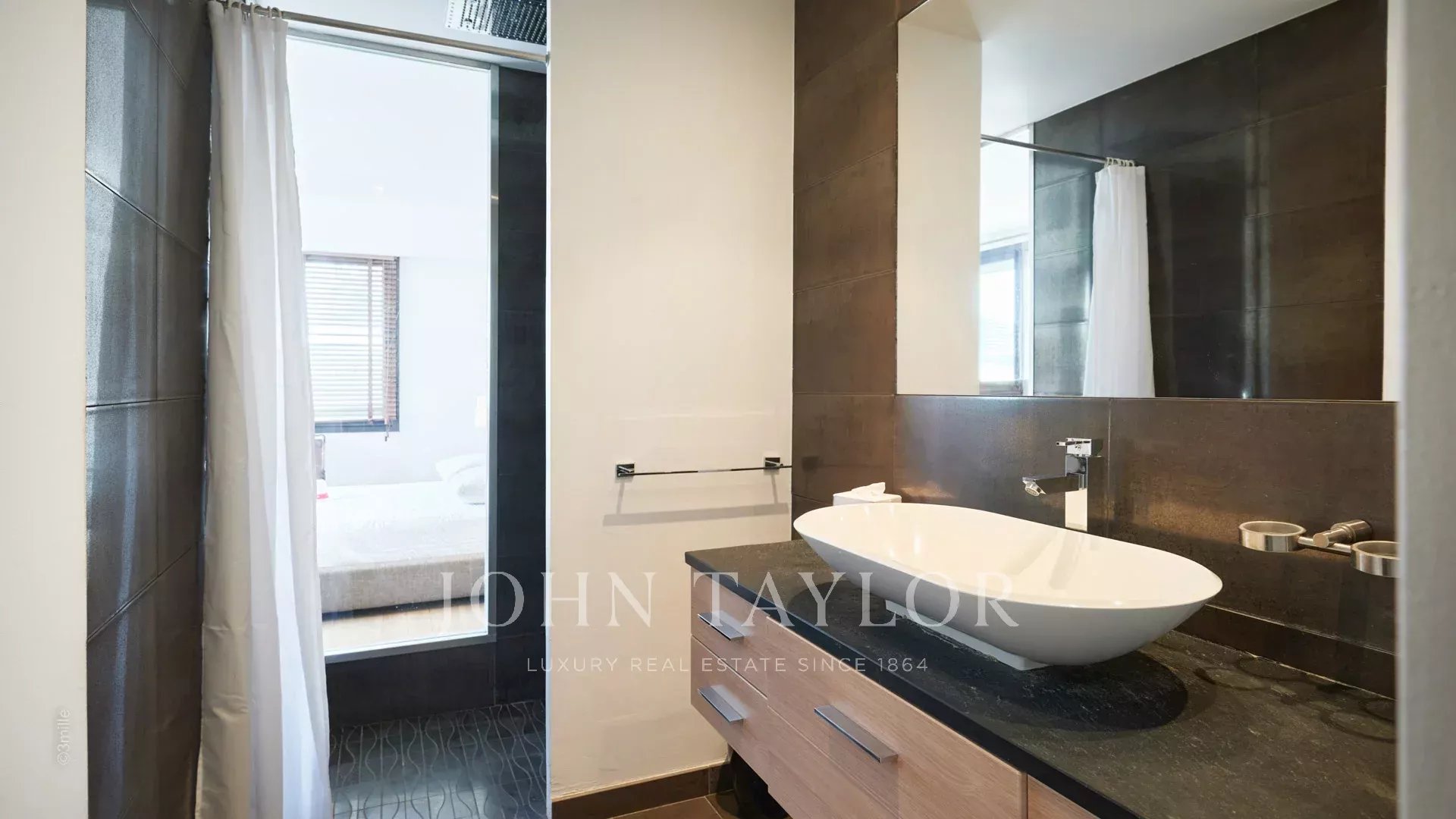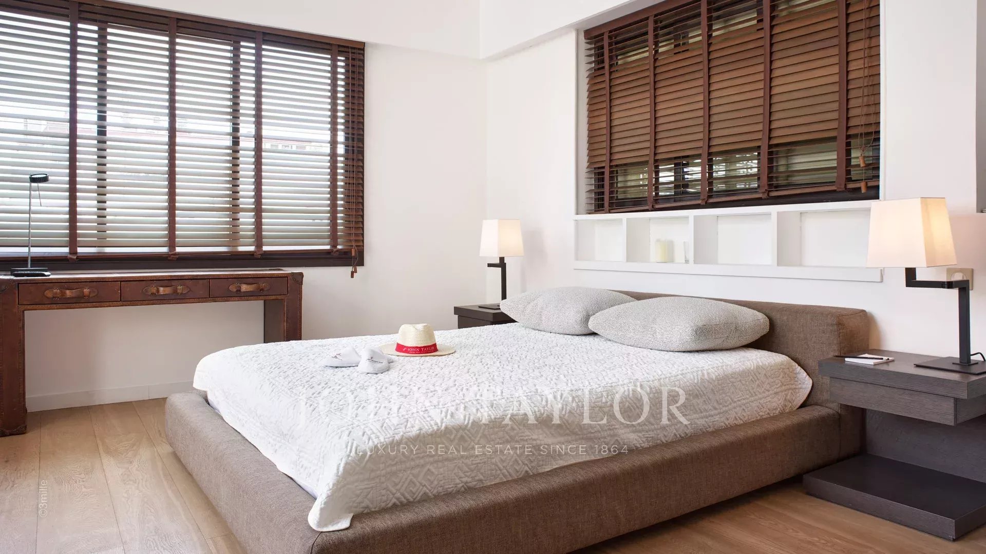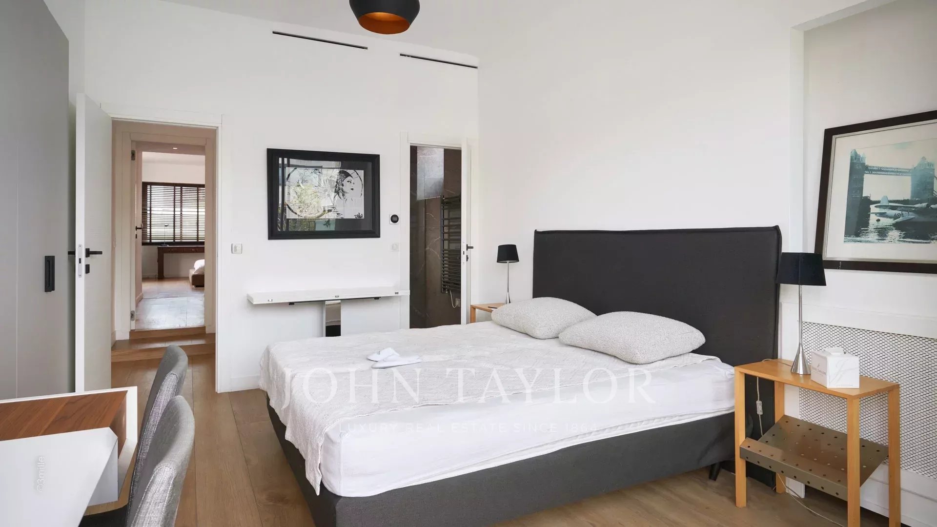In a quiet area and ideally located near the Palais des Festivals, superb air-conditioned contemporary apartment of about 130 sq.m fully renovated with high quality services, enhanced with two large terraces and enjoying nice sea view.