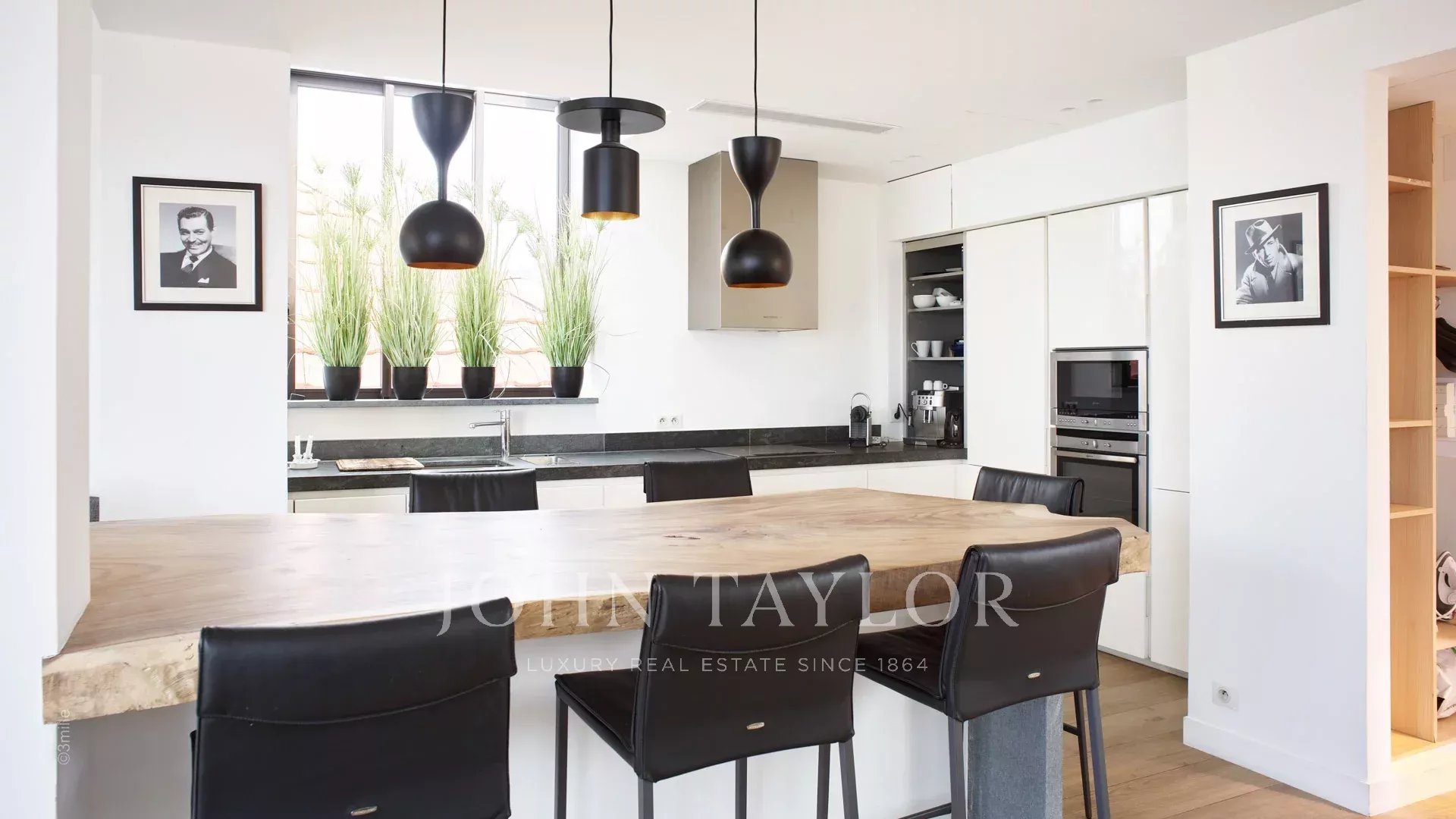 Open plan fitted kitchen opening onto the terrace and the reception room.
