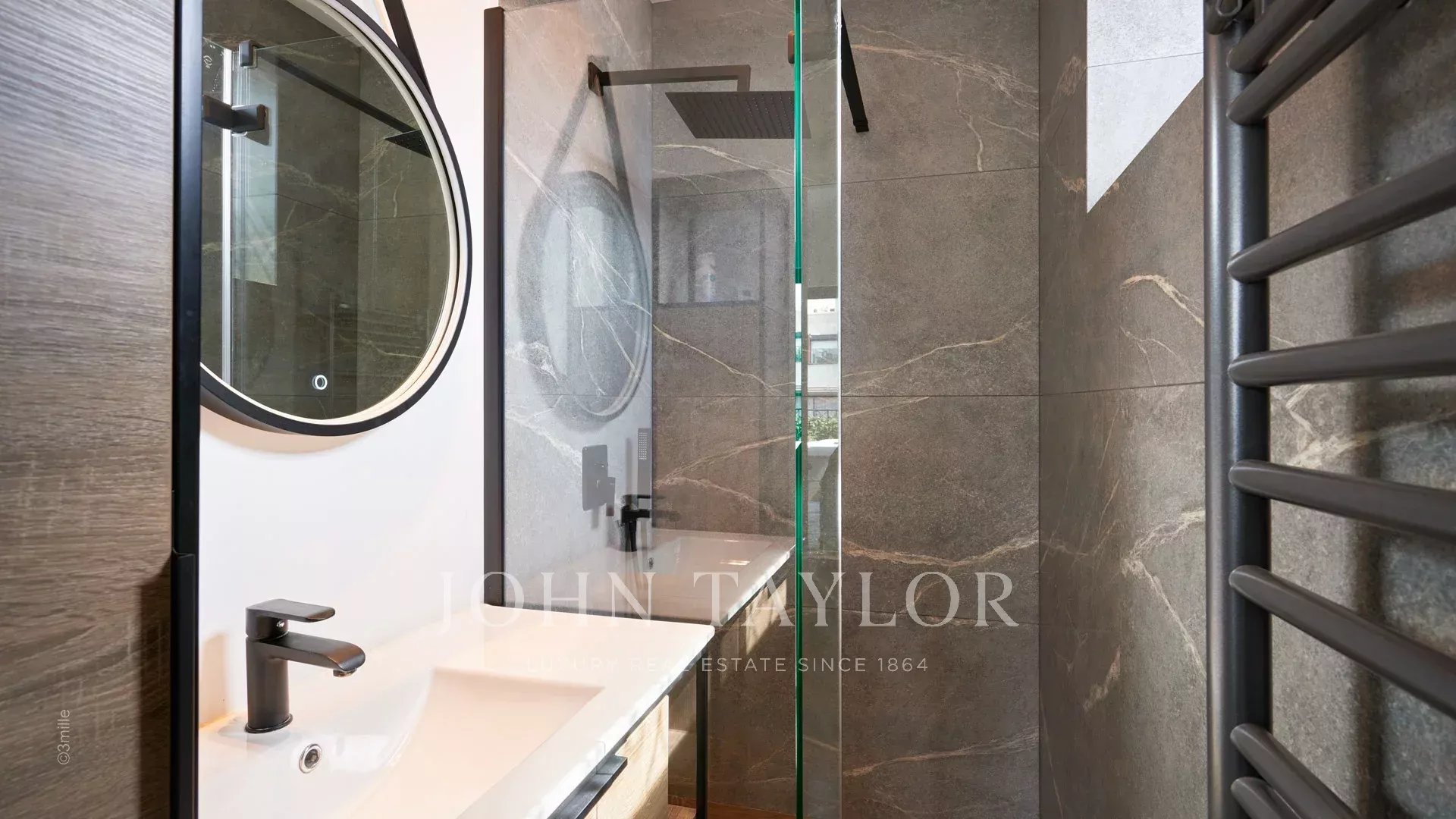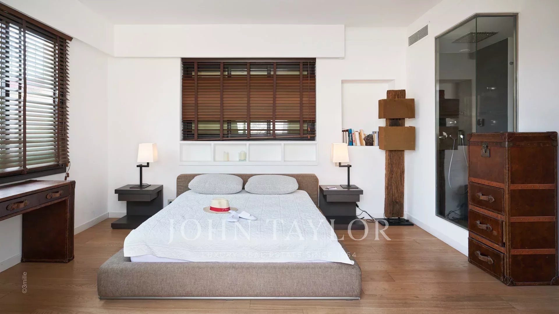 Master bedroom (180 cm bed - cupboards) opening onto a terrace of about 50 sq.m with en suite shower room.