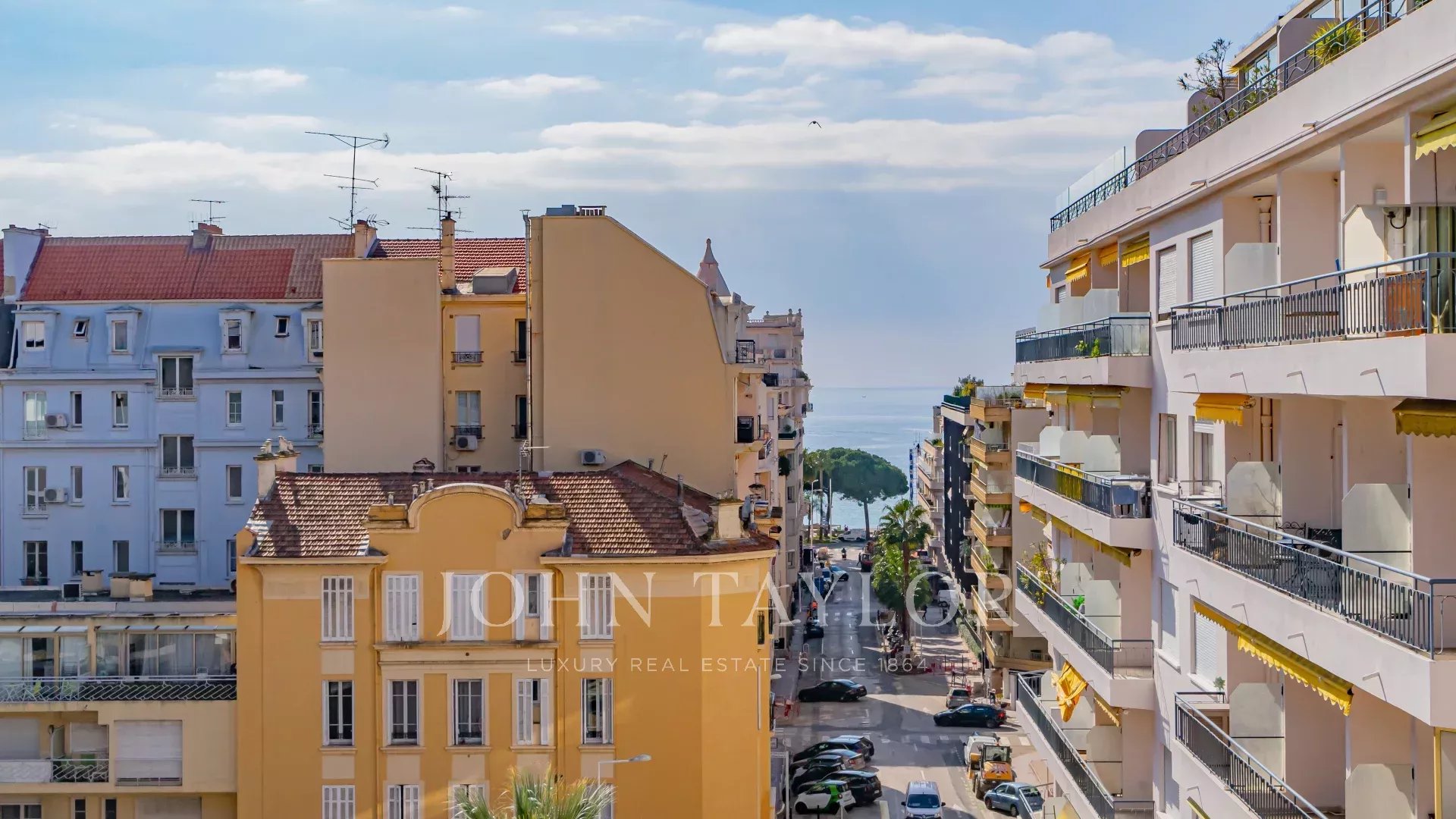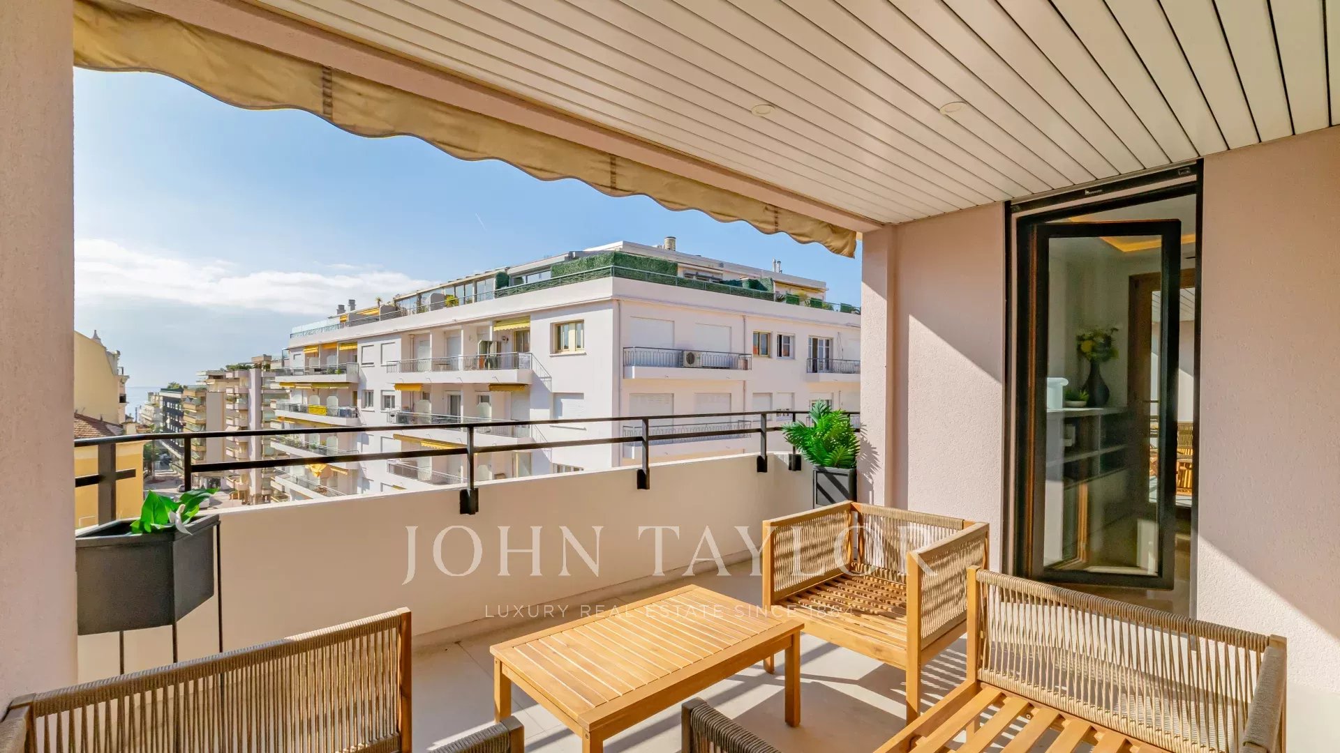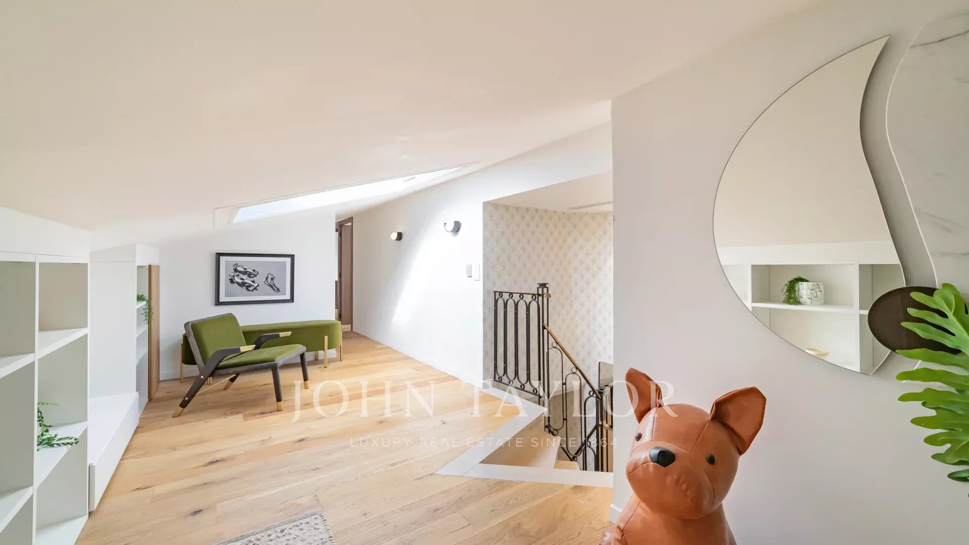 Attractive fully air-conditioned duplex apartment with 134 m2 living space on the 6th and 7th floors of a secure downtown residence on Cannes' main shopping street.