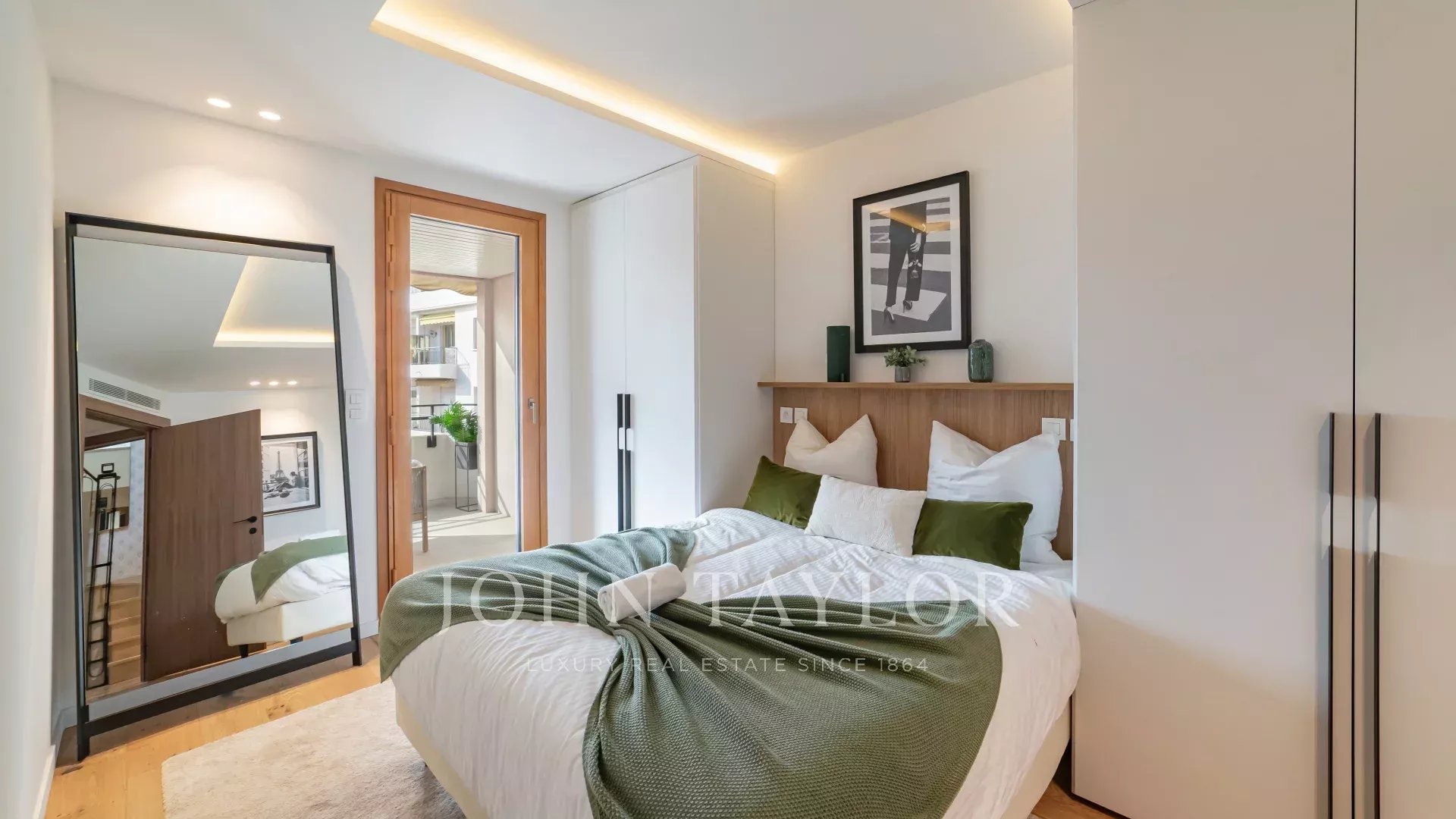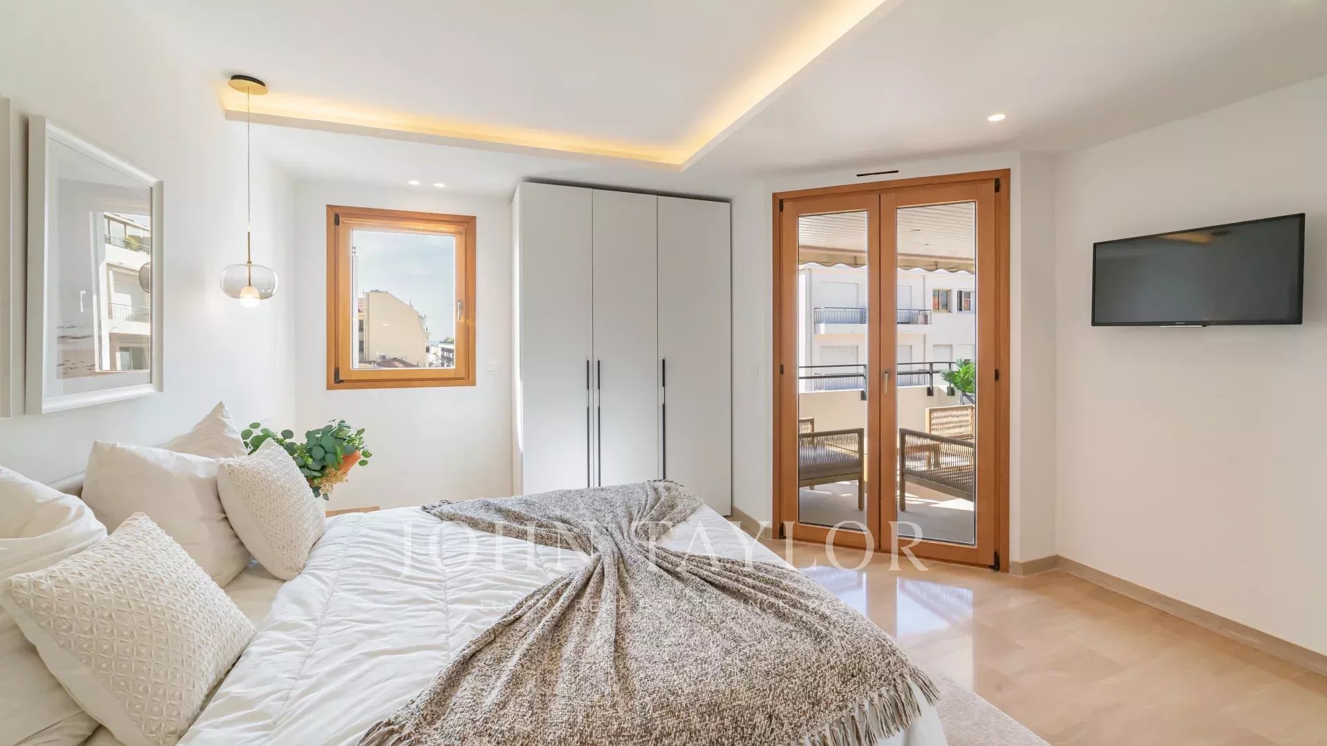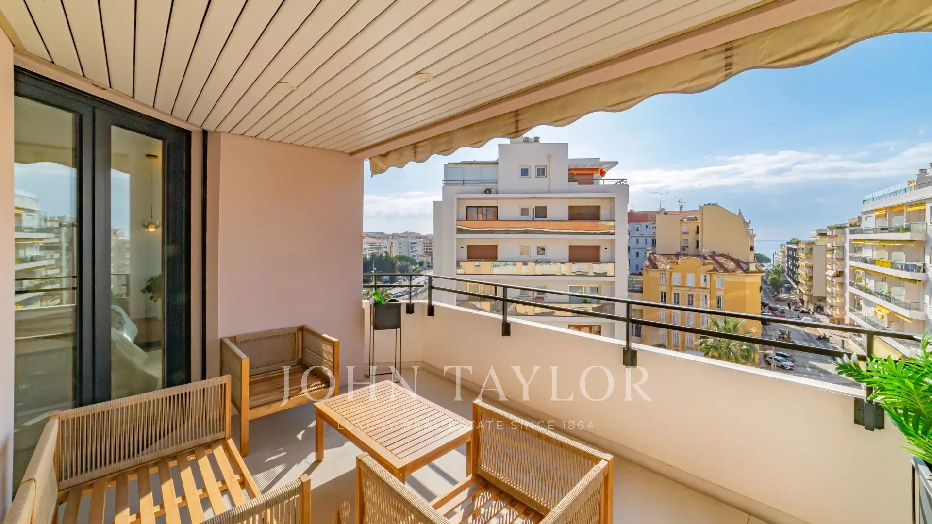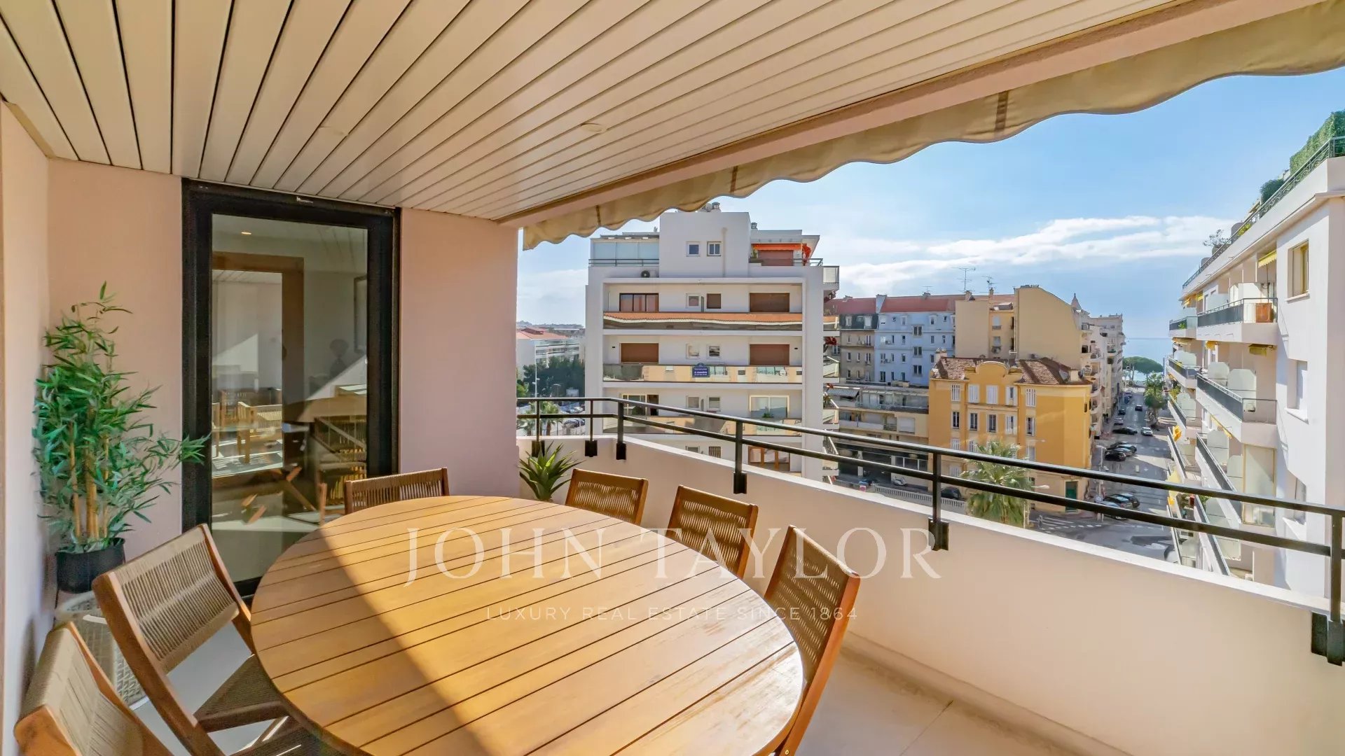 Attractive fully air-conditioned duplex apartment with 134 m2 living space on the 6th and 7th floors of a secure downtown residence on Cannes' main shopping street.