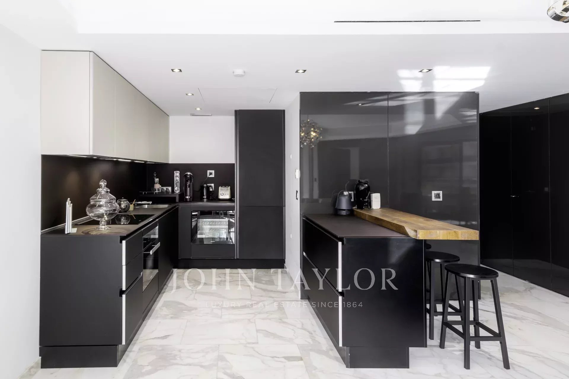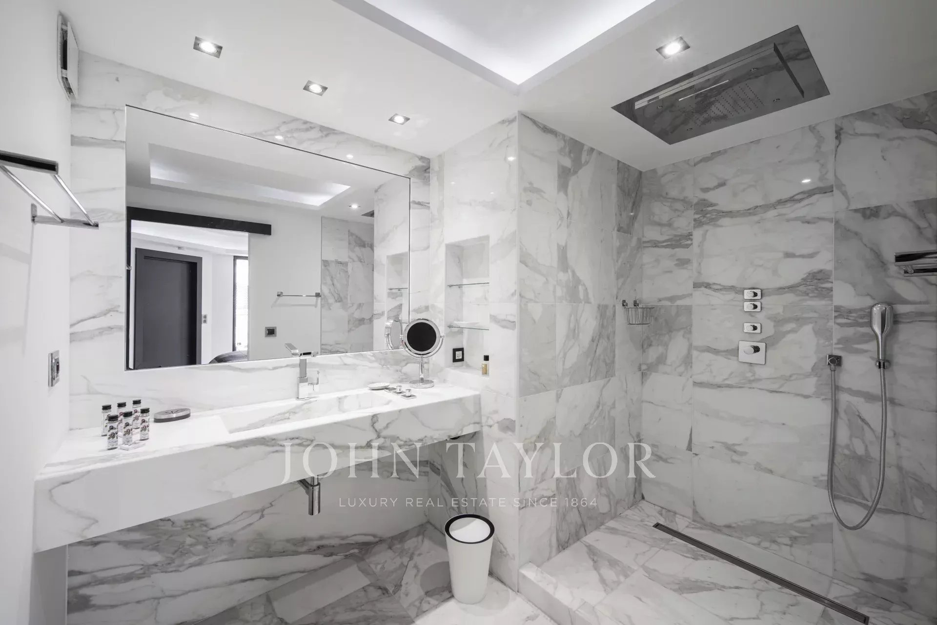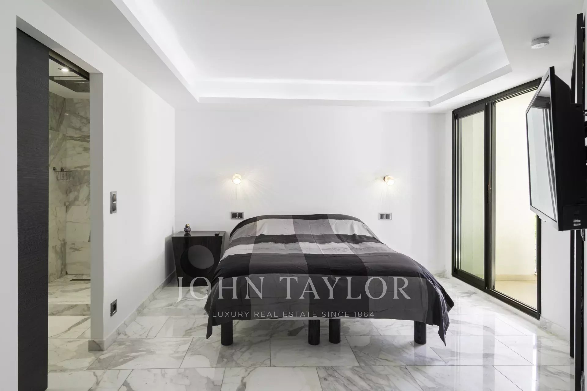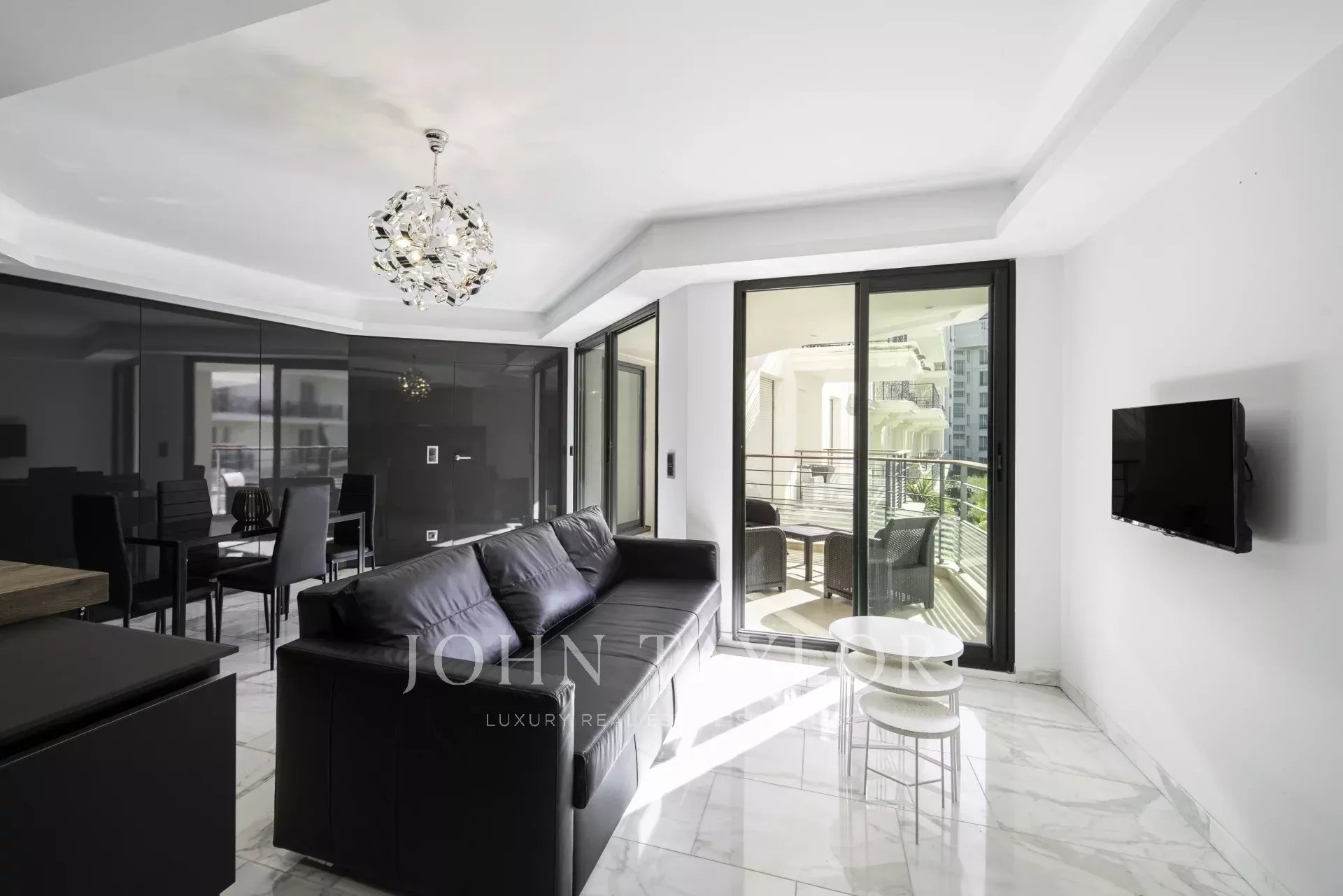 Fully air-conditioned, the apartment features a spacious and bright living room with a fully equipped open-plan kitchen, opening onto a pleasant terrace with views over the gardens of the Hôtel Carlton.