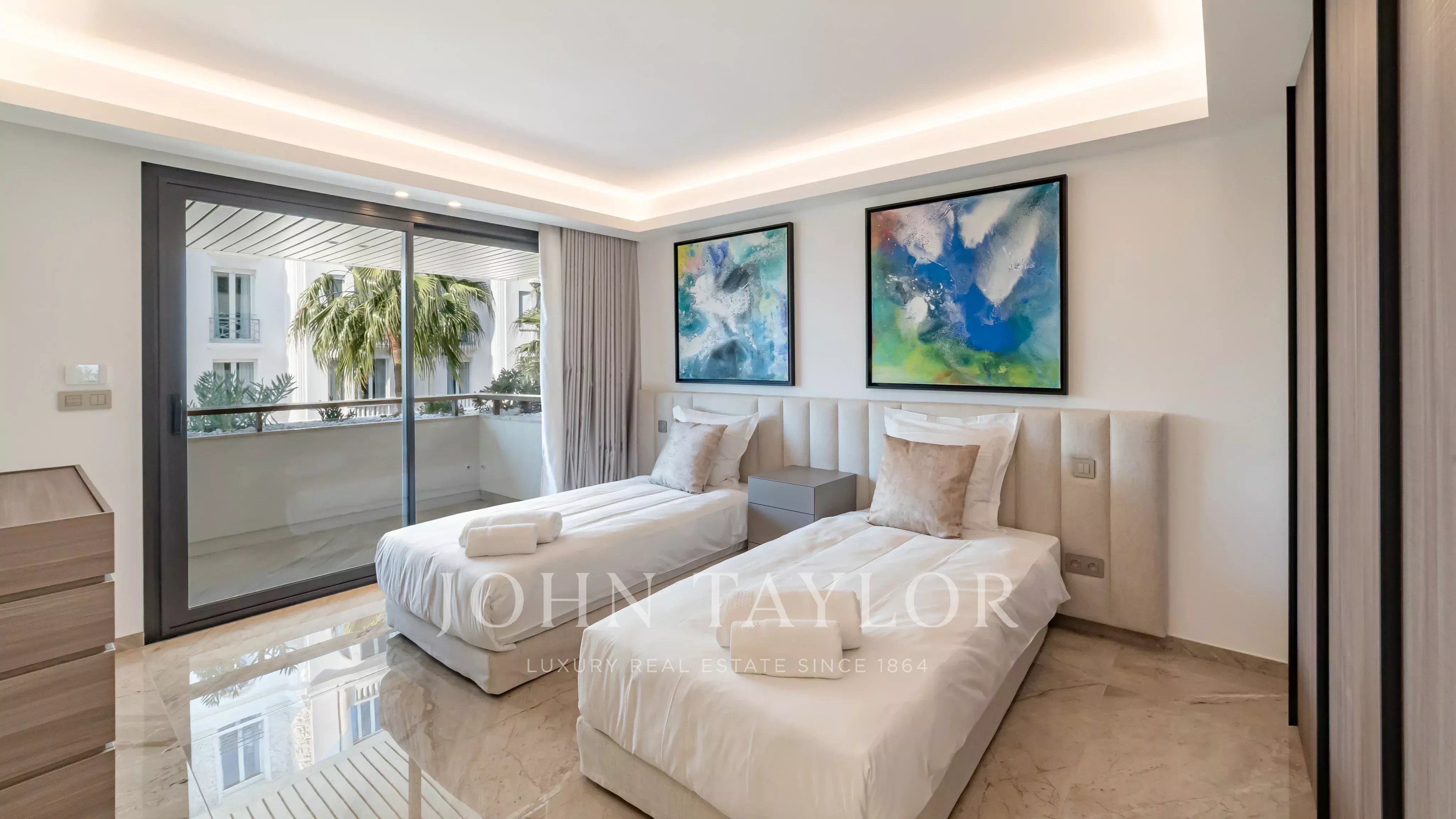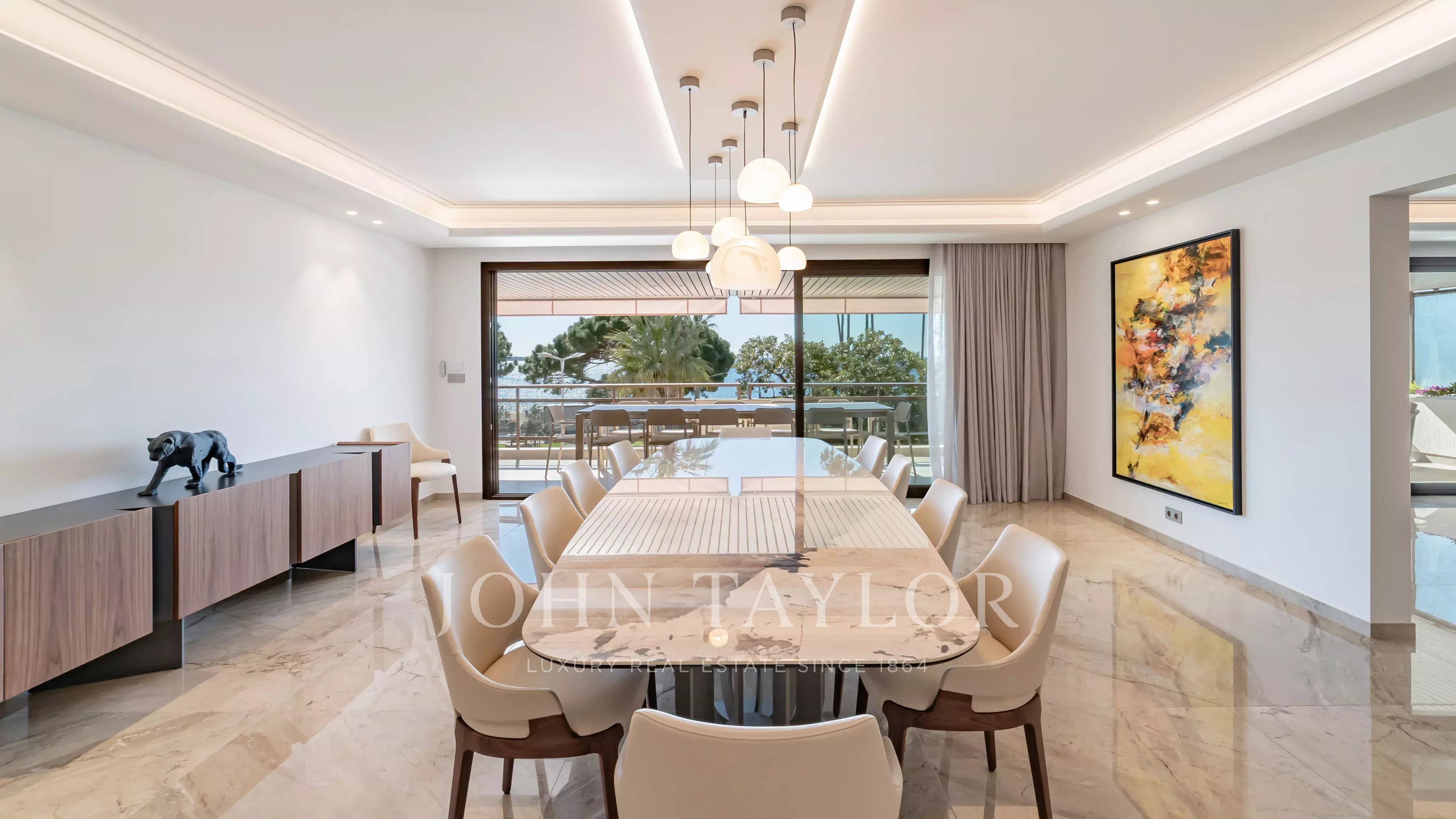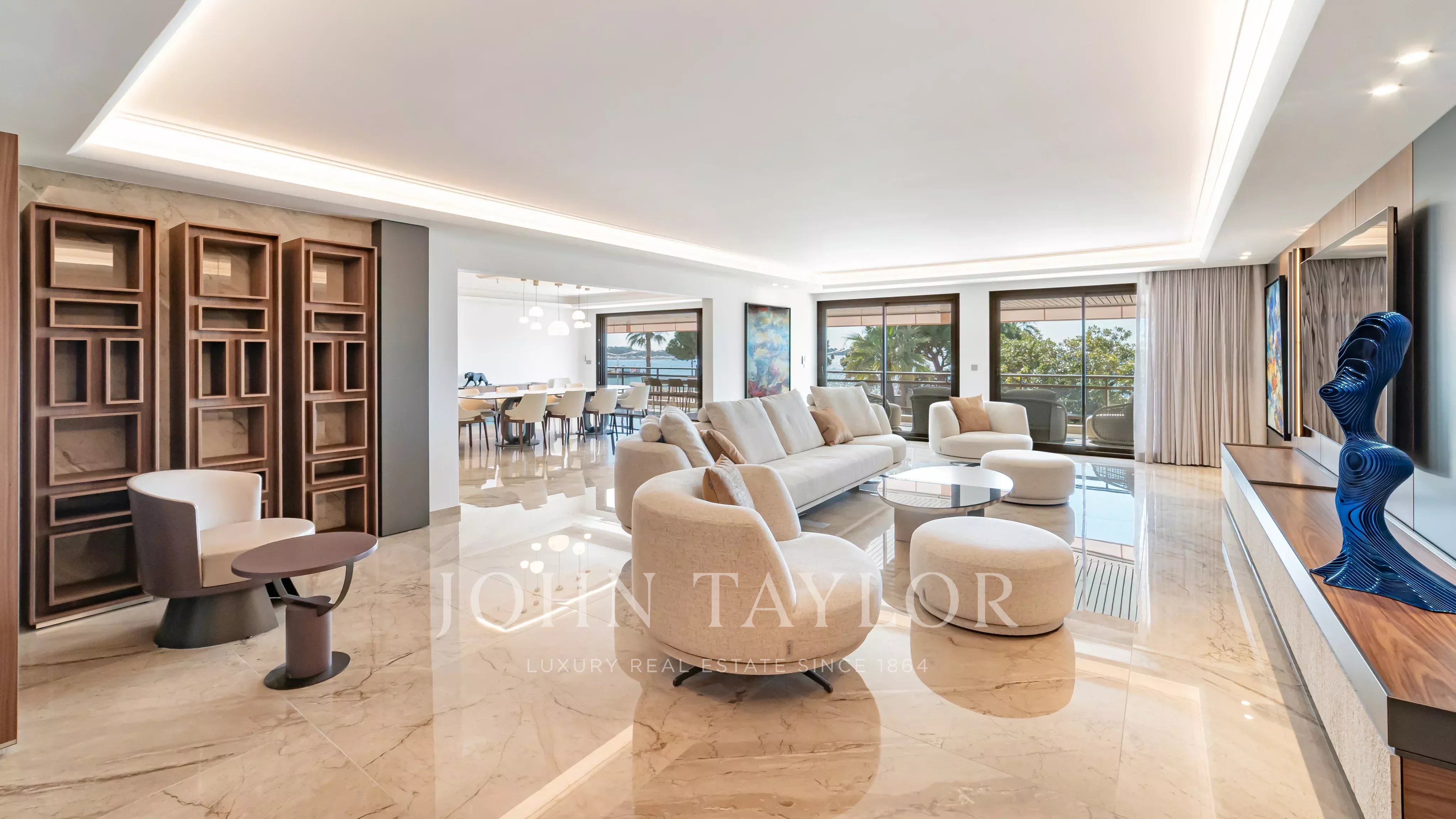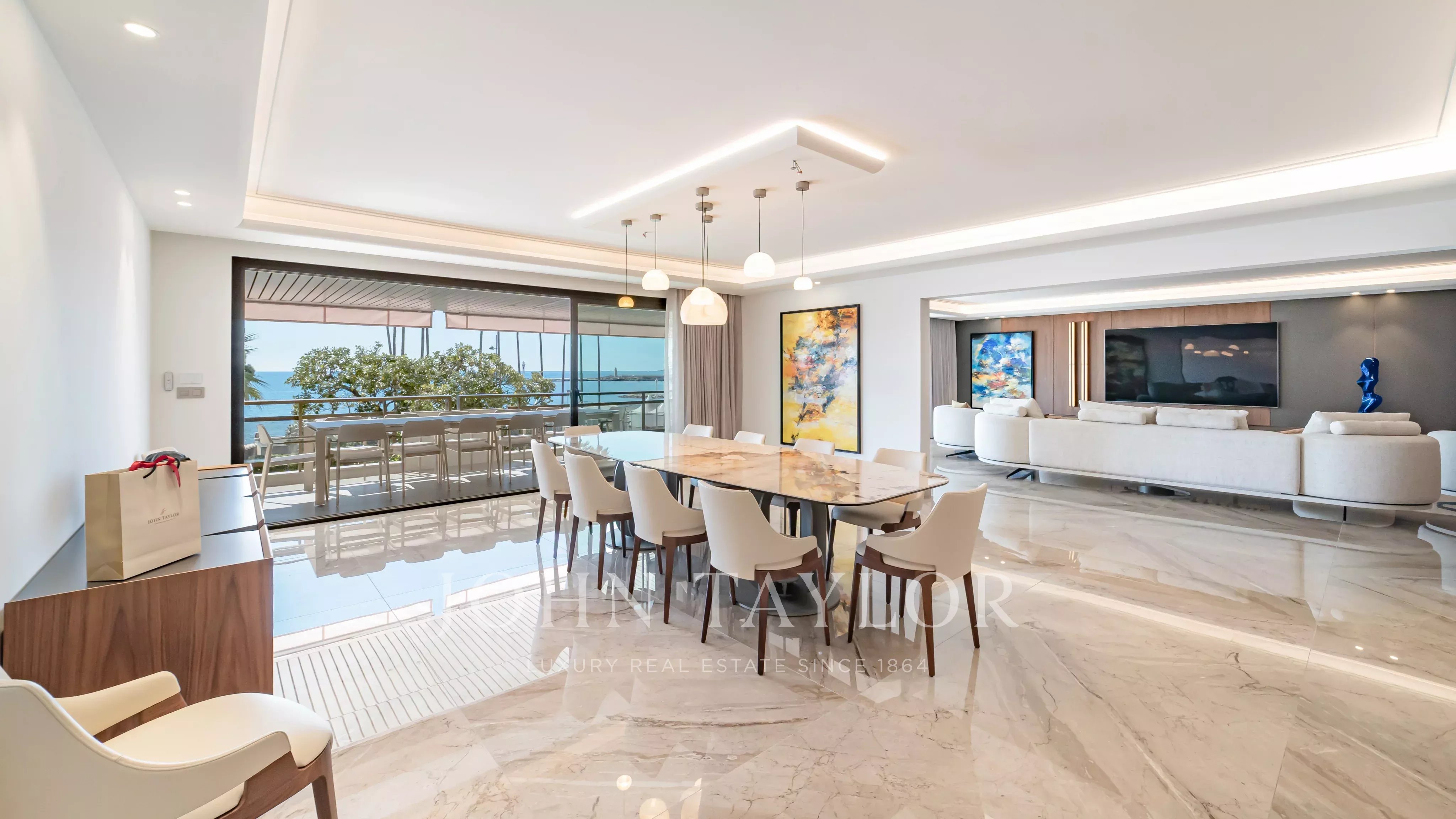 In the heart of the Croisette, within a prestigious residence in immediate proximity to the Palais des Festivals and the Majestic Hotel, this exceptional apartment of approximately 320 sqm, extended by a 110 sqm terrace, embodies contemporary elegance at its finest.