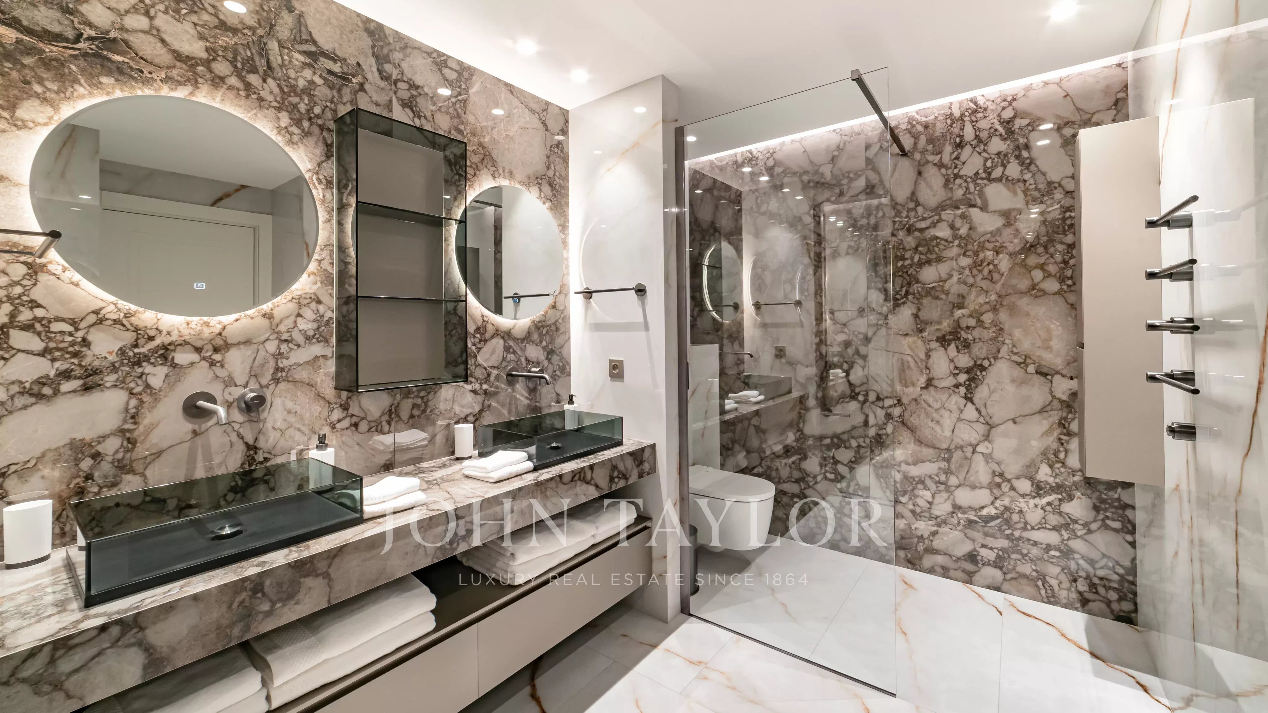 Two principal suites with en-suite shower rooms and toilets, both with direct access to the sea-facing terrace