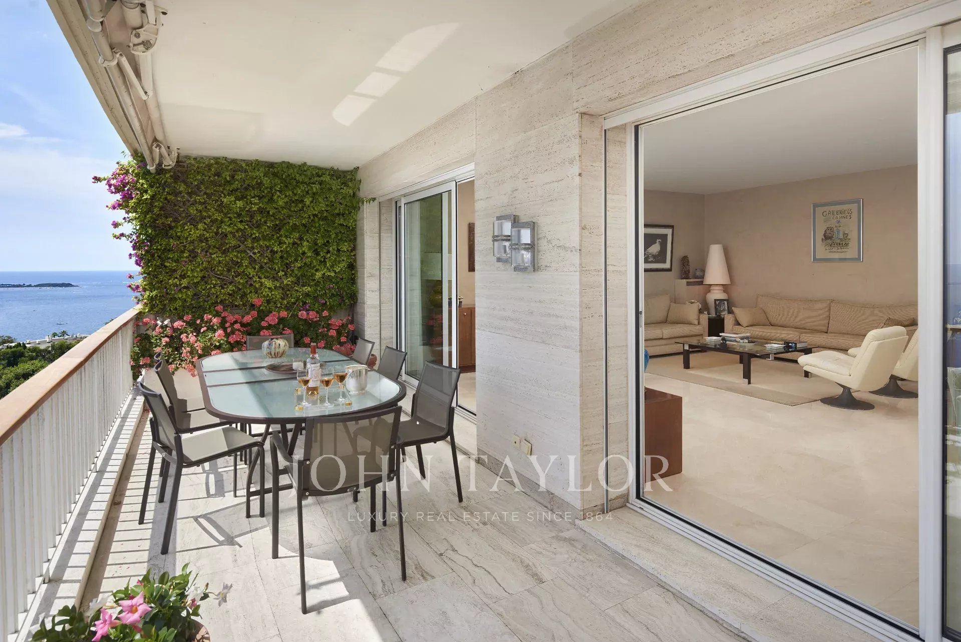 Entrance leading onto the double living / dining room opening onto the terrace, sea view