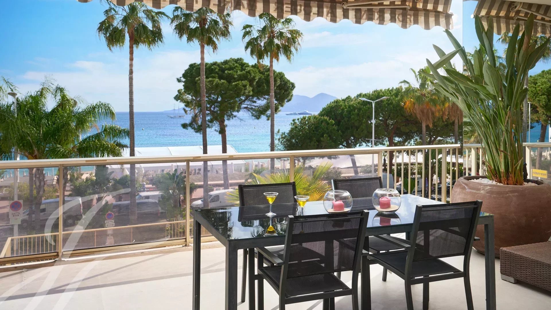Attractive and modern apartment, entirely renovated and fully air-conditioned on the 2nd floor of a residence situated on the famous boulevard de la Croisette, between the Carlton Hotel and the Palais Miramar, enjoying a panoramic sea-view.