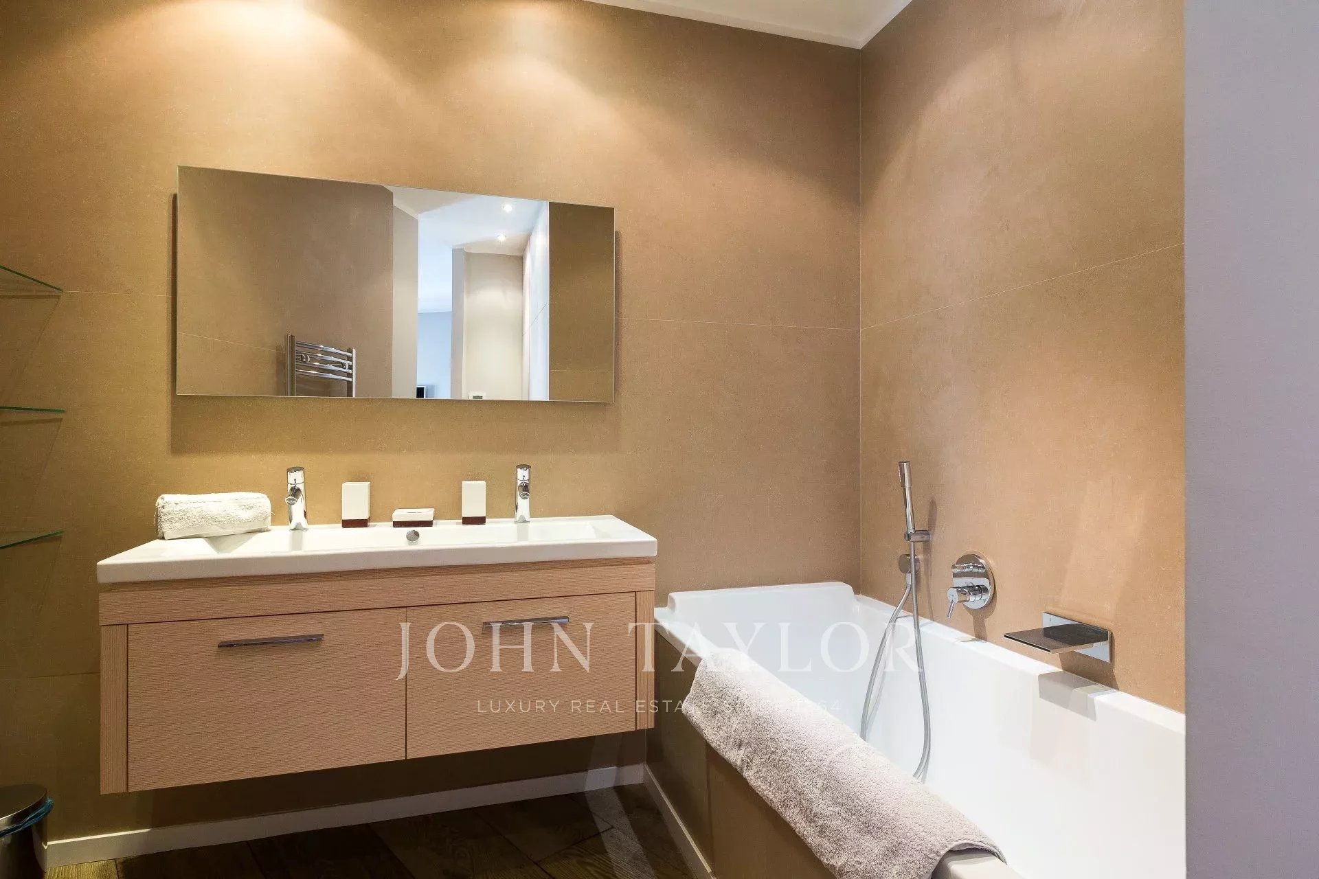 By the elevator, access to the top level and the terrace of 160 sq.m enjoying panoramic view over the Bay of Cannes and the Suquet :