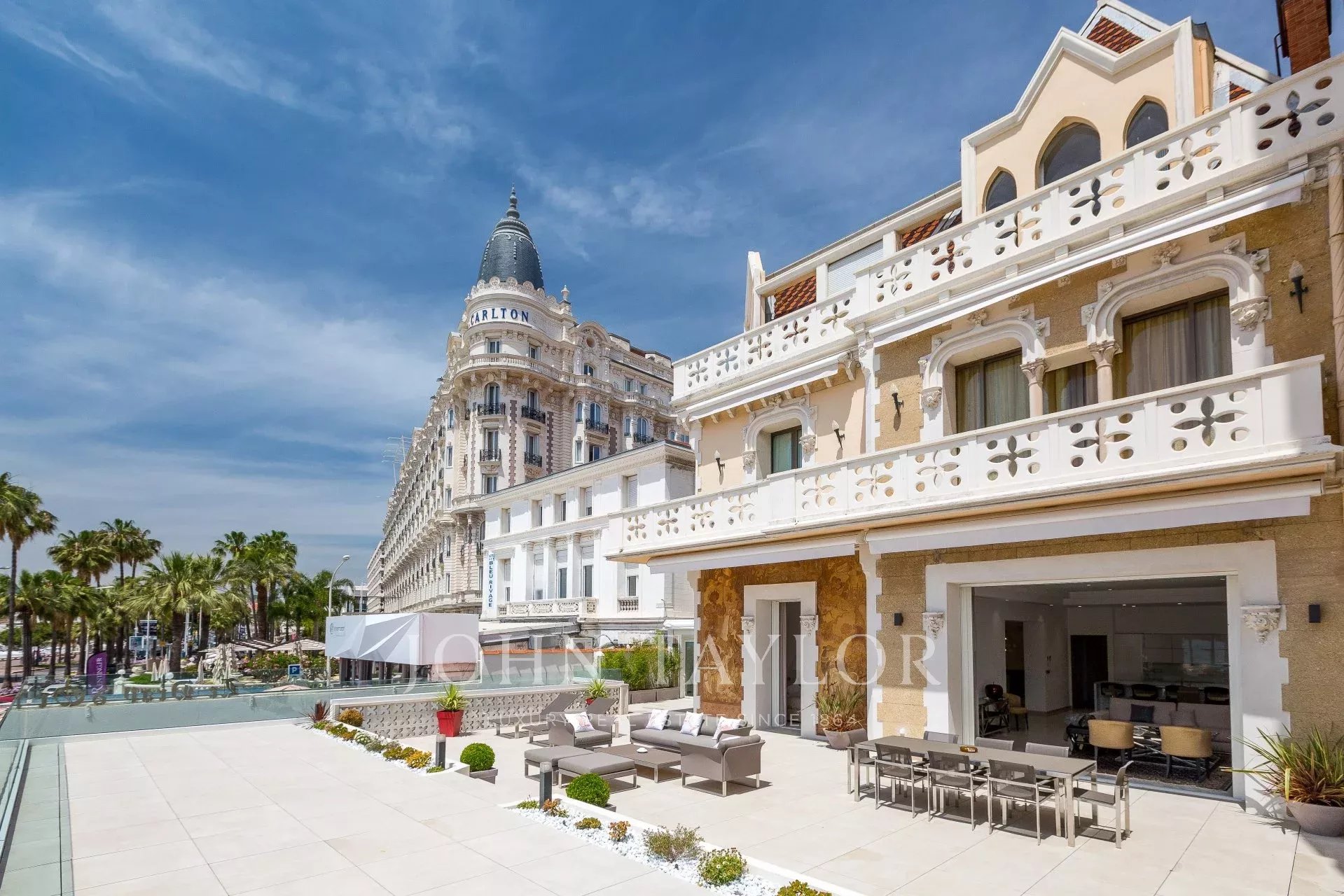 Situated on the Croisette, next to the Hotel Carlton, in a small classified residence, beautiful contemporary apartment of about 215 sq.m.