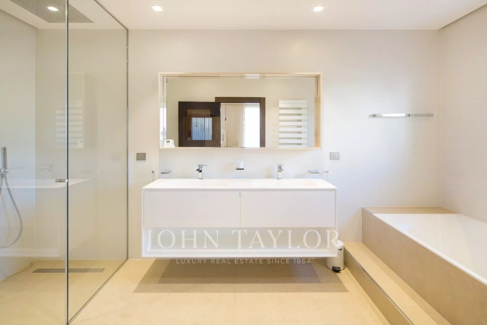 A staircase leads to the floor dedicated to the Master suite of 100 sq.m opening onto a terrace of 32 sq.m equipped with a summer lounge. Large dressing room - Full bathroom.