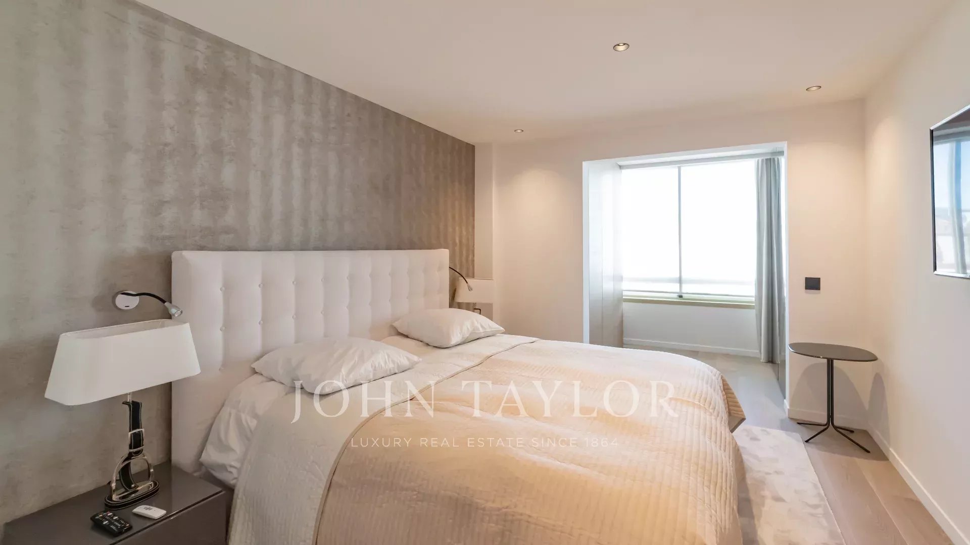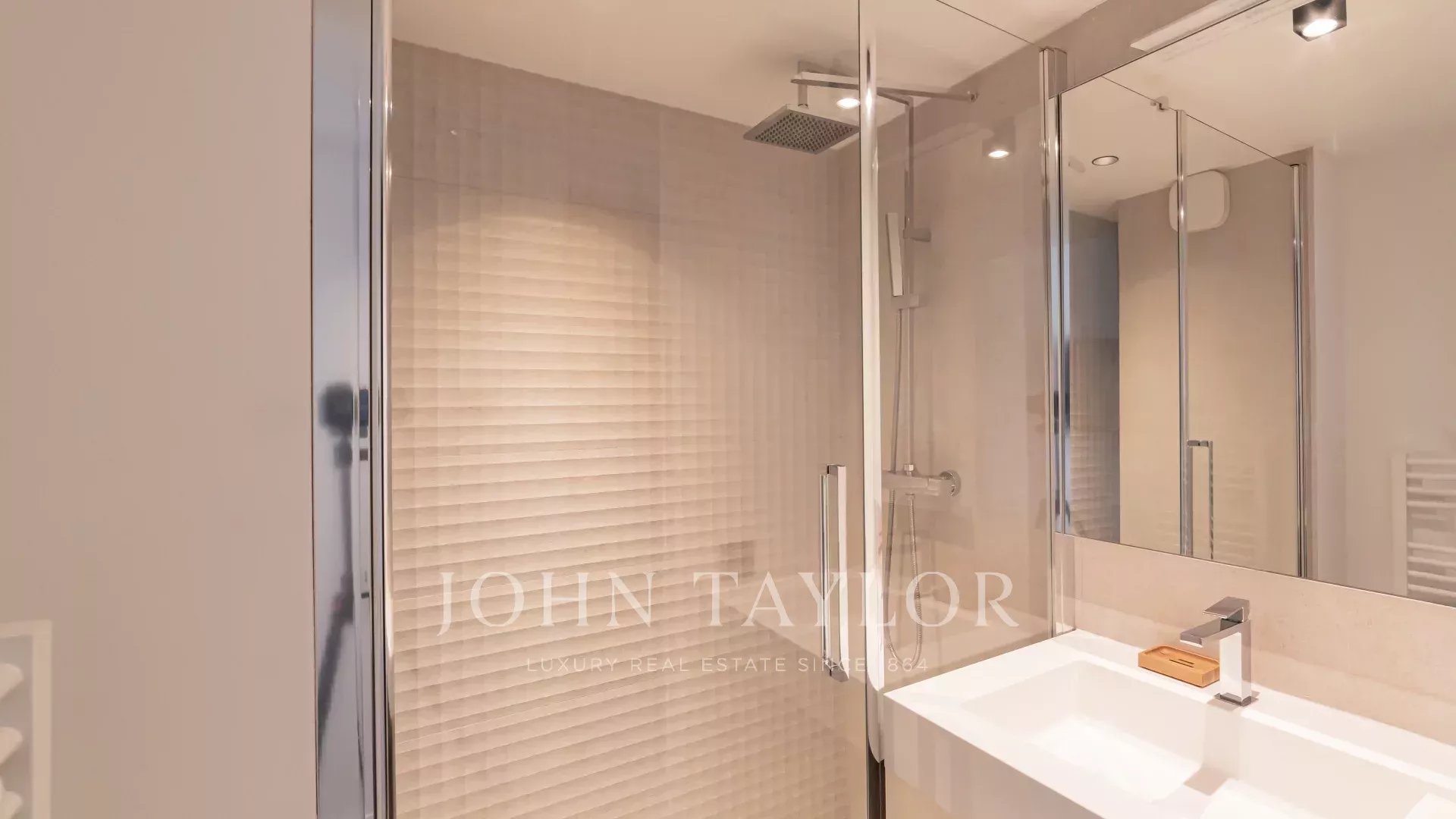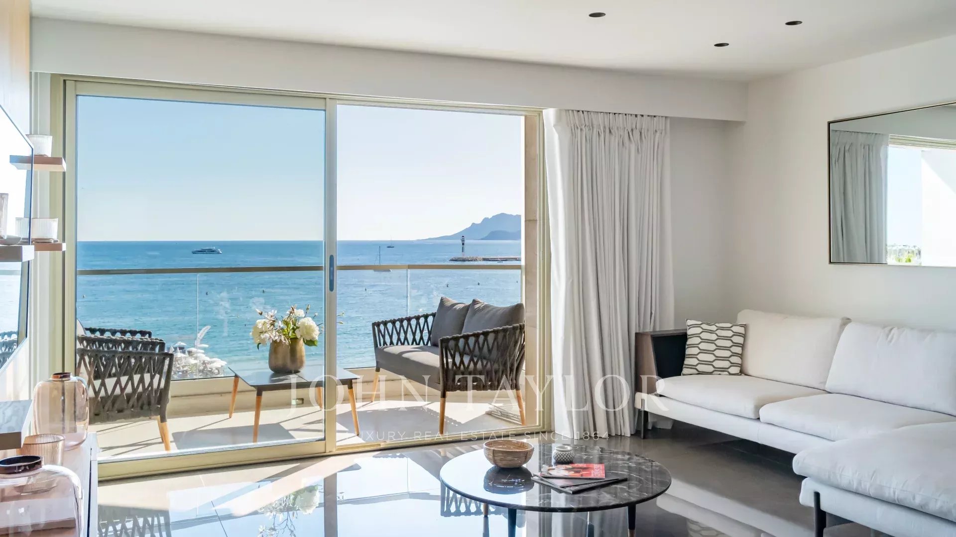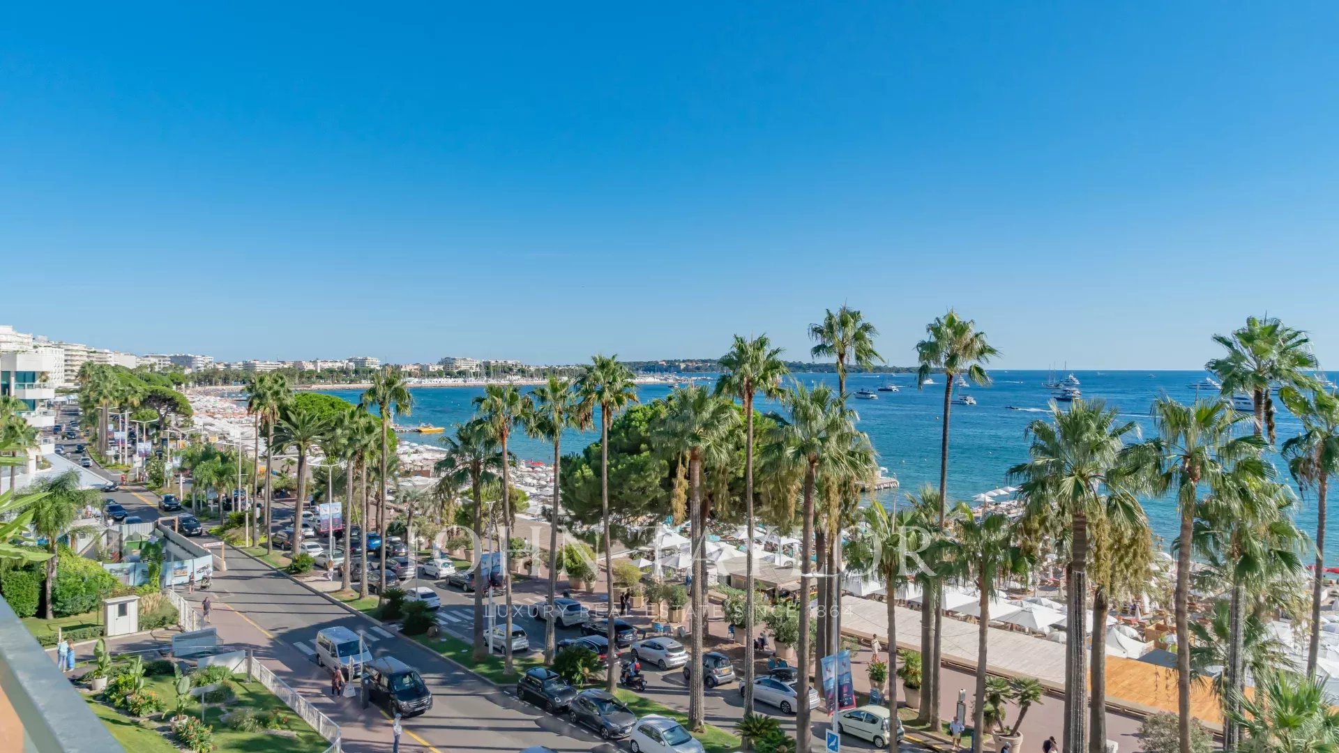 Attractive air-conditioned apartment located in the heart of the Croisette on the 5th floor of a luxury residence, enjoying a magnificent panoramic view of the Bay of Cannes, its beaches, the Palace of Festivals and the Esterel.