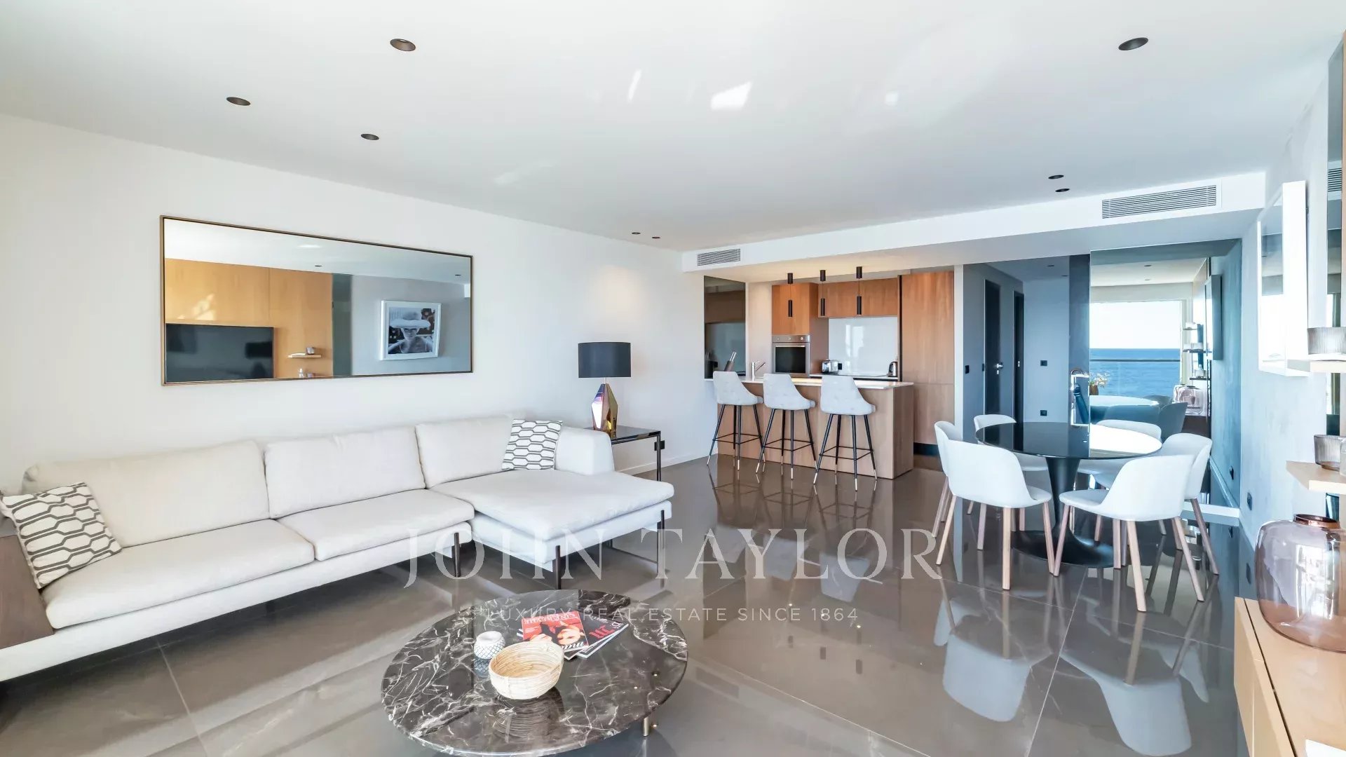 Living room (flat screen TV) opening onto the terrace, sea American kitchen perfectly equipped