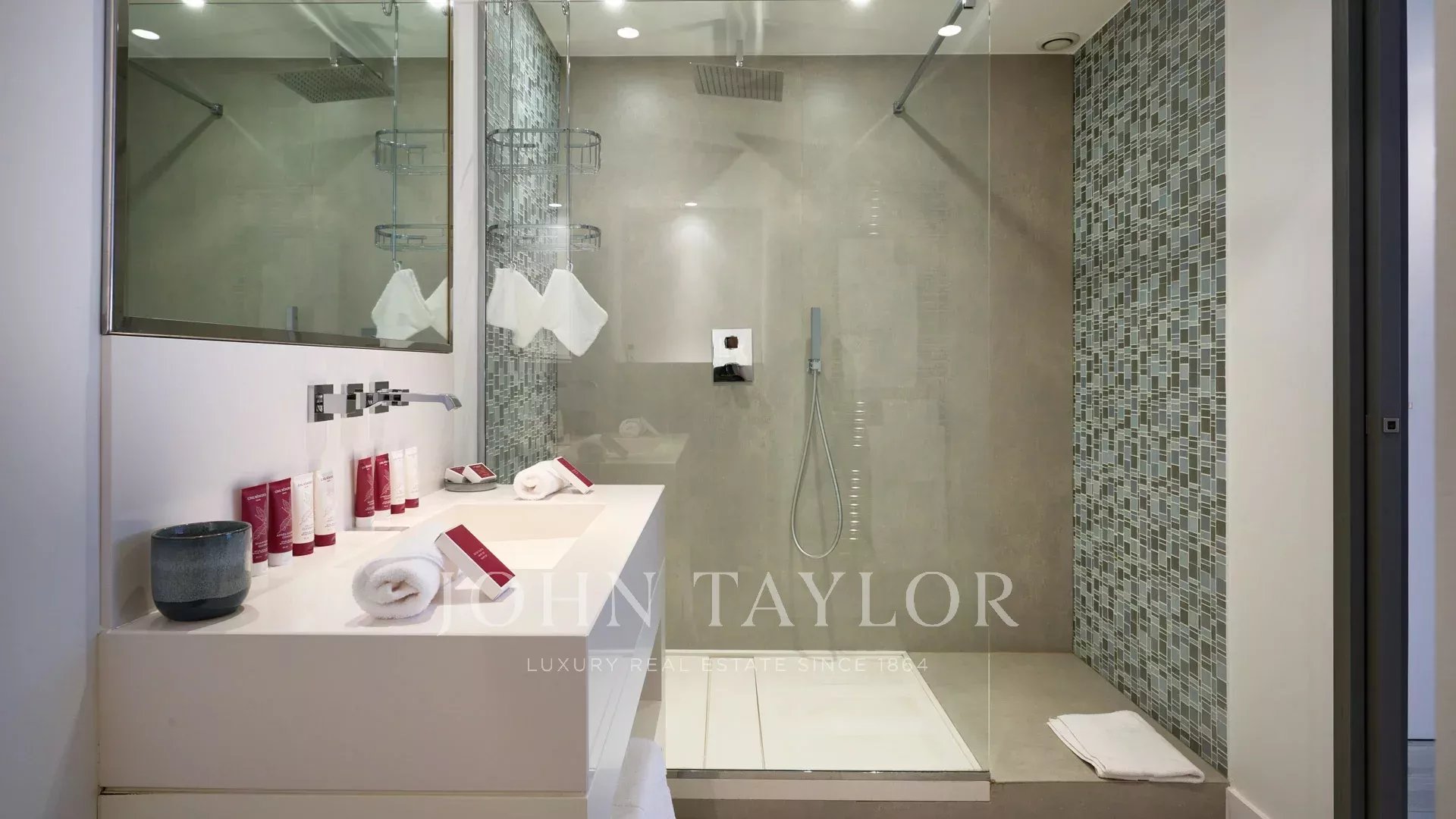 Inside, the apartment features five bedrooms, each with its own en-suite bathroom, ensuring privacy and convenience for all guests.