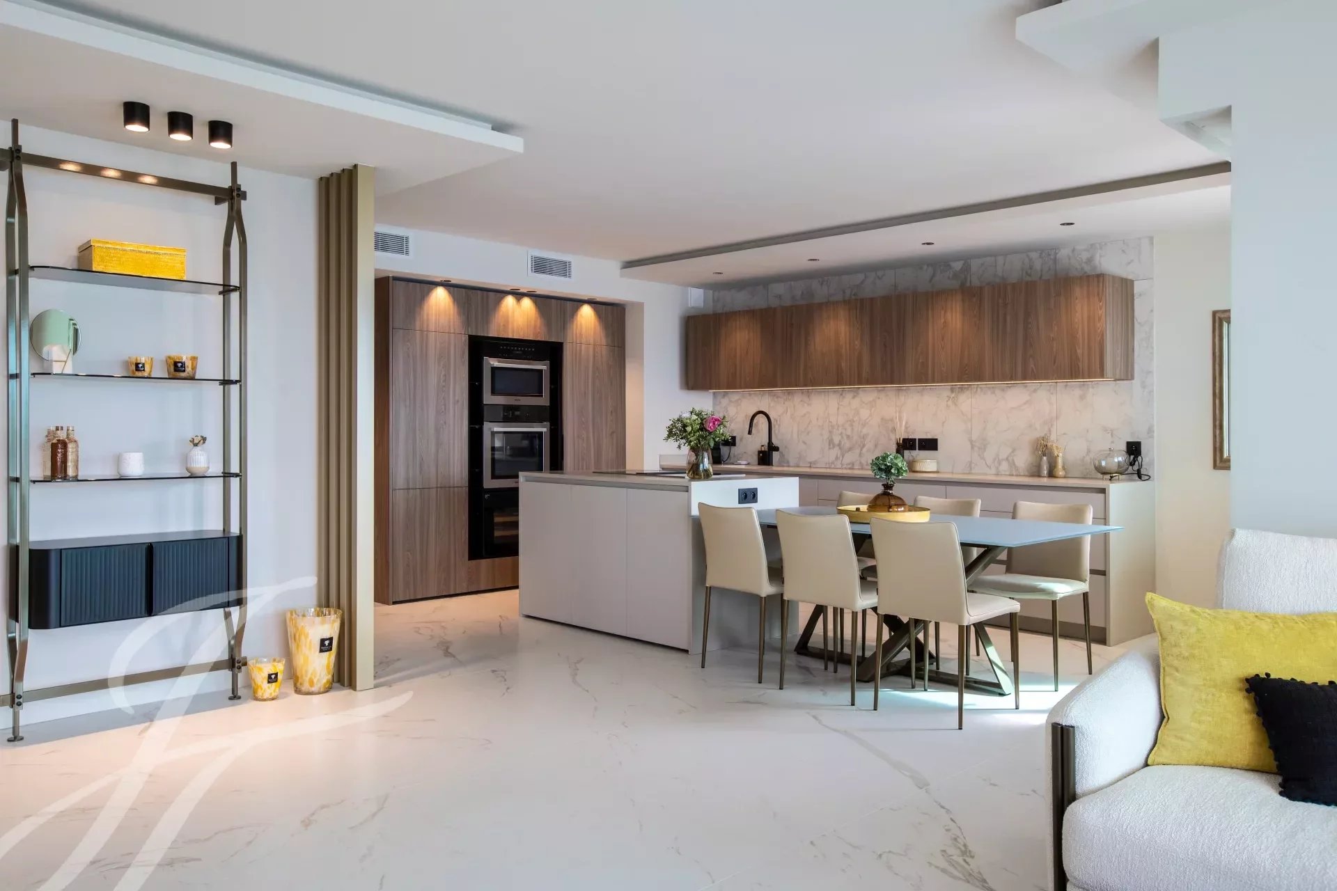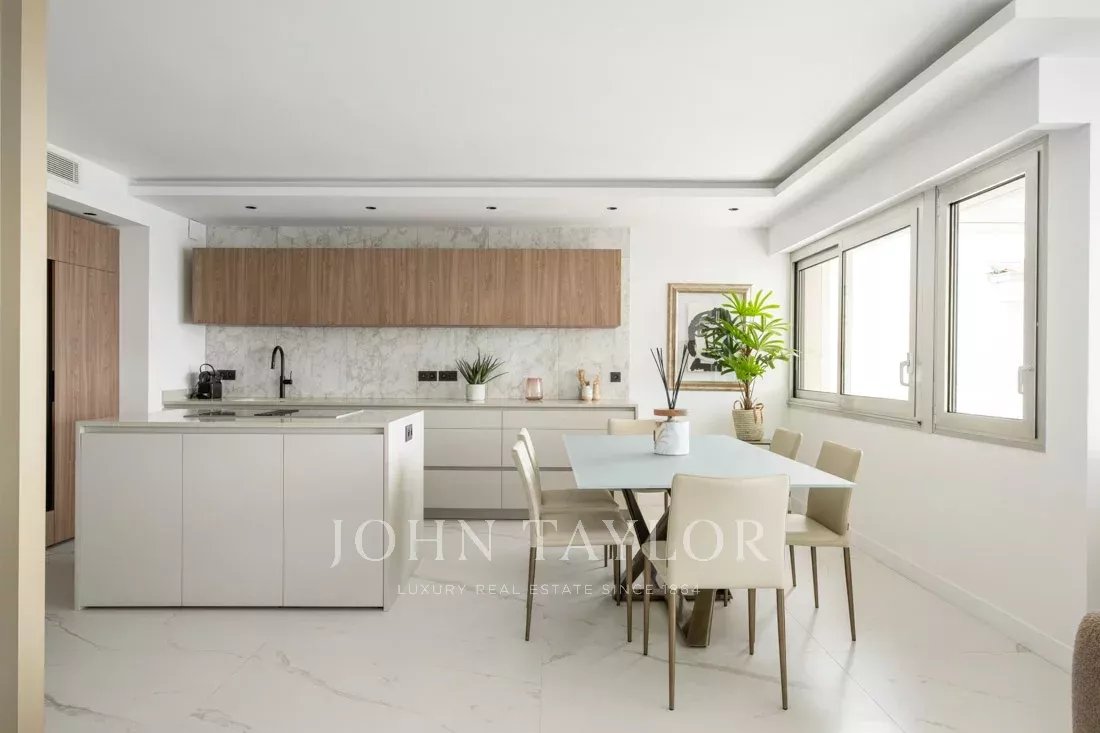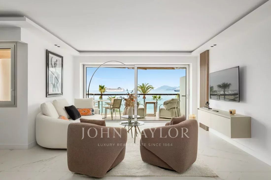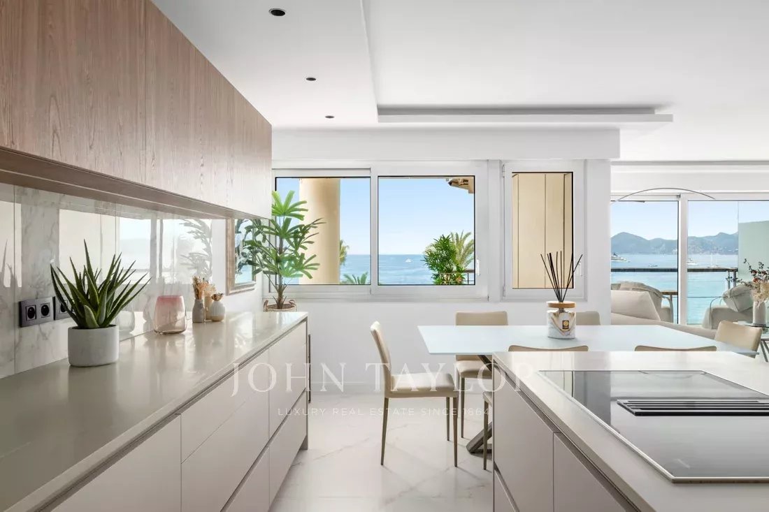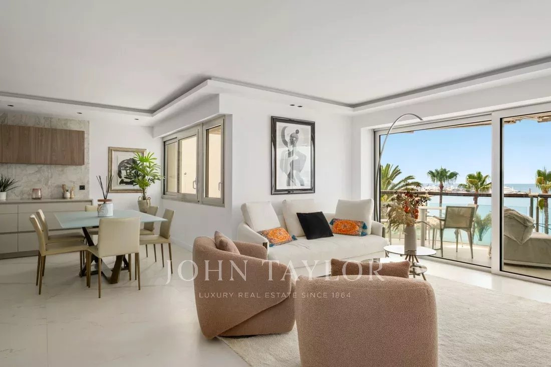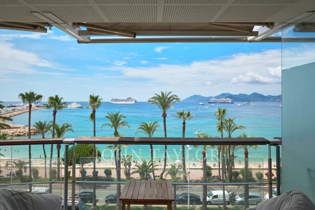 Located on the 6th floor of one of the Croisette’s most prestigious residences, this stunning two-bedroom apartment boasts a breathtaking panoramic sea view over the Bay of Cannes.