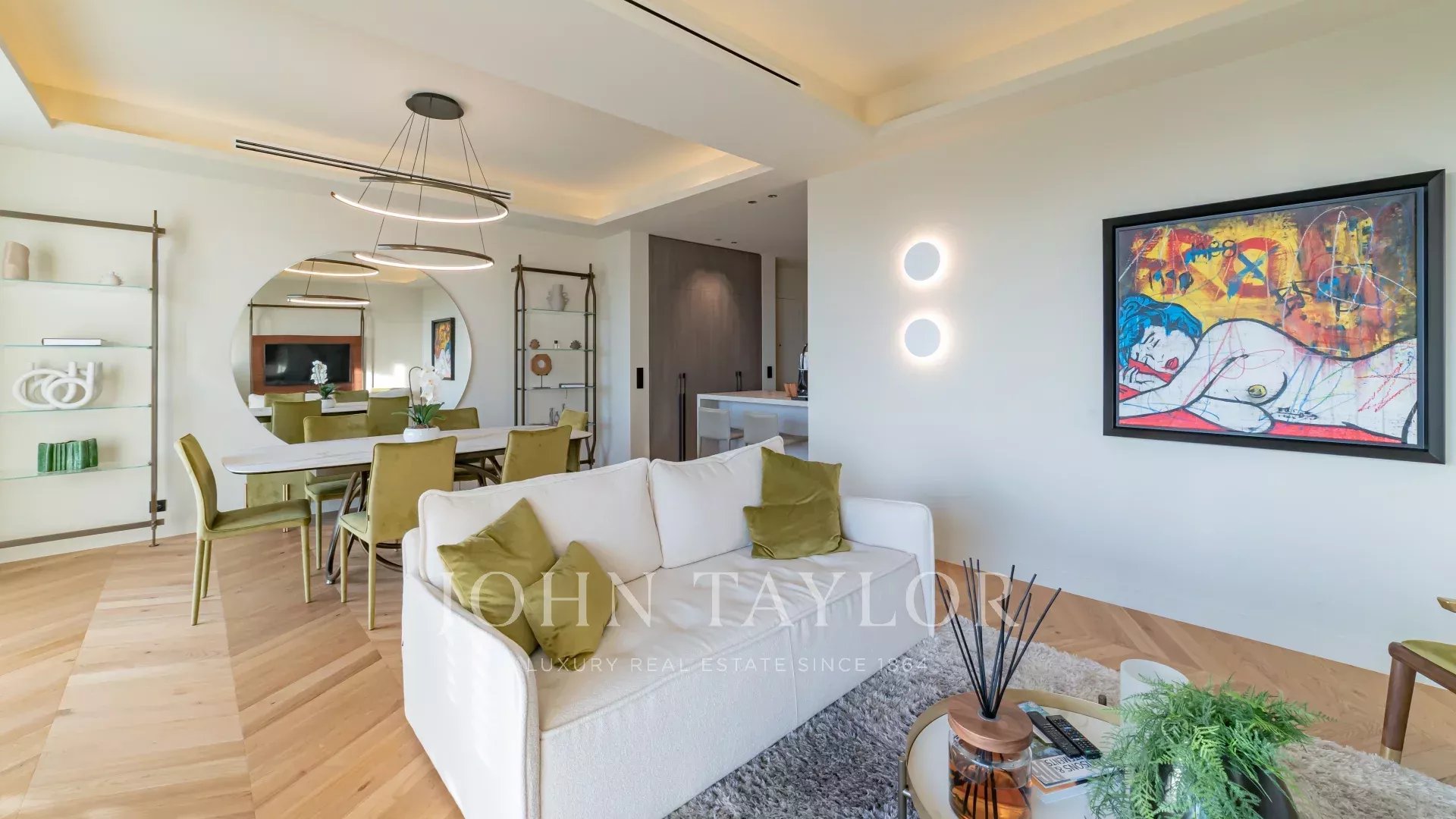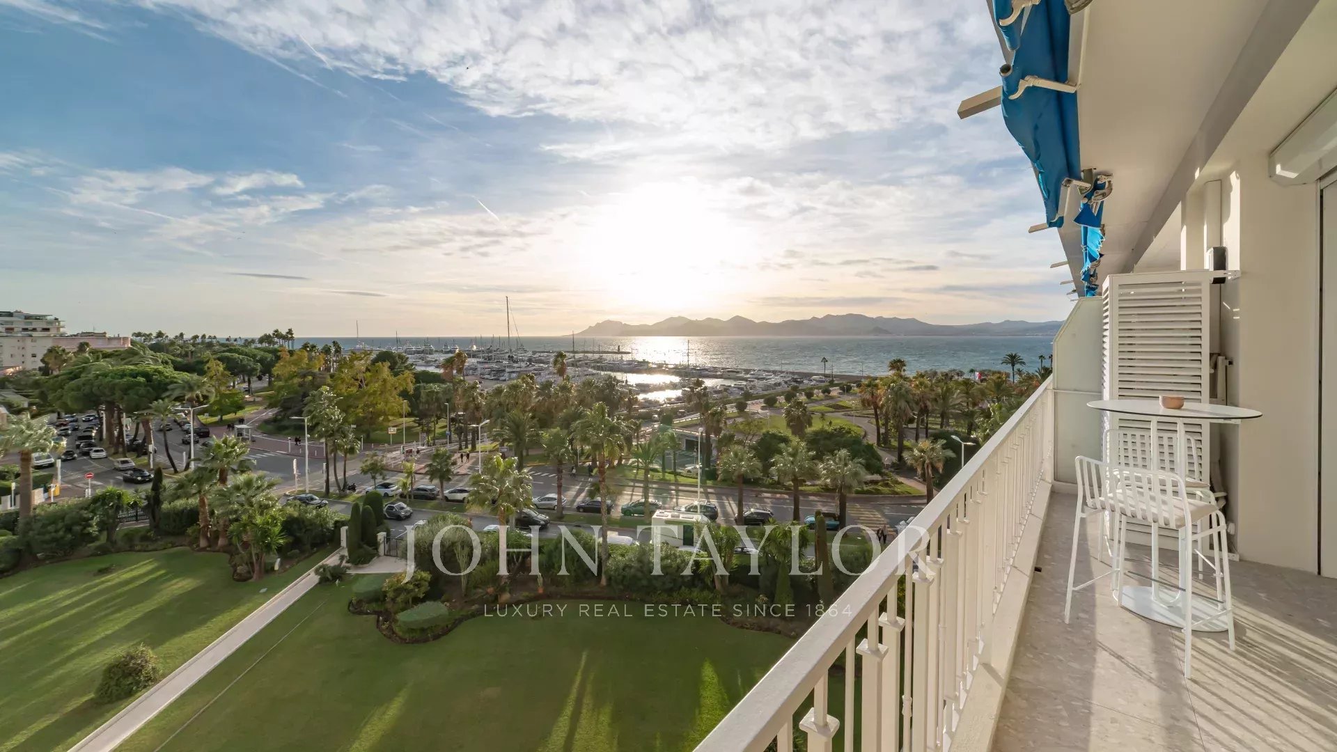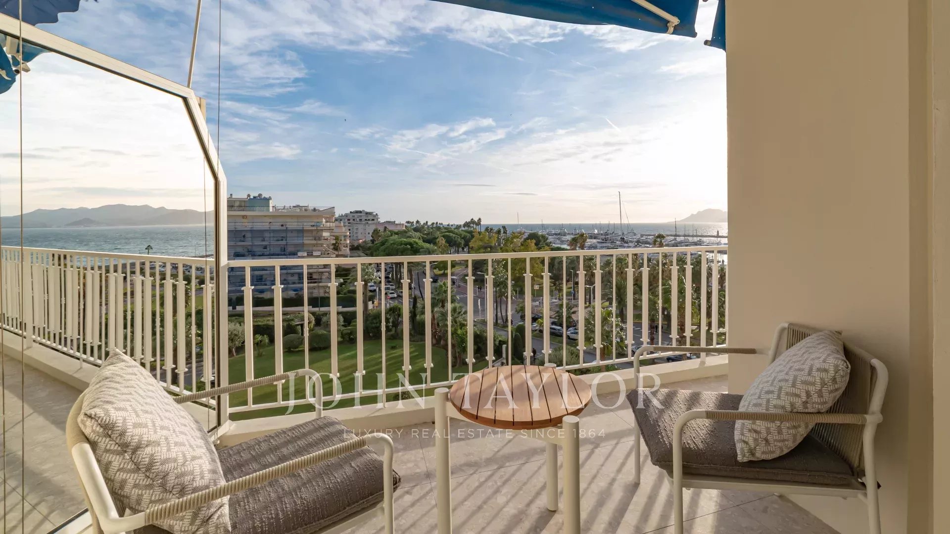 Located on a high floor of a luxury residence on the Croisette, this apartment offers a beautiful view of the sea, the Port Canto and the Esterel massif.