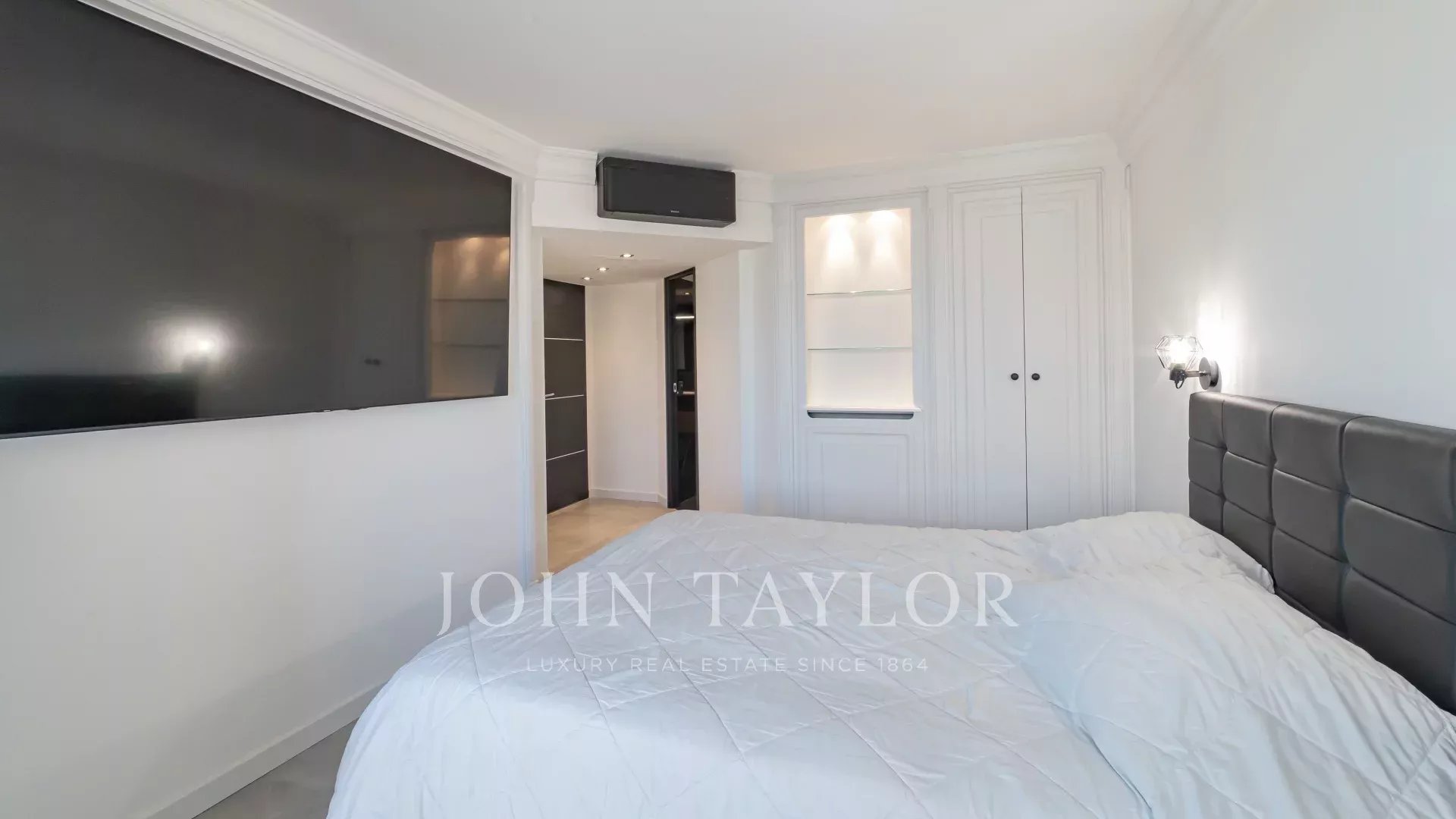 Located on the penultimate floor of a prestigious residence on the famous Croisette, this 107 sqm apartment offers a magnificent panoramic sea view over the bay of Cannes, its beaches, the Palais des Festivals and the Estérel.