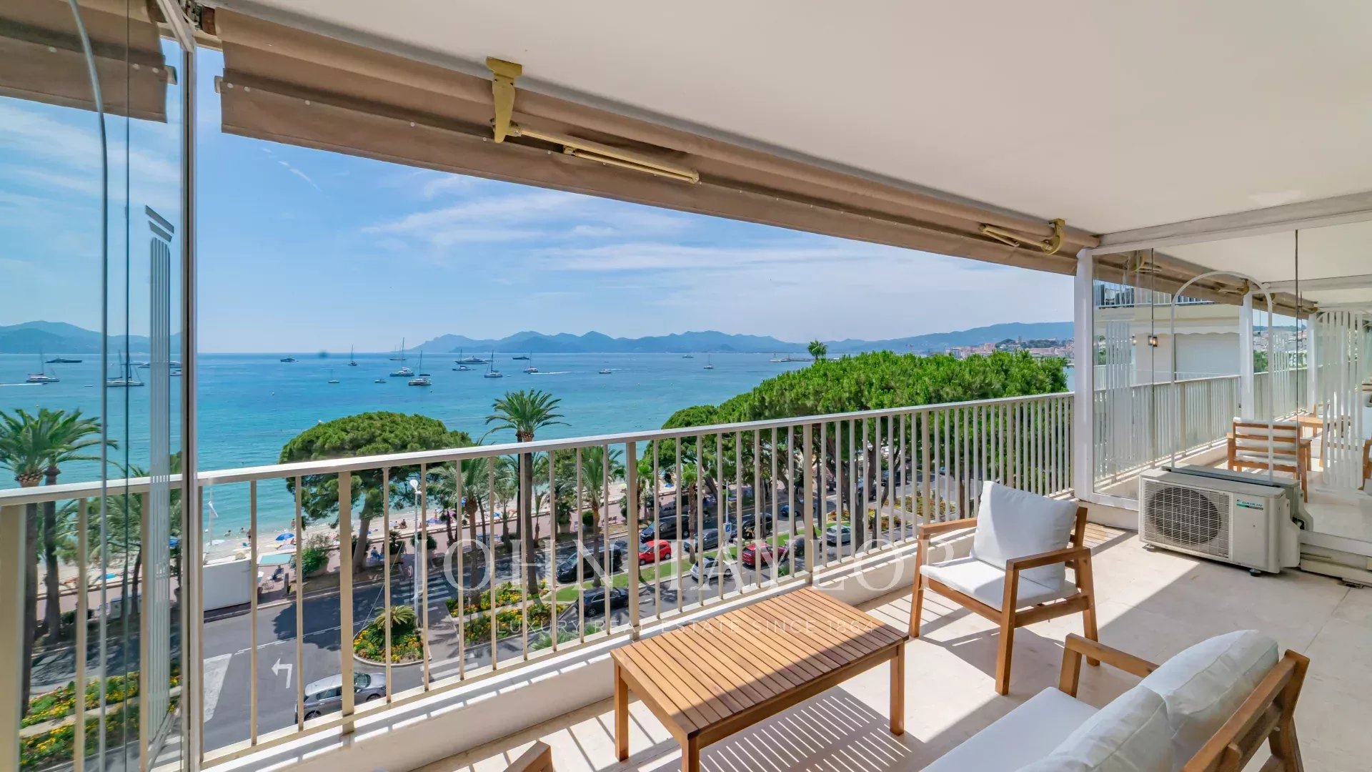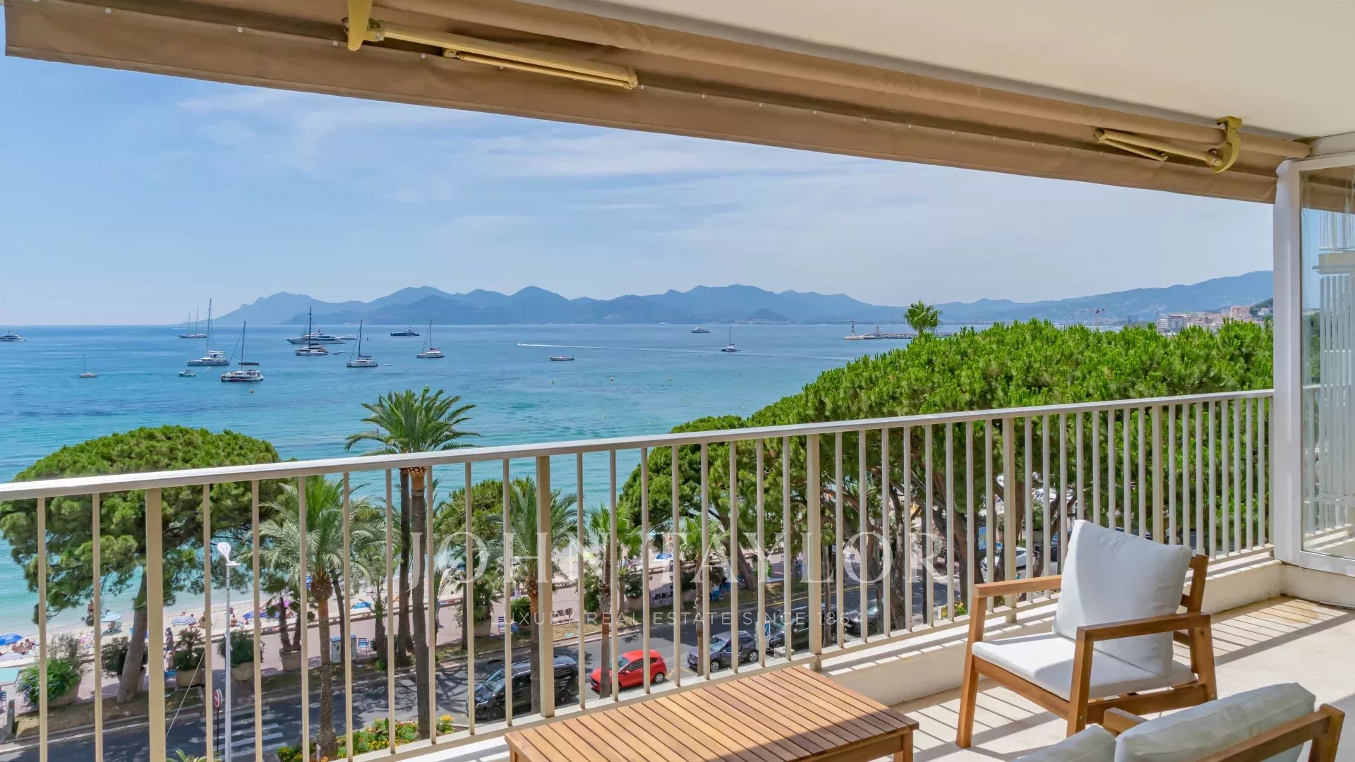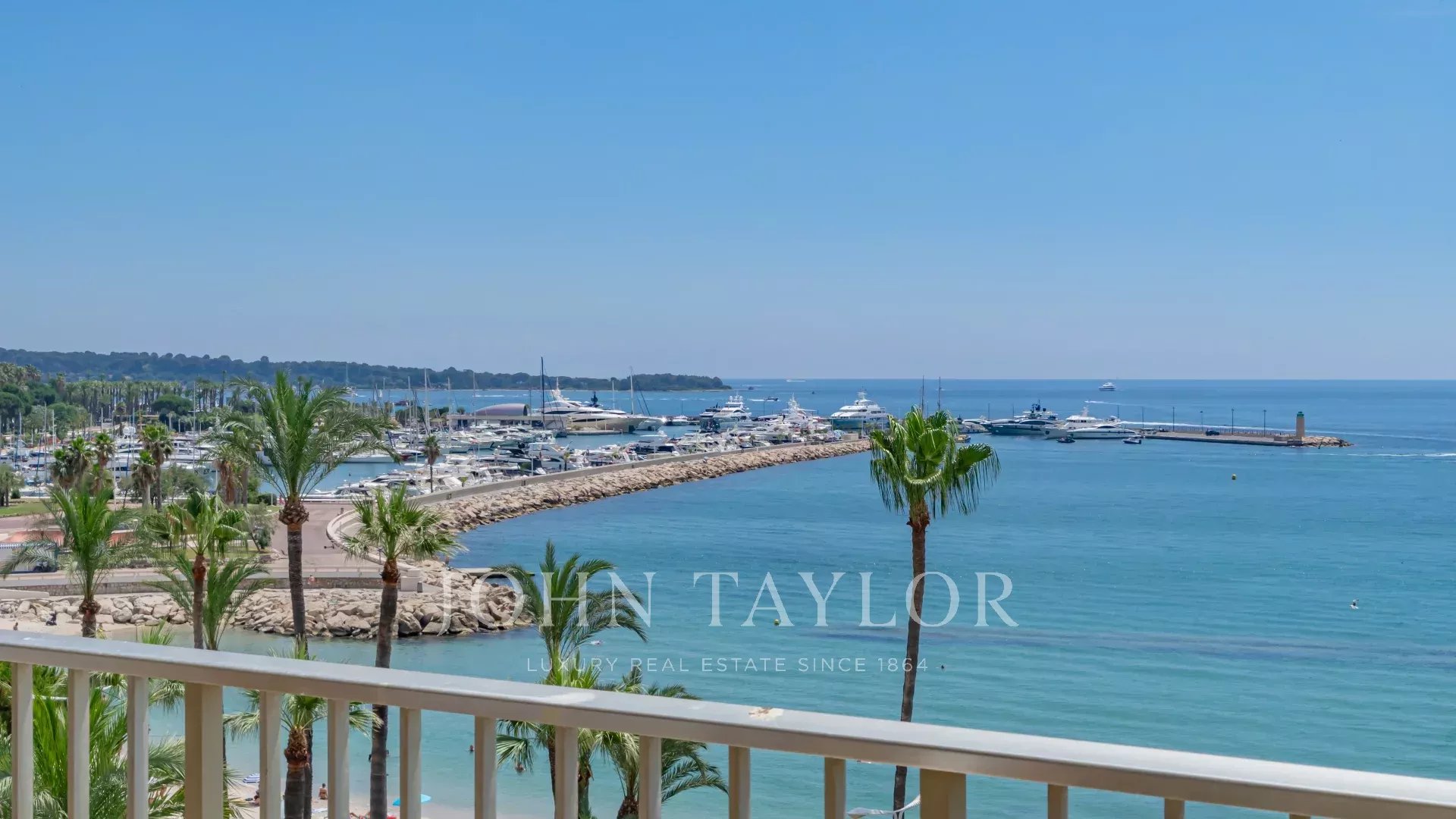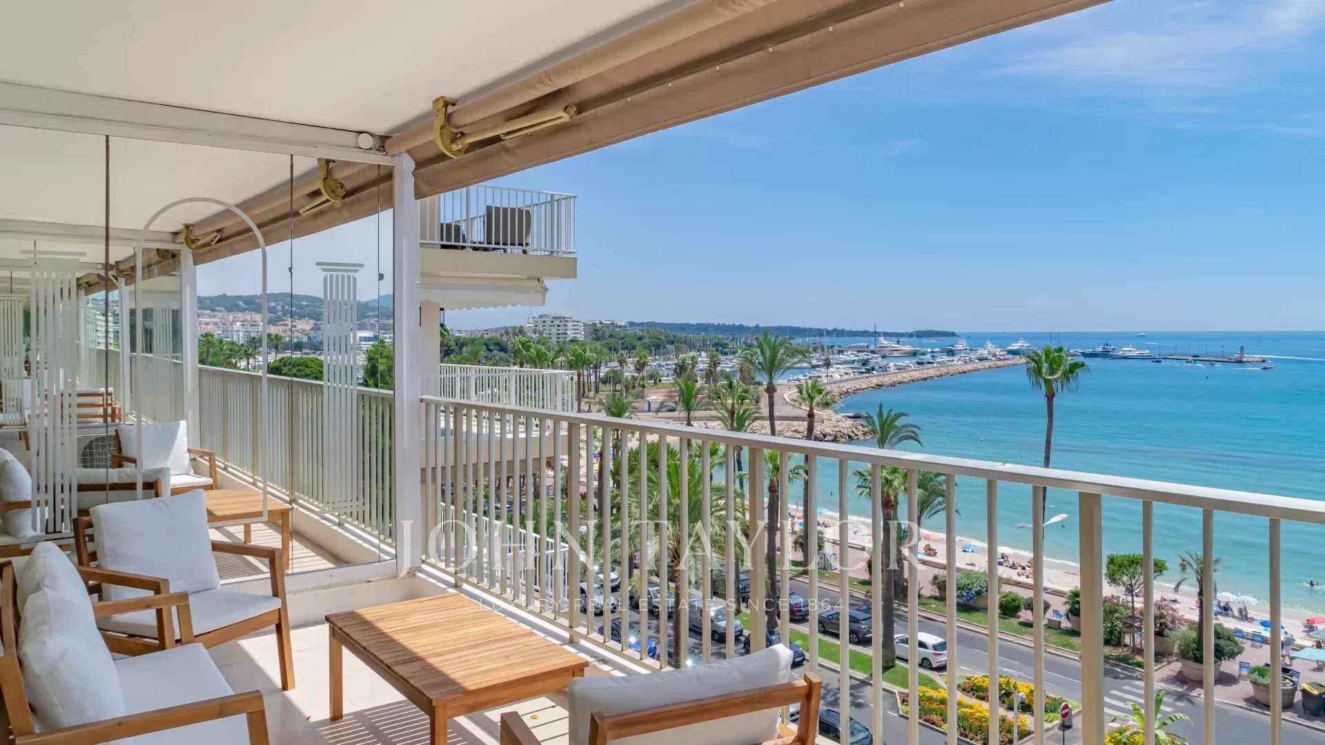 In the heart of the Croisette, in a high-end residence with concierge service, this 6th-floor apartment offers a panoramic sea view over the Bay of Cannes.