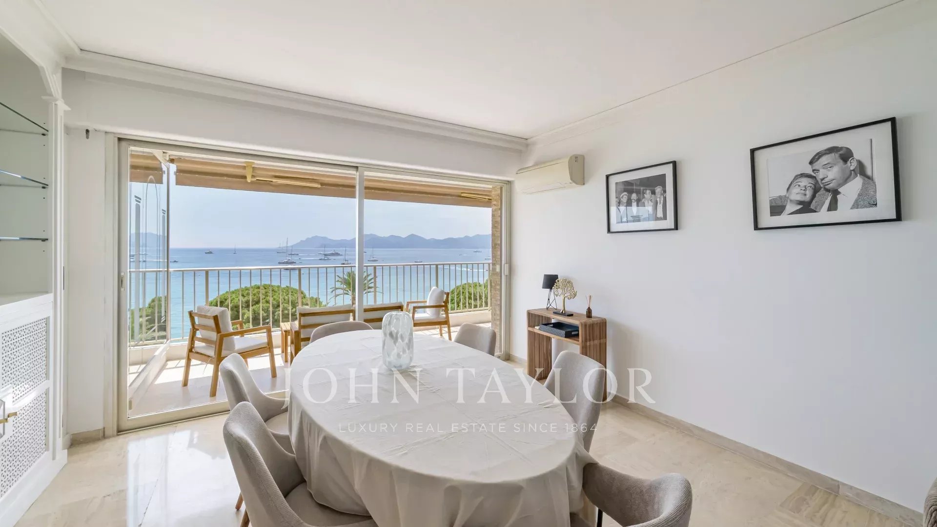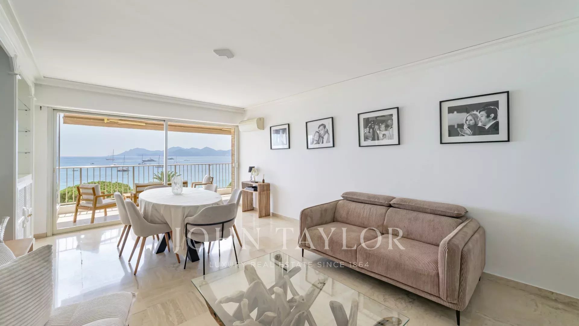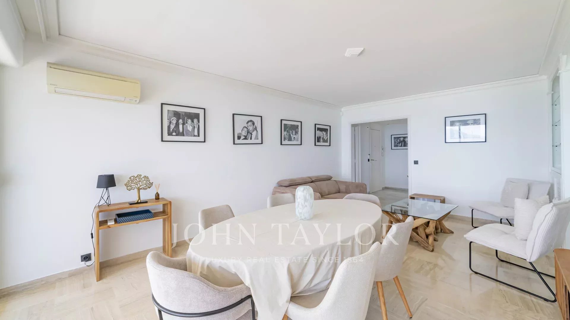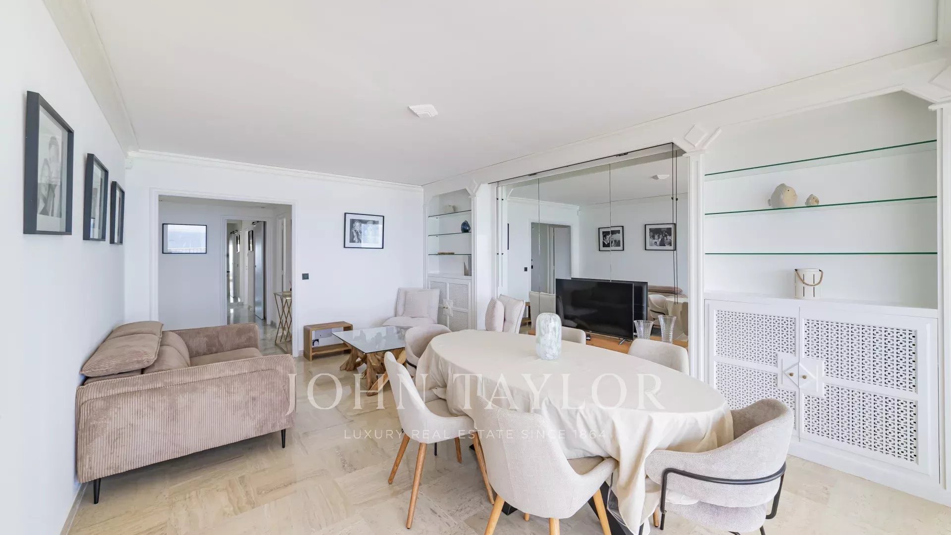 In the heart of the Croisette, in a high-end residence with concierge service, this 6th-floor apartment offers a panoramic sea view over the Bay of Cannes.