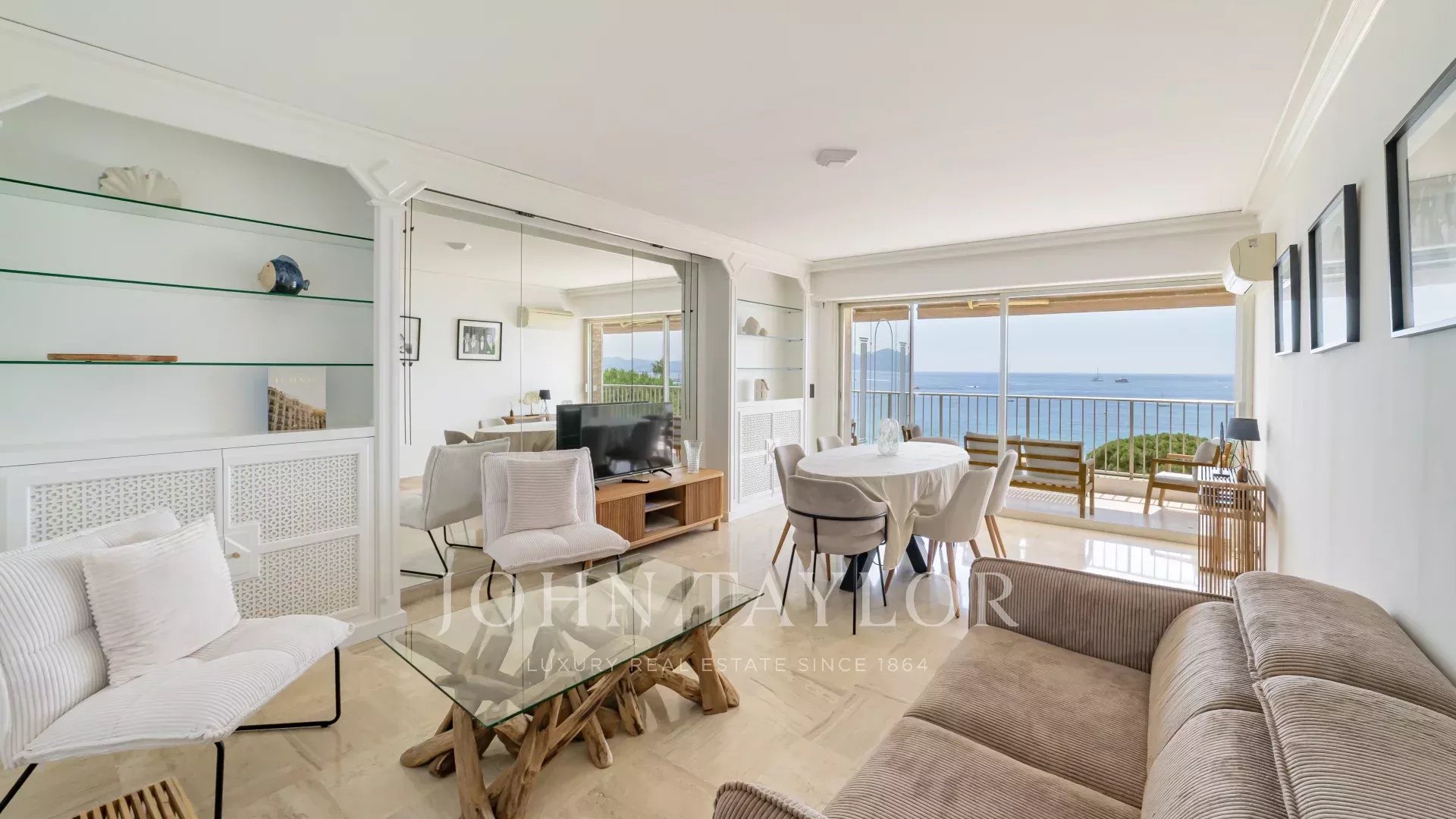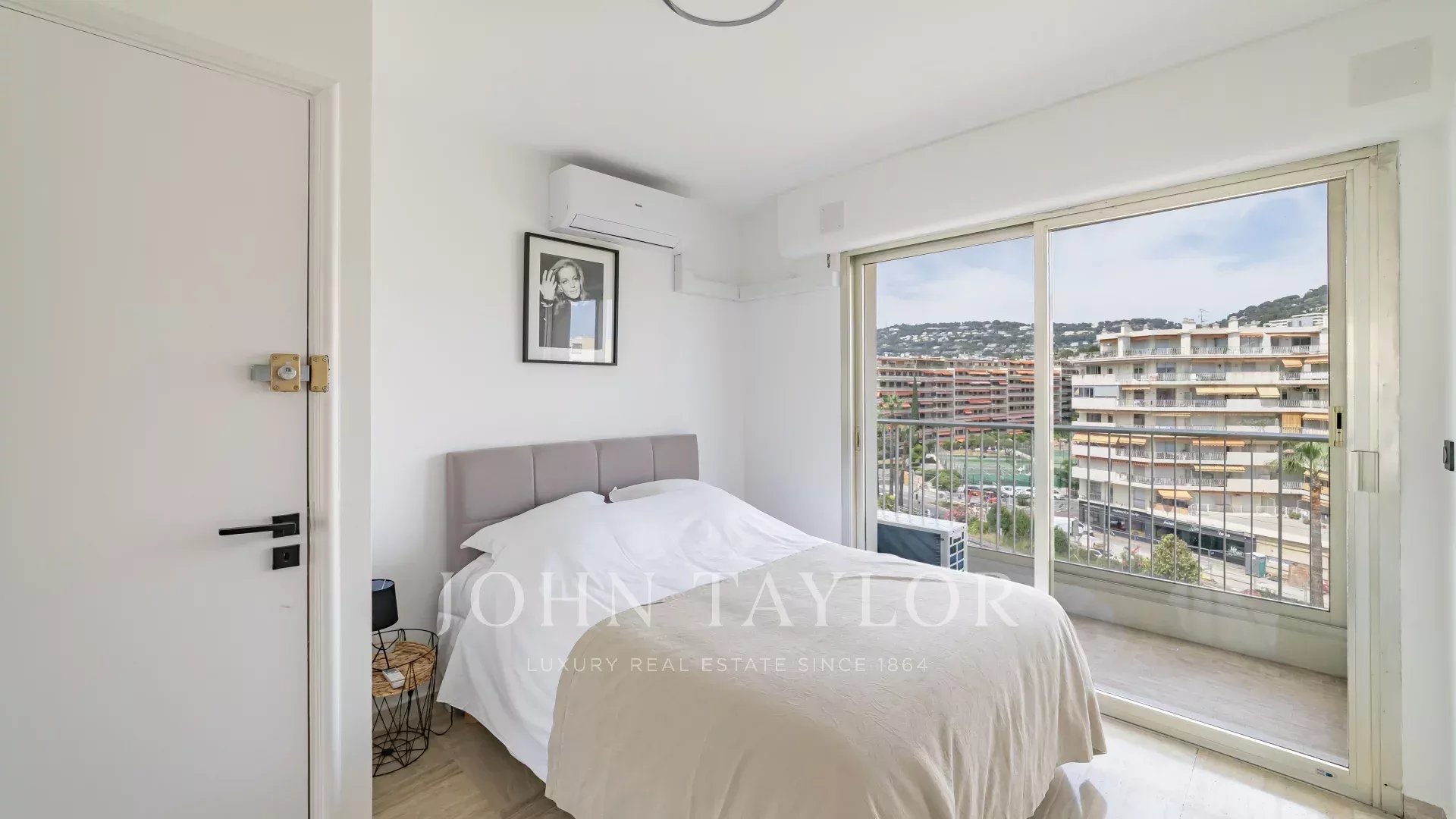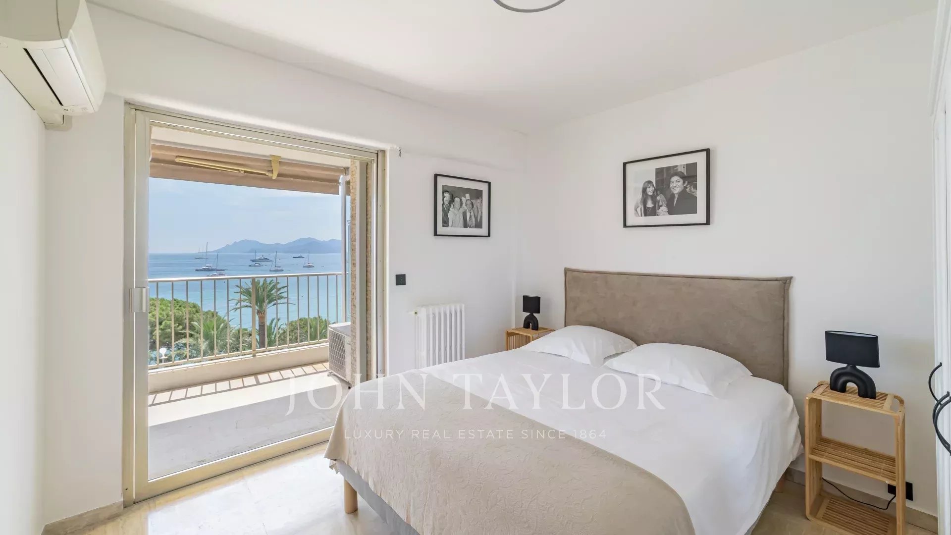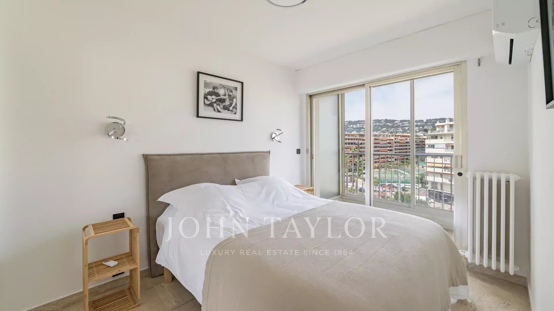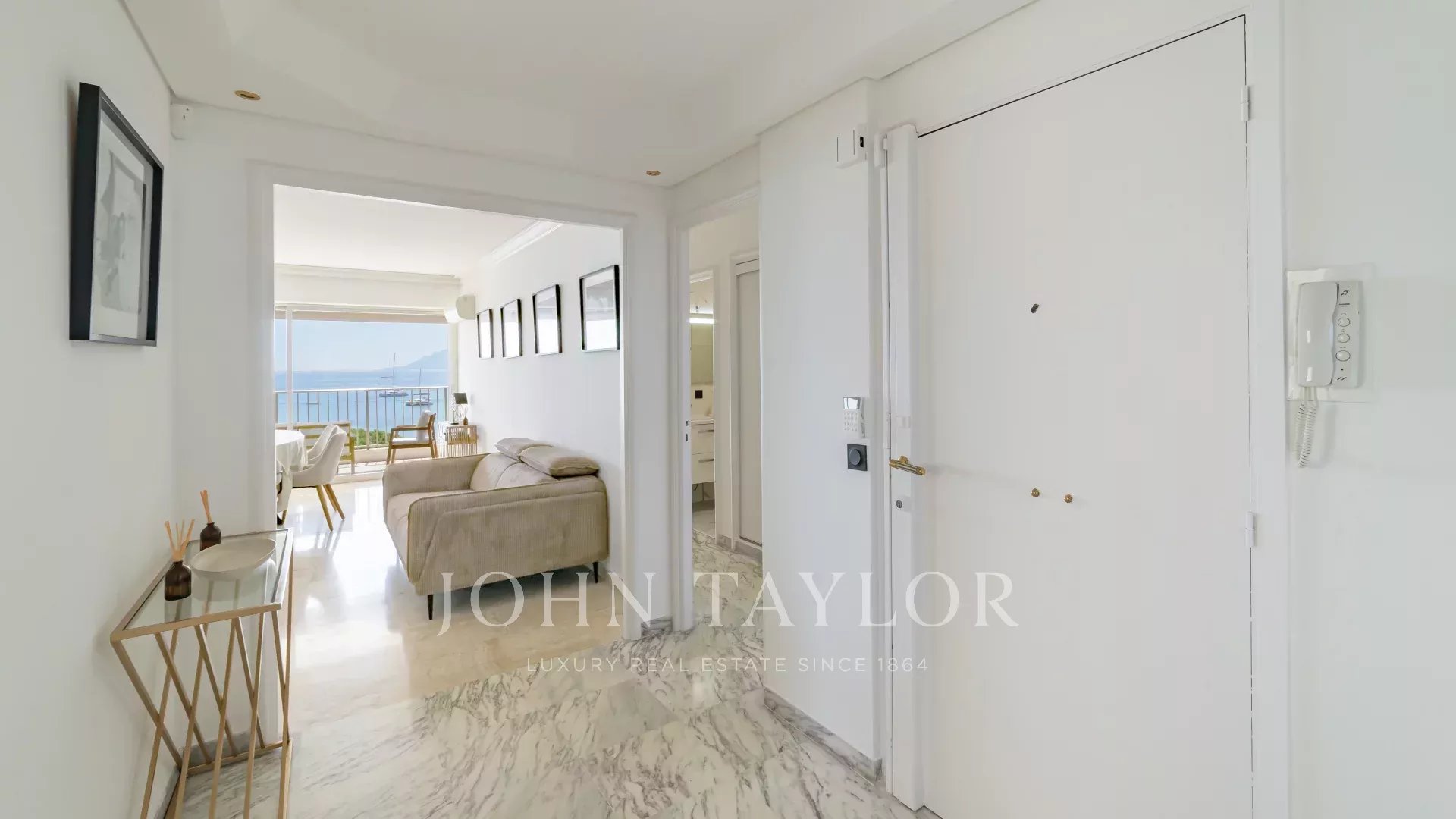 In the heart of the Croisette, in a high-end residence with concierge service, this 6th-floor apartment offers a panoramic sea view over the Bay of Cannes.