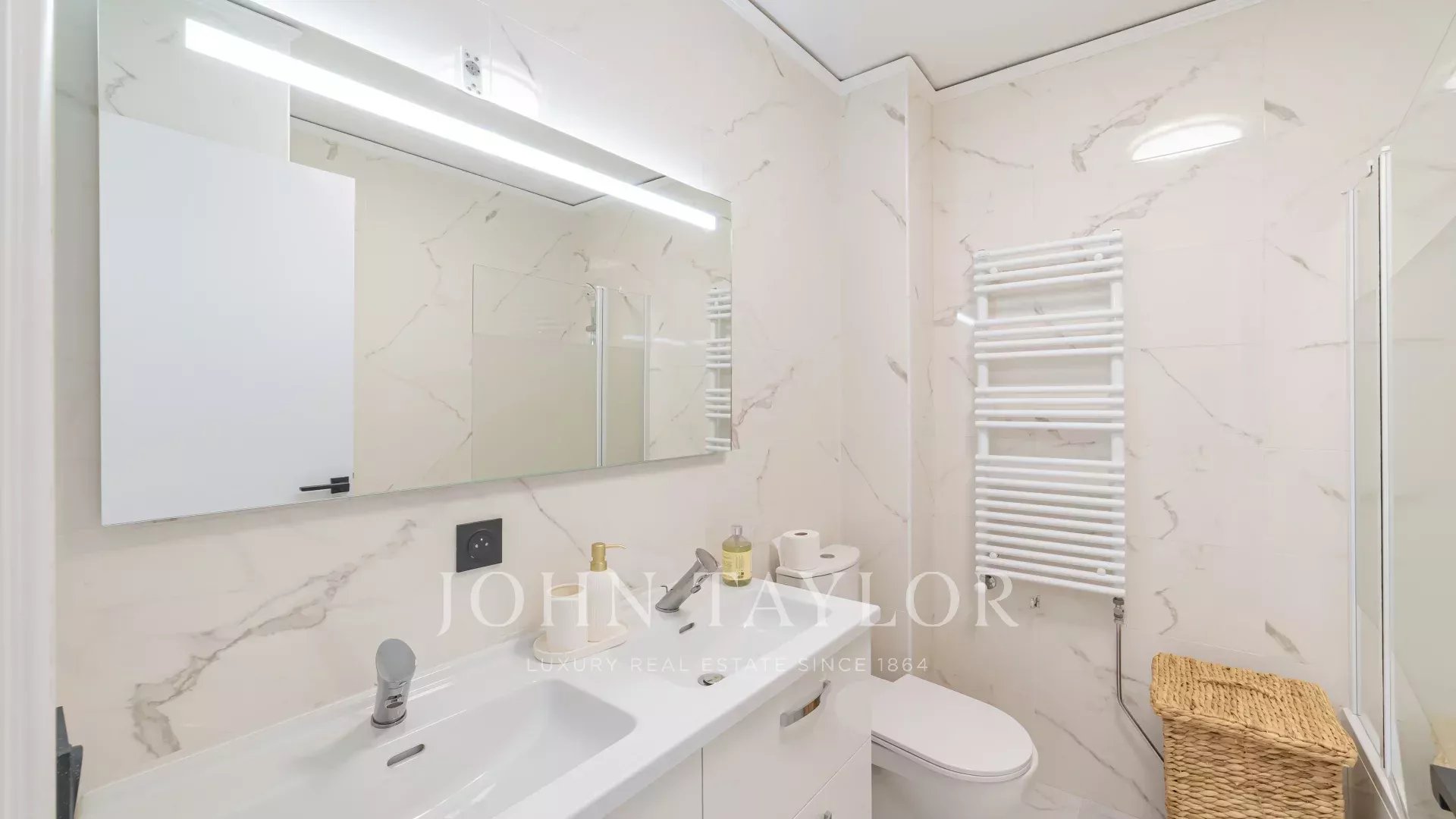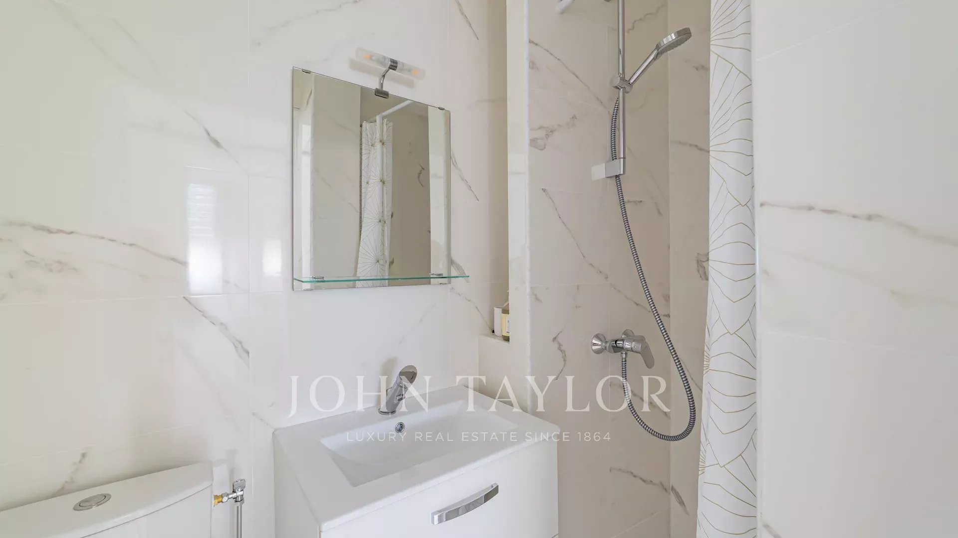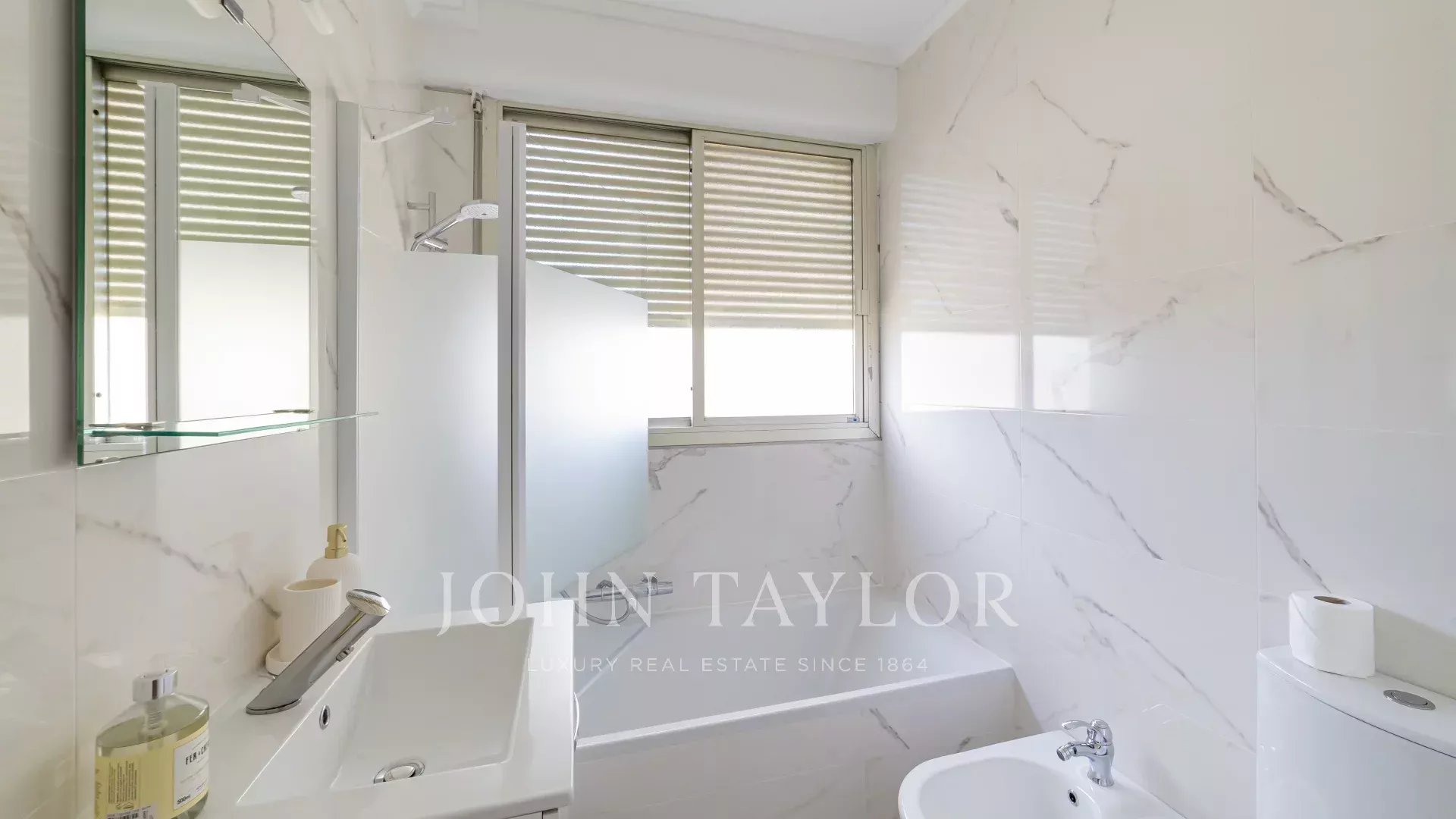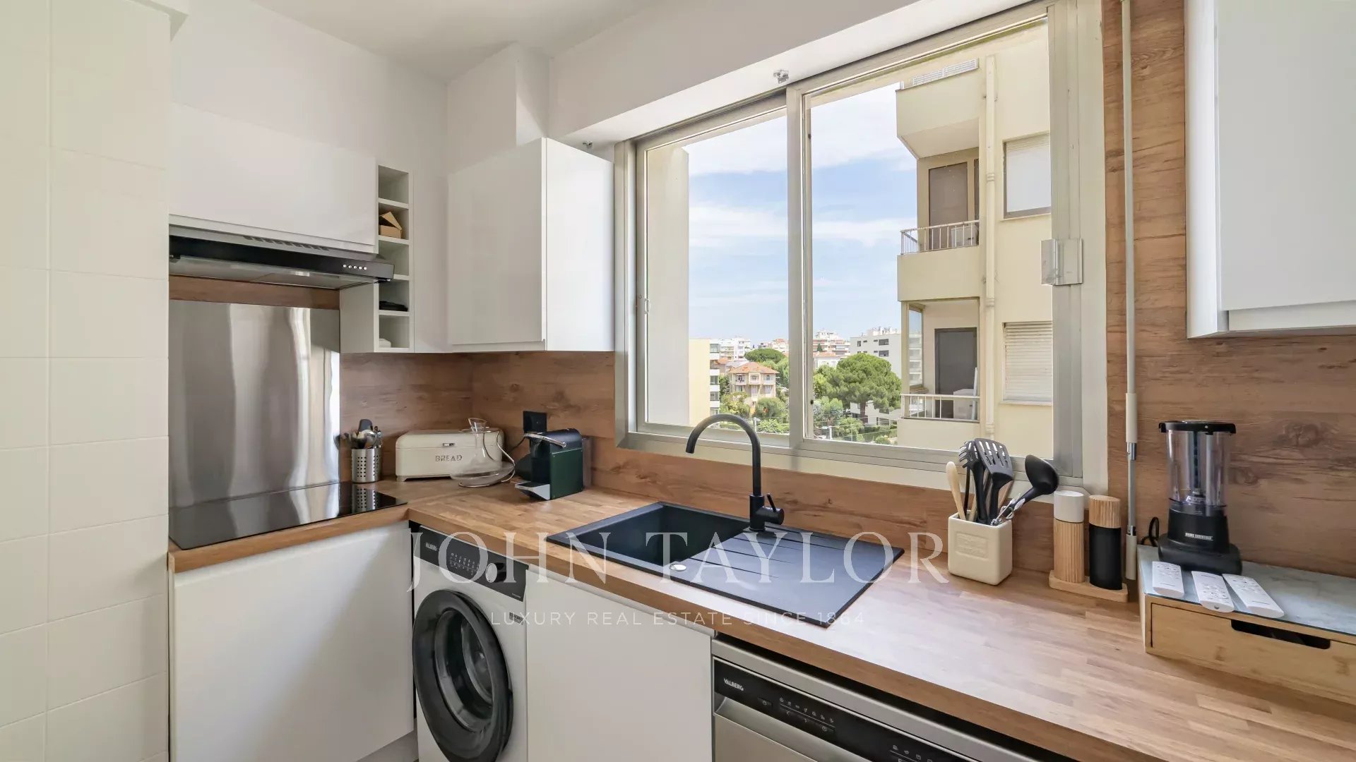 In the heart of the Croisette, in a high-end residence with concierge service, this 6th-floor apartment offers a panoramic sea view over the Bay of Cannes.