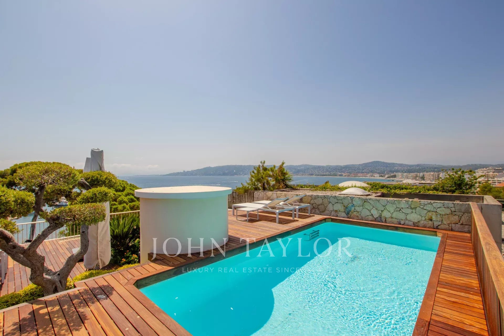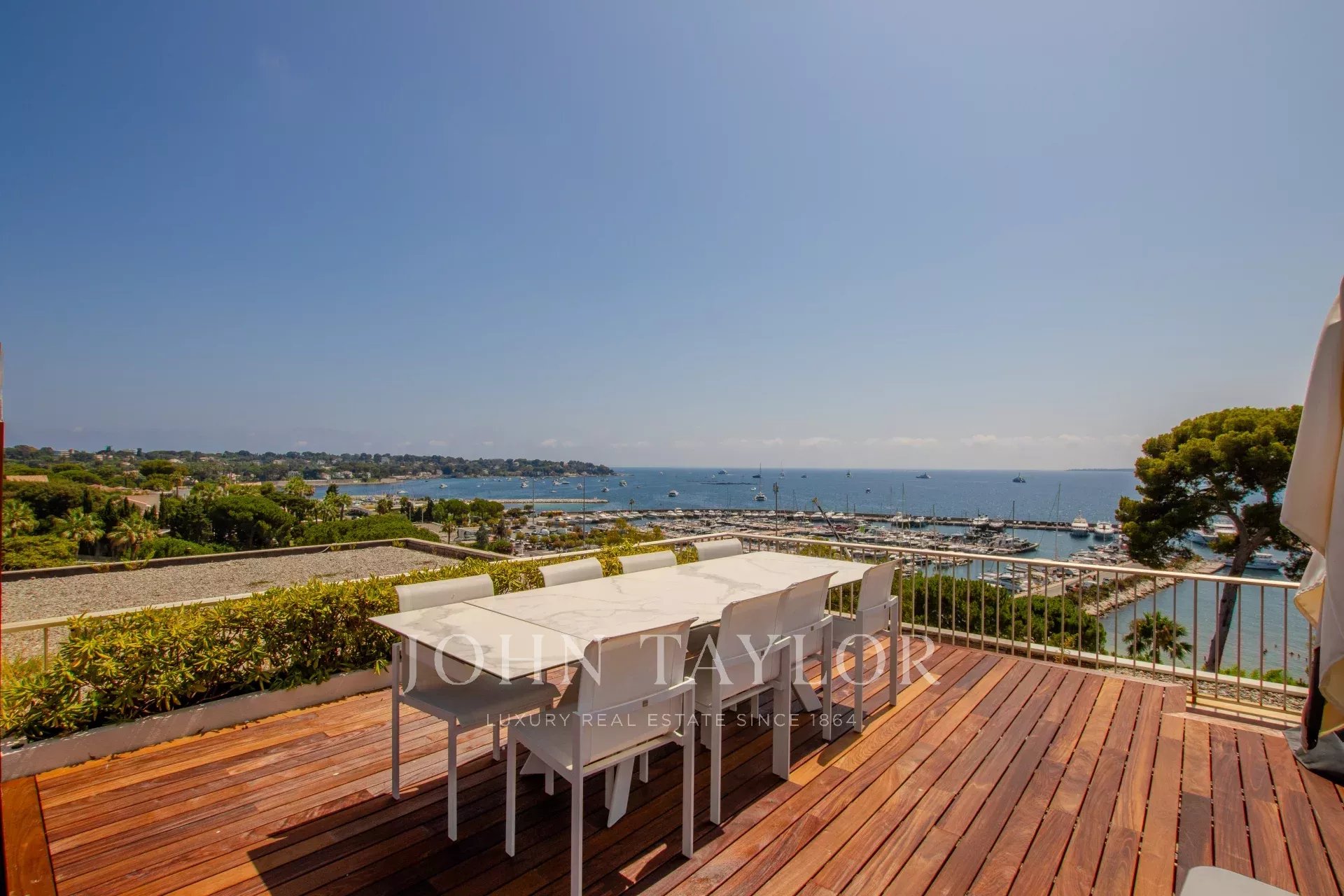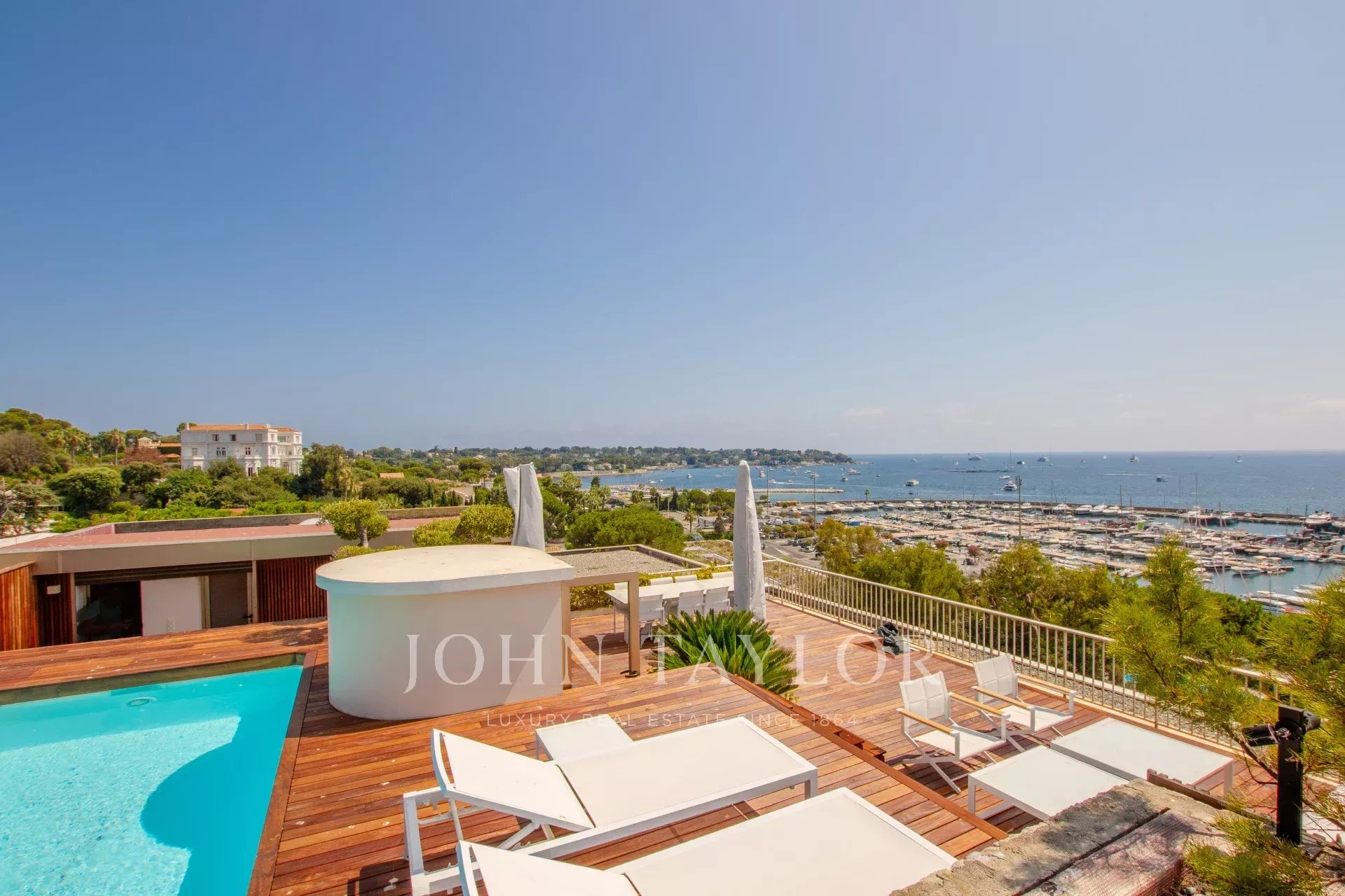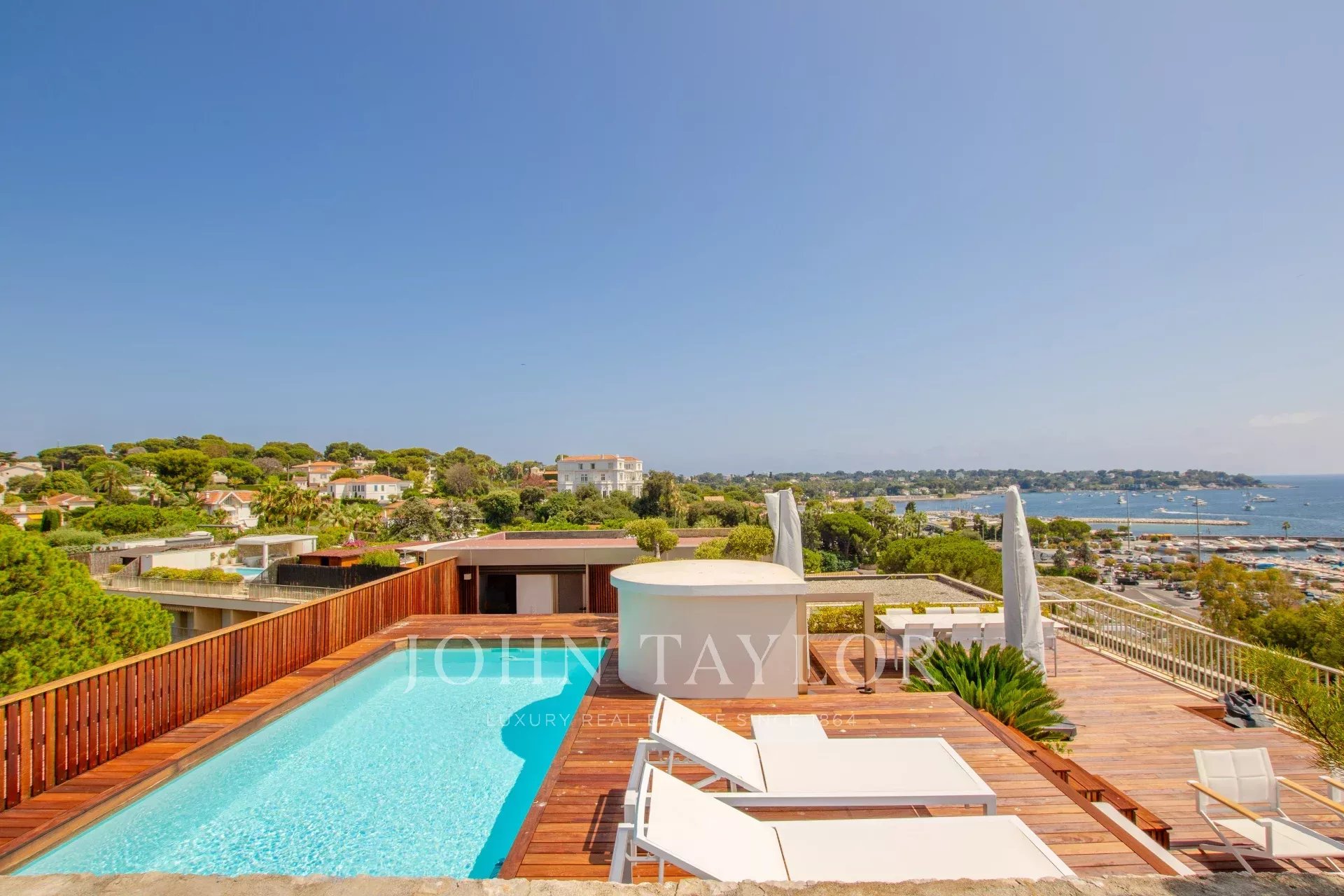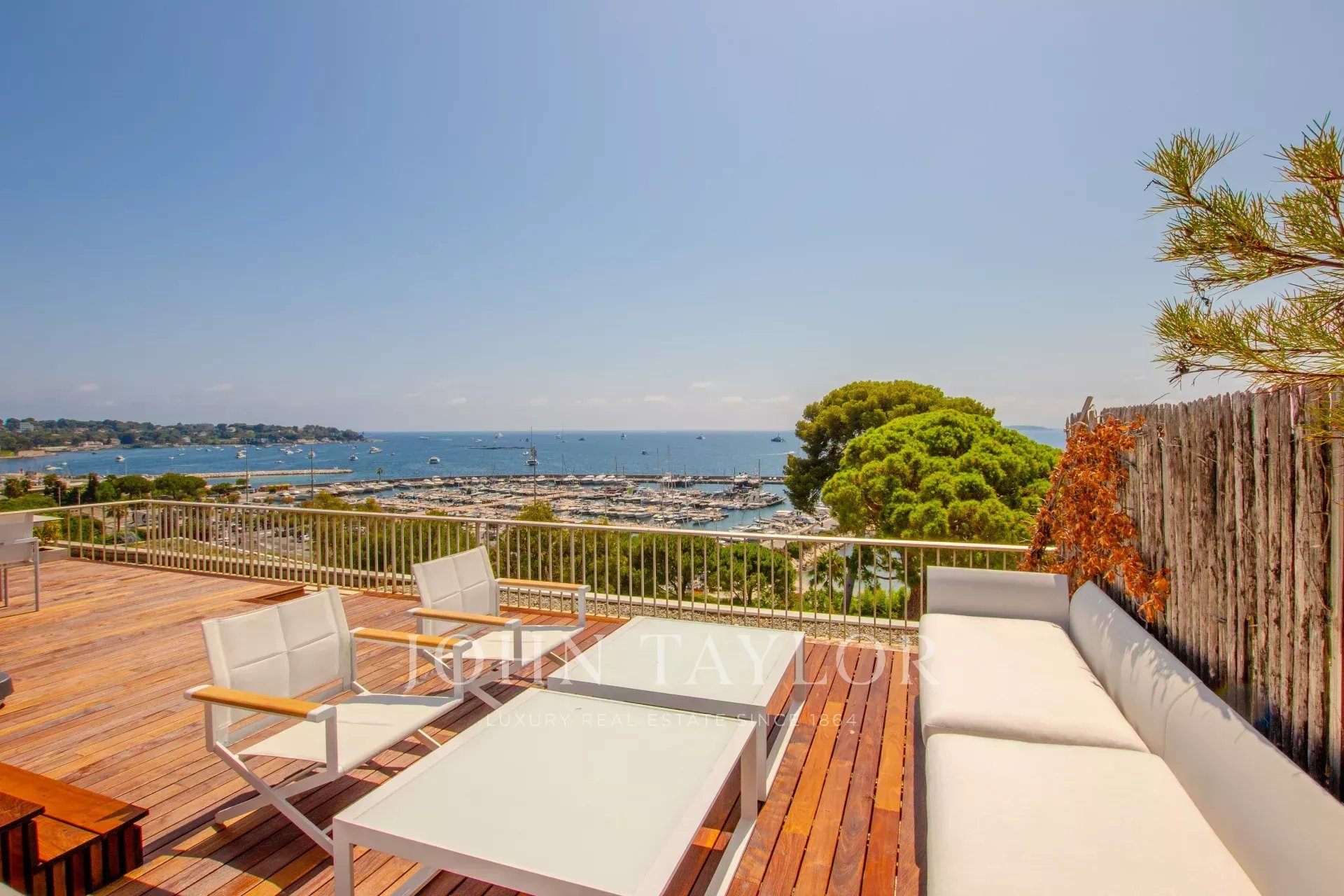 Unique, 114 sqm rooftop villa and various terraces with panoramic sea views over the Bay of Juan les Pins, Cap d'Antibes and Lérins Islands.