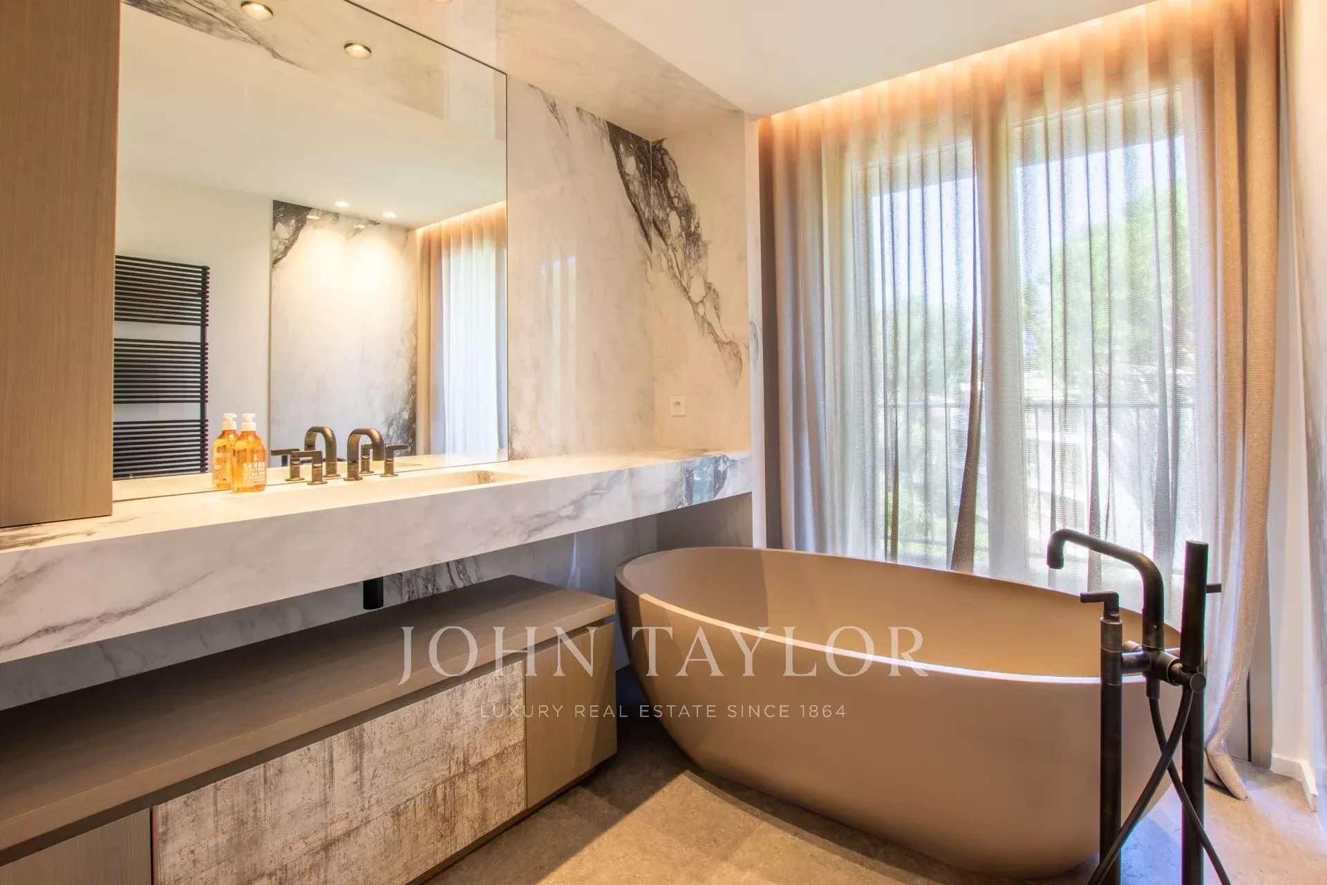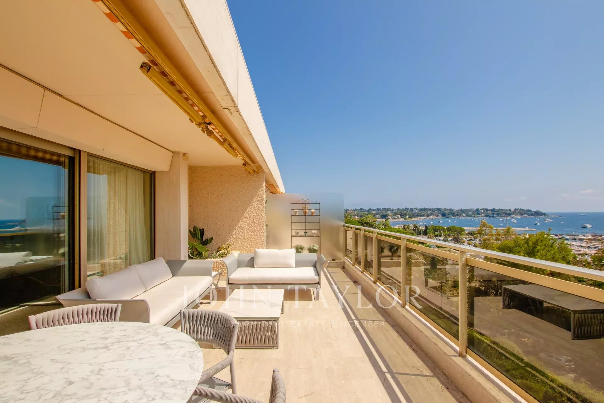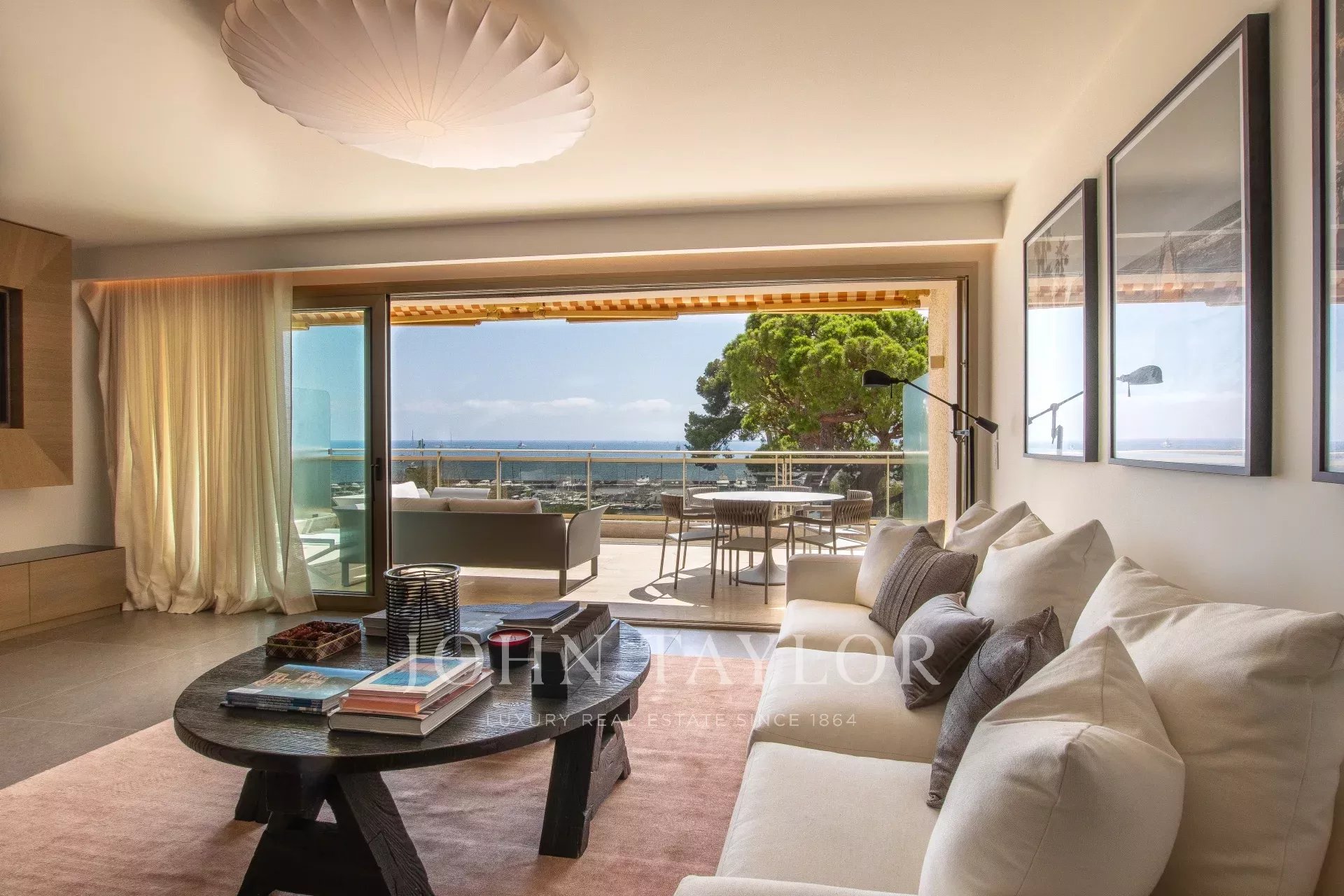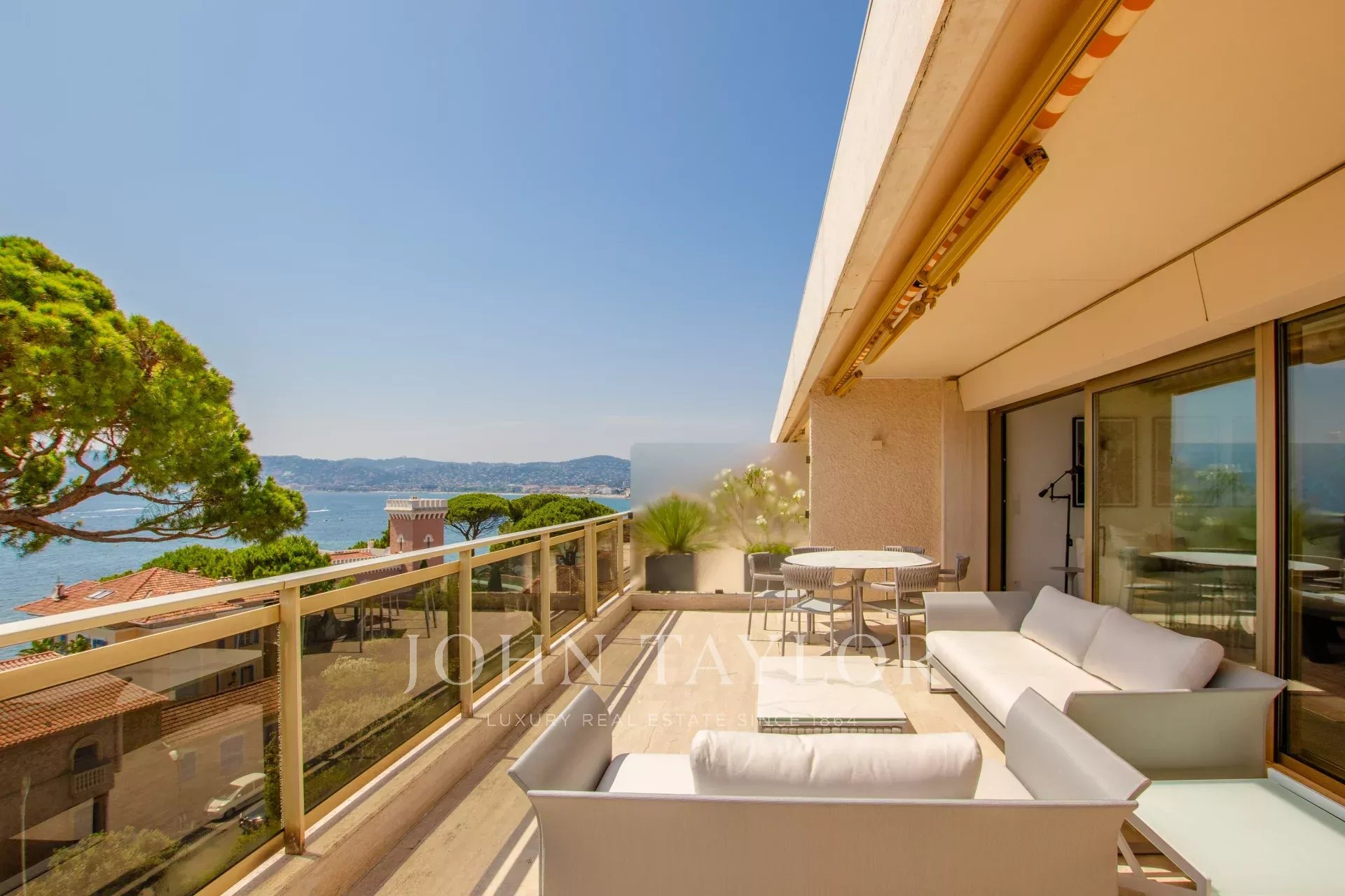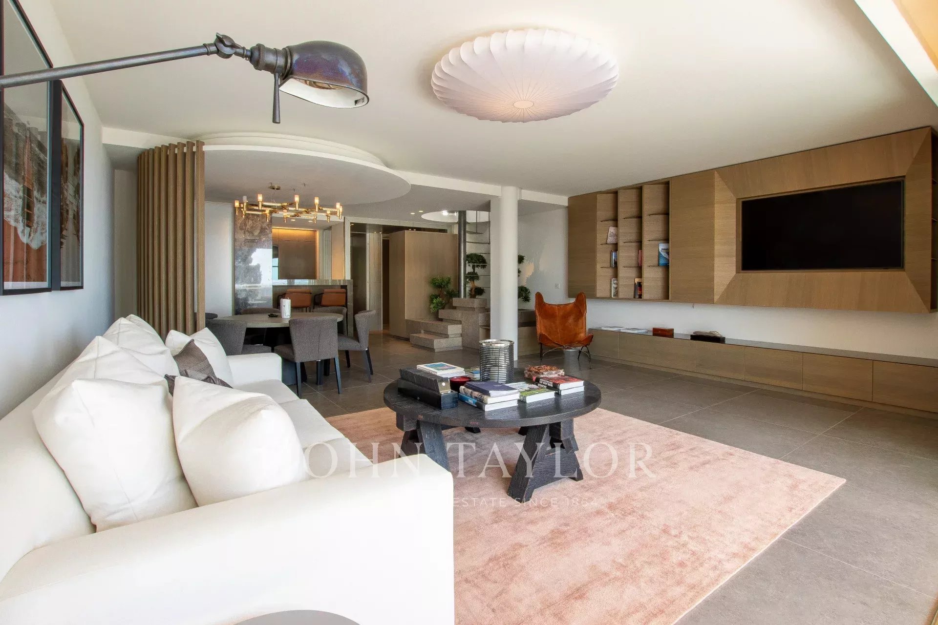 Unique, 114 sqm rooftop villa and various terraces with panoramic sea views over the Bay of Juan les Pins, Cap d'Antibes and Lérins Islands.