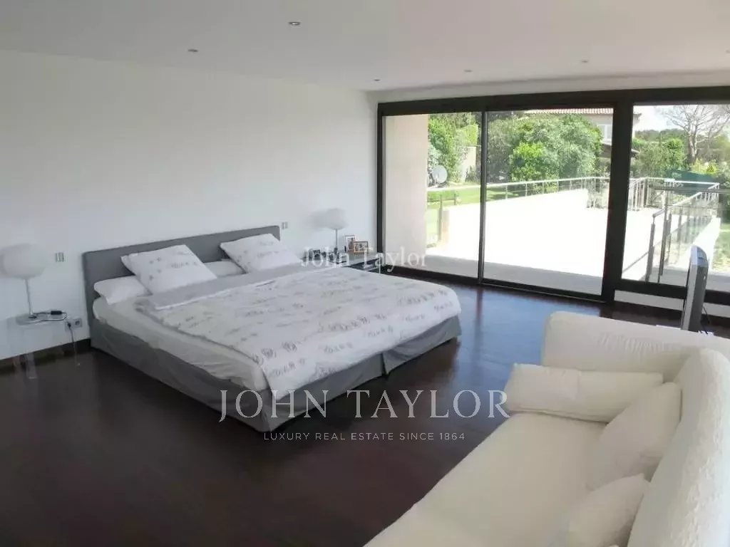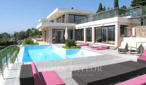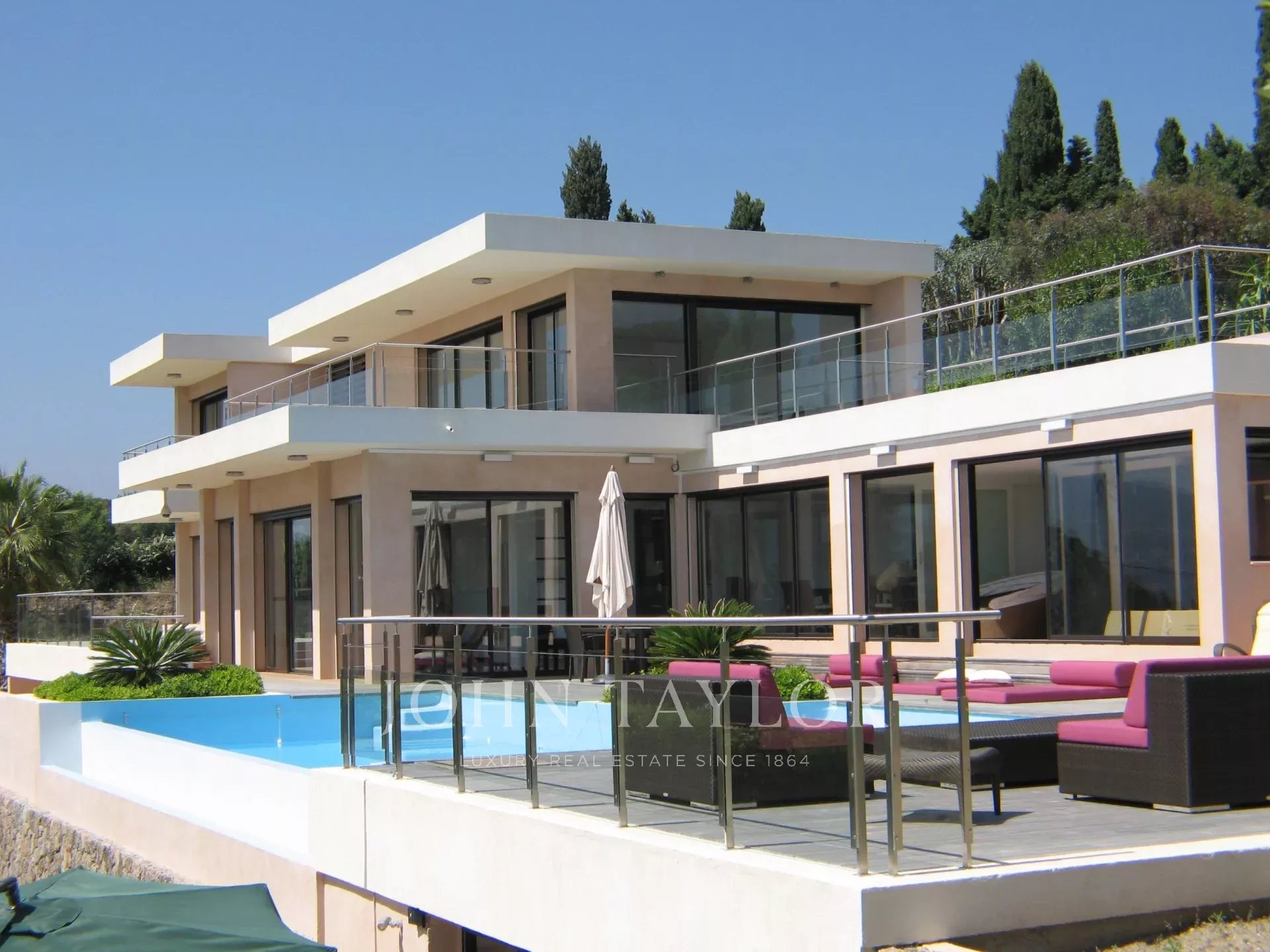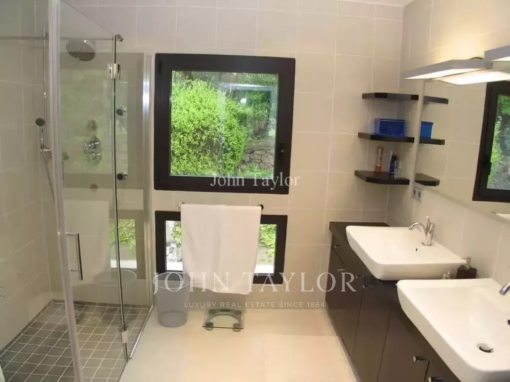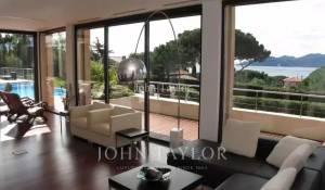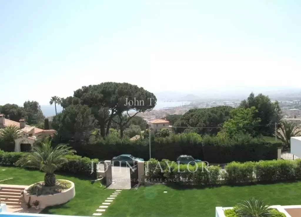 In a quiet and residential area on the top of a hill called "Croix des Gardes", attractive and contemporary air-conditioned villa with sea-view
