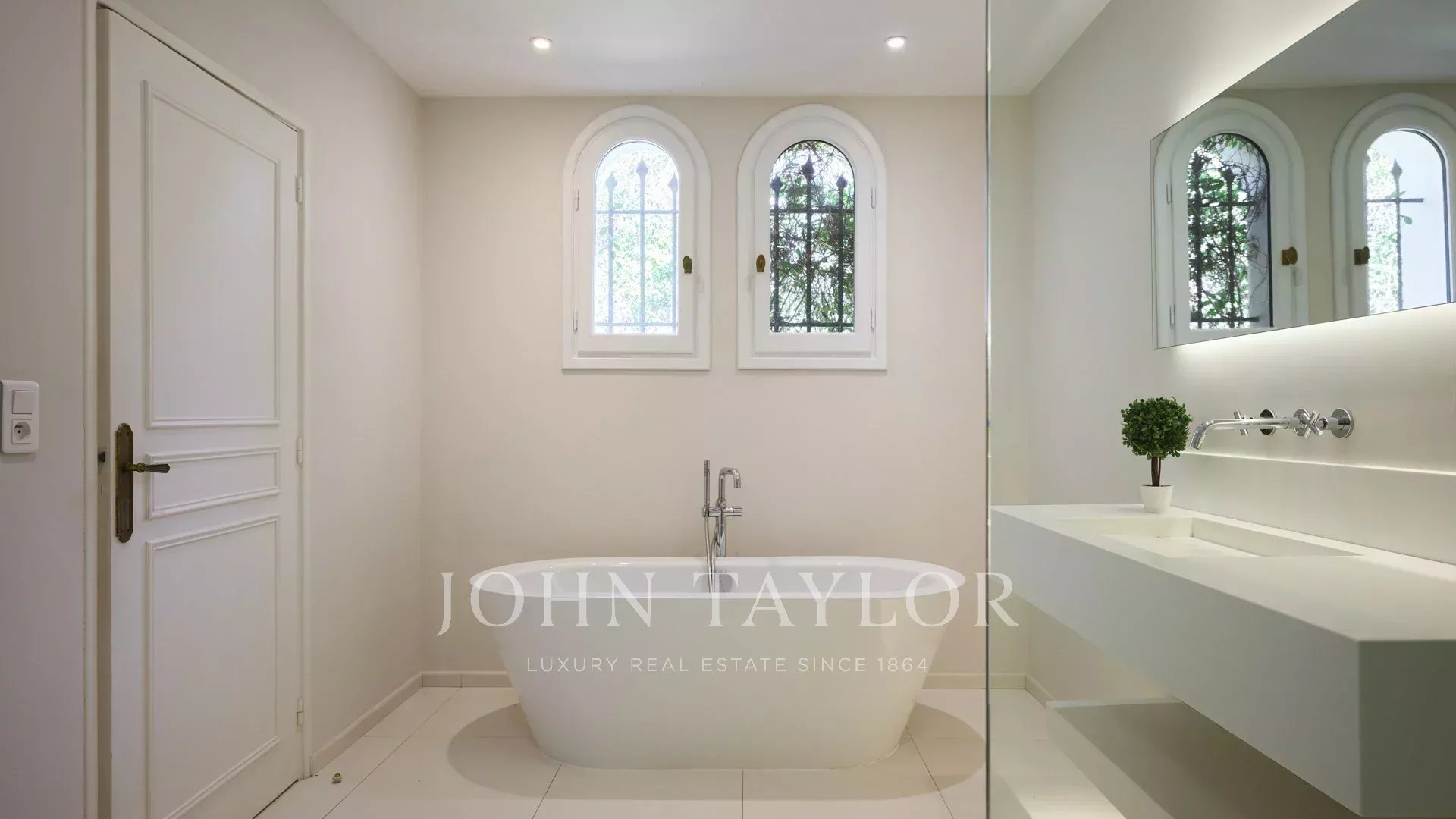 Air-conditioned bedroom (2 single beds) French windows opening onto the garden, bathroom, WC