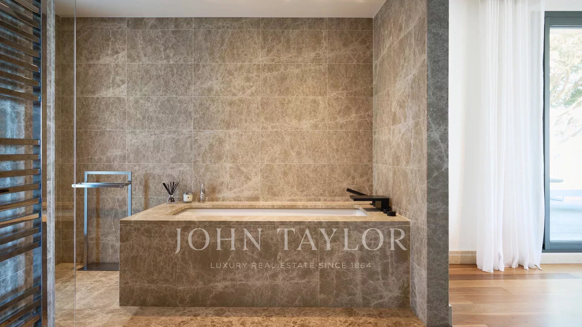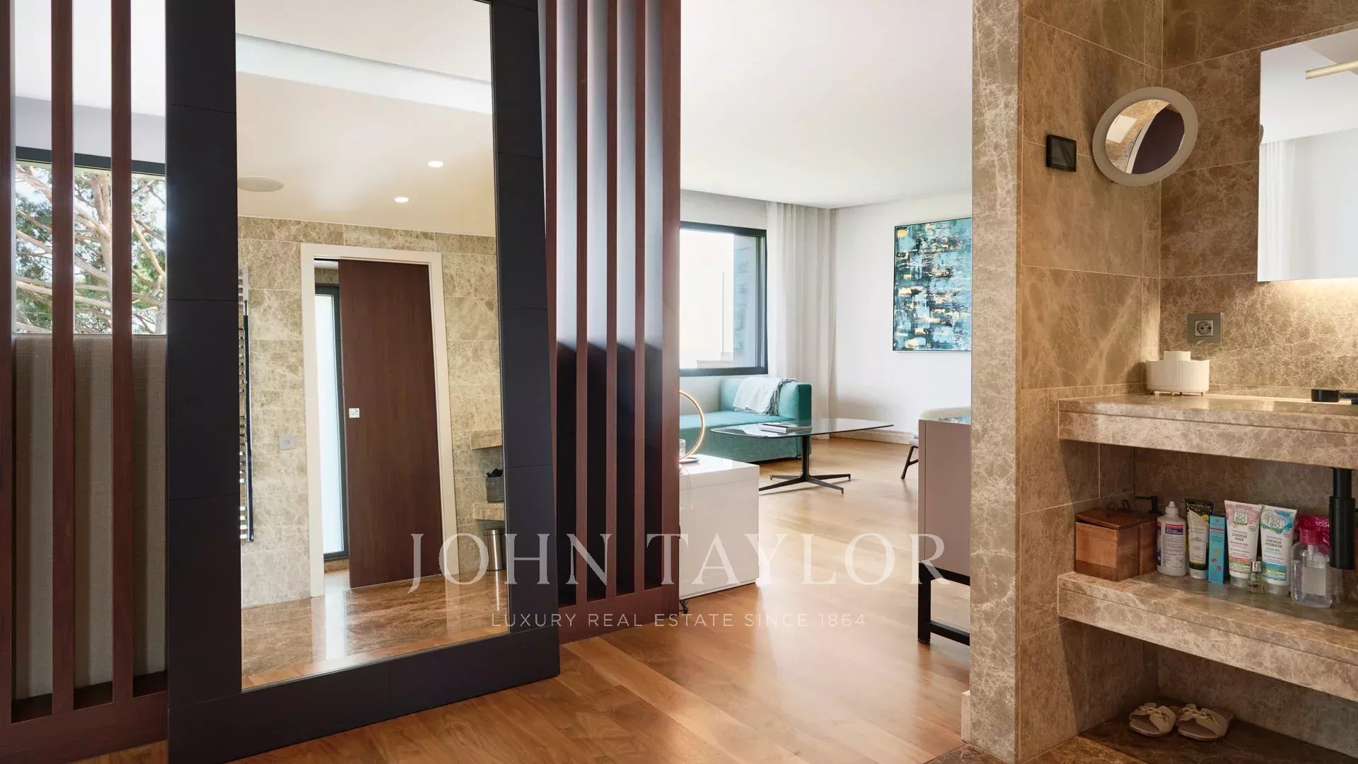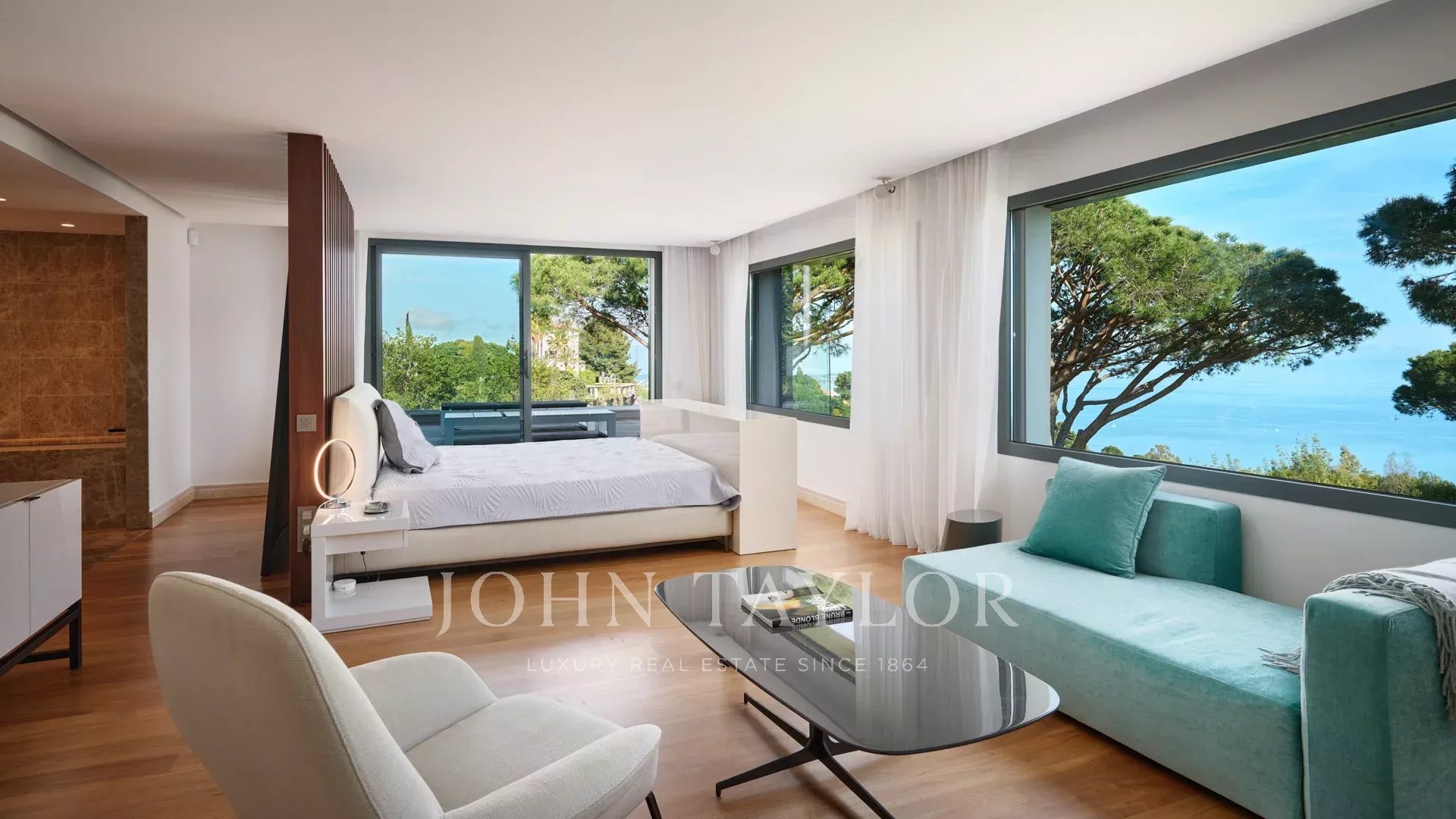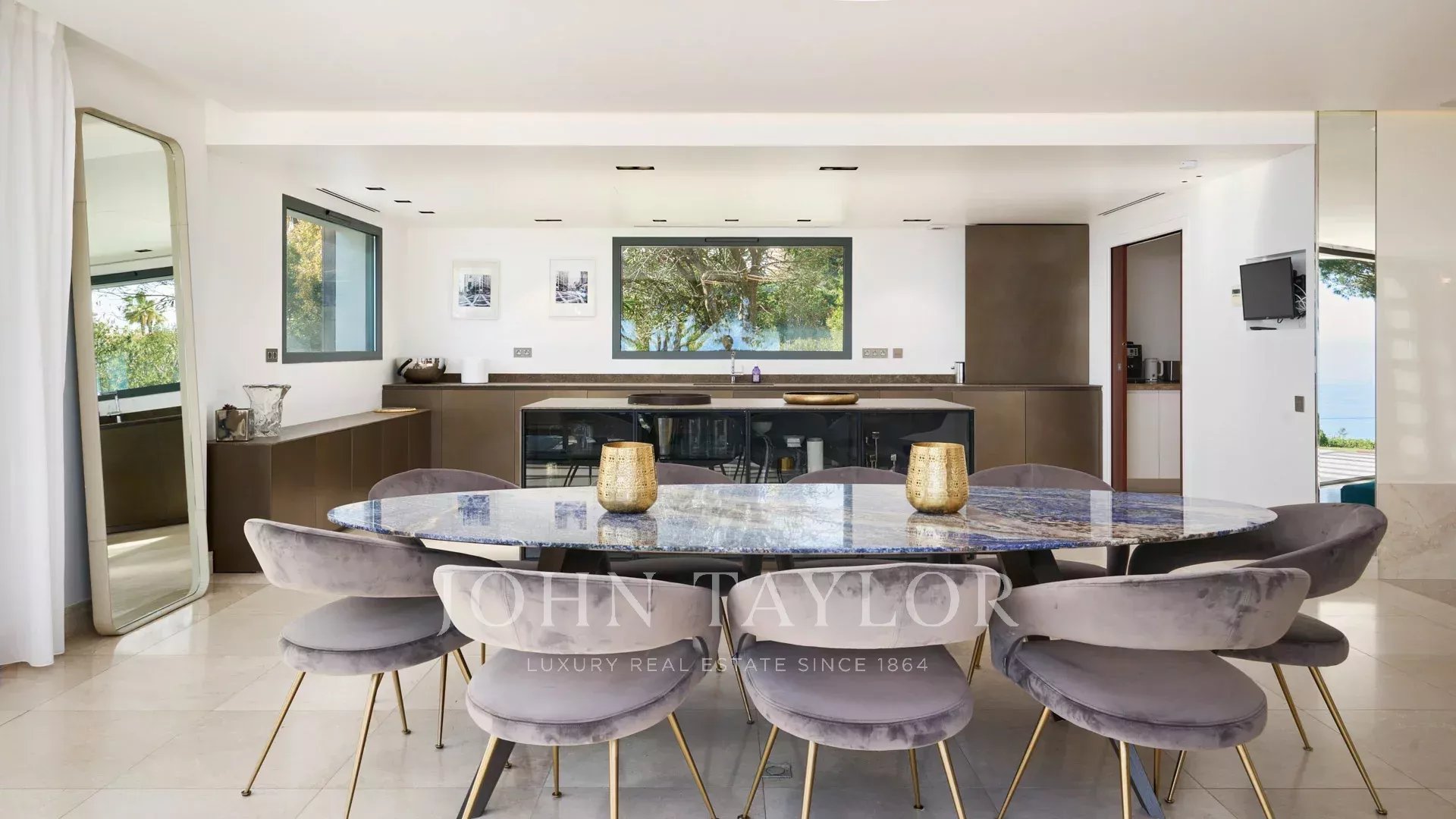 On the heights of Cannes, offering a unique view of the Lérins Islands, this magnificent contemporary villa combines wood and concrete in the heart of a park of about 6 200 sq.m. Completely renovated, the villa impresses with its generous volumes, the top of the range appointments throughout and three large terraces.