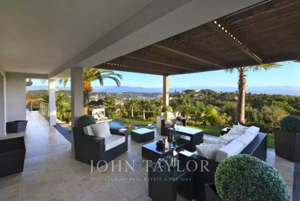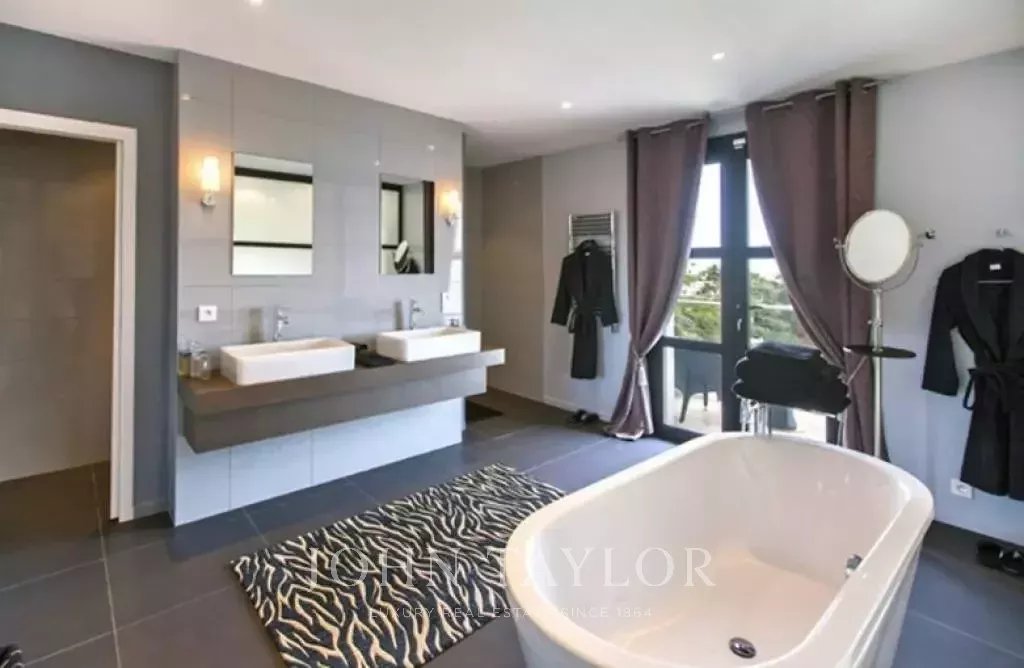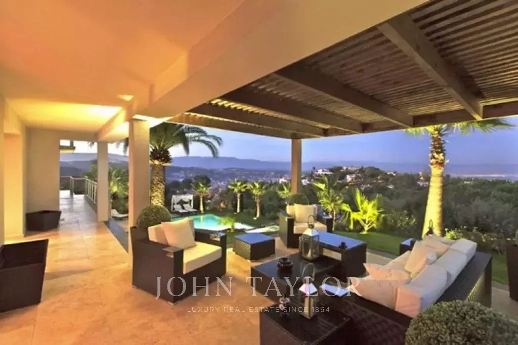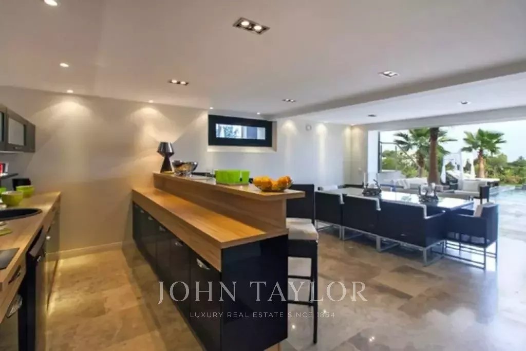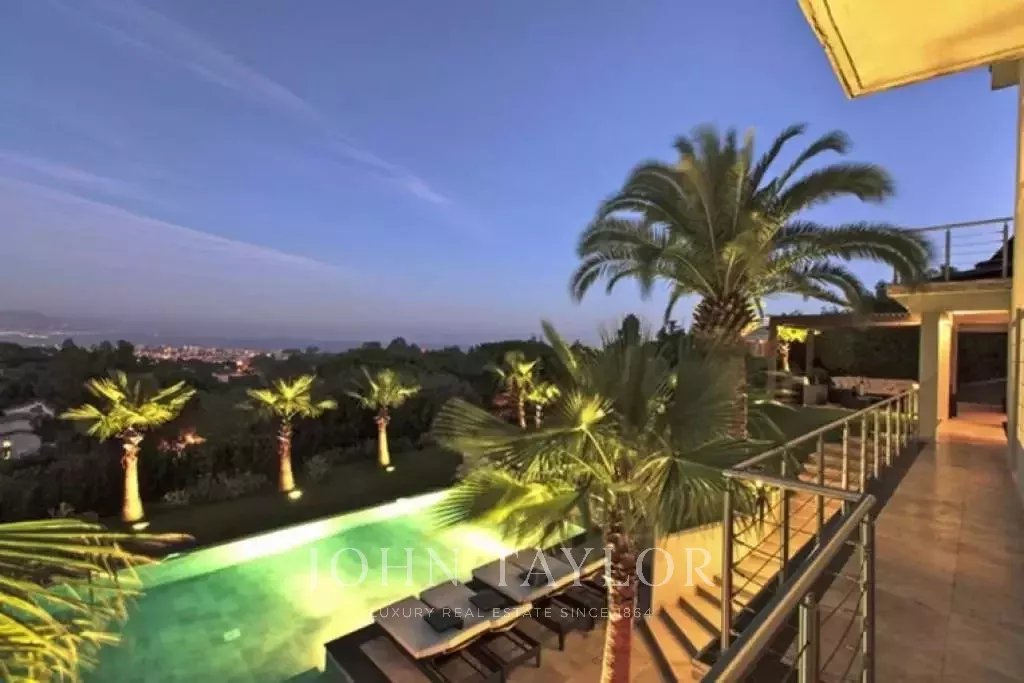 Magnificent modern style villa on the heights of Cannes, ten minutes drive from the city center. Completely renovated, the villa offers a refined contemporary style decoration as well as a superb panoramic sea view surrounded with 2 200 sq.m landscaped garden.