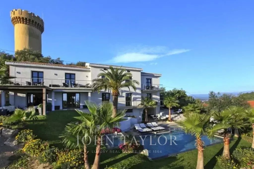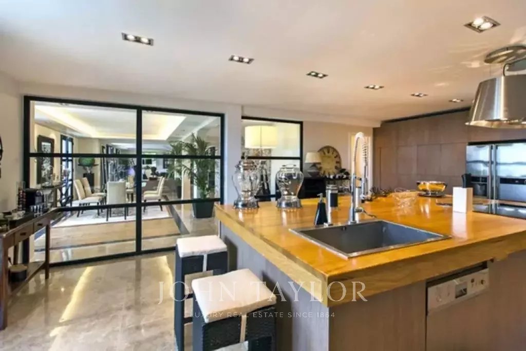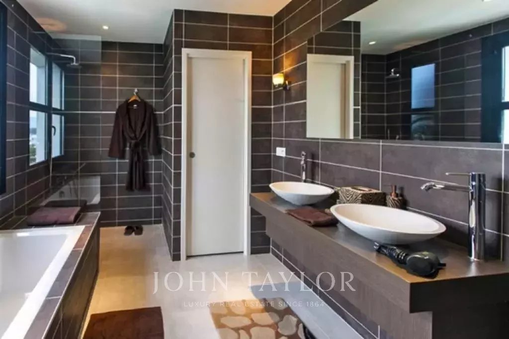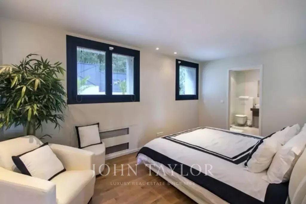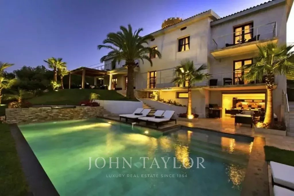 Magnificent modern style villa on the heights of Cannes, ten minutes drive from the city center. Completely renovated, the villa offers a refined contemporary style decoration as well as a superb panoramic sea view surrounded with 2 200 sq.m landscaped garden.